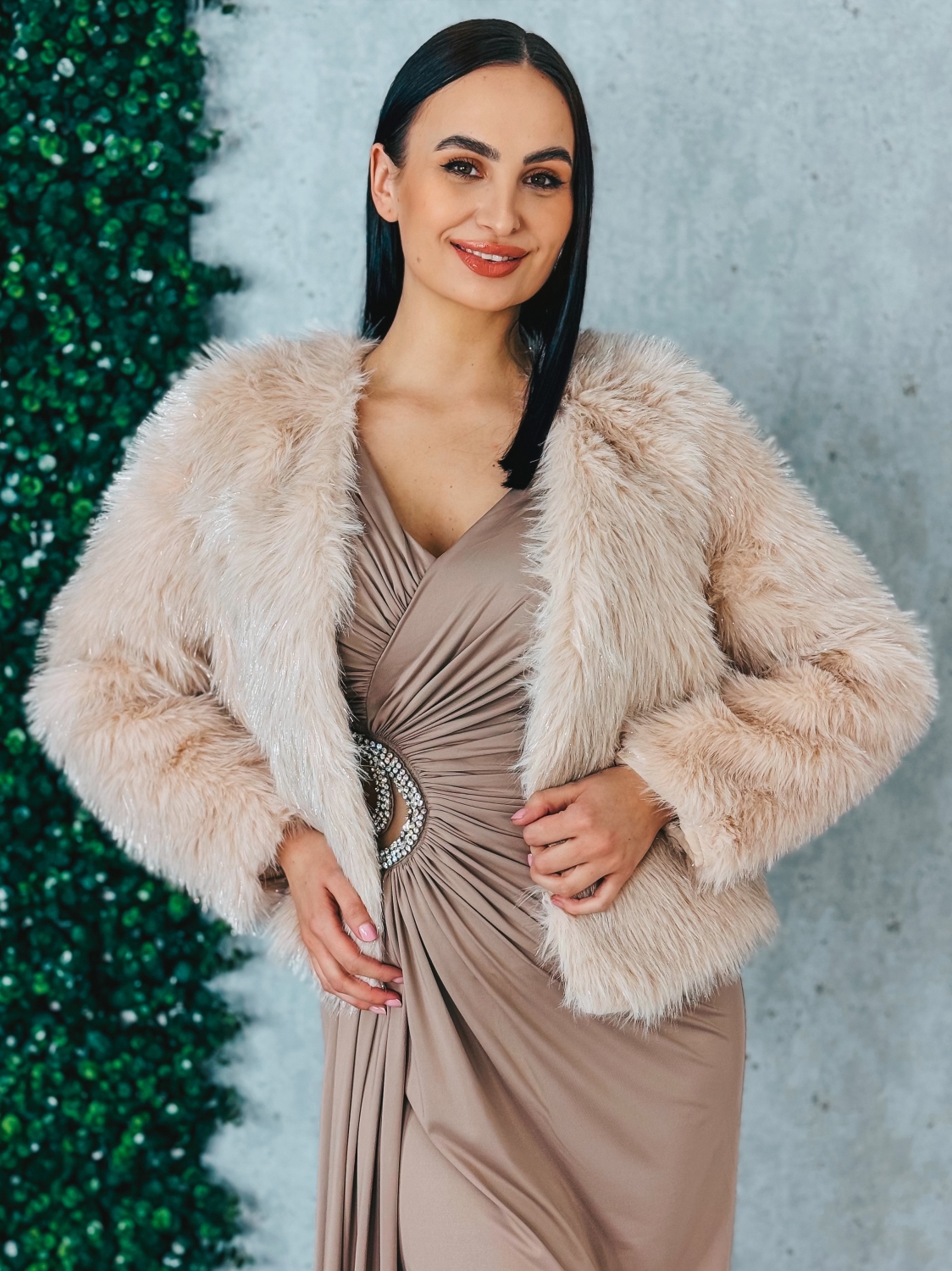 Dámsky kožuch je jedinečný kus oblečenia, ktorý spája eleganciu, praktickosť a vysokú kvalitu. Tento konkrétny model s predným zapínaním na gombíky je ideálnou voľbou pre dámy, ktoré ocenia klasický štýl a pohodlie počas chladných dní. Kožuch je vyrobený z prémiových materiálov, ktoré zaručujú jeho odolnosť a dlhú životnosť, pričom vnútorná podšívka zabezpečuje tepelný komfort aj v najchladnejších podmienkach. Dizajn kožucha je sofistikovaný, s jemnými detailmi, ktoré podčiarkujú jeho exkluzivitu. Predné zapínanie na gombíky nielenže dodáva klasický vzhľad, ale umožňuje aj jednoduché a pohodlné obliekanie. Gombíky sú precízne umiestnené tak, aby zabezpečili dokonalé priliehanie kožucha k postave a poskytli maximálnu ochranu pred vetrom a chladom. Strih kožucha je prispôsobený ženským krivkám, vďaka čomu zvýrazňuje postavu, pričom zostáva dostatočne voľný na vrstvenie oblečenia pod ním. Dĺžka kožucha poskytuje optimálnu ochranu a hodí sa nielen na bežné nosenie, ale aj na formálnejšie príležitosti. Tento dámsky kožuch je univerzálnym kúskom, ktorý možno ľahko kombinovať s rôznymi outfitmi. Či už ho zvolíte k elegantným šatám na večernú udalosť alebo k džínsom a vysokým čižmám na bežný deň, vždy budete pôsobiť štýlovo a vkusne. Kožuch je dostupný v niekoľkých farebných prevedeniach, aby ste si mohli vybrať ten, ktorý najlepšie doplní váš šatník. Je to investícia, ktorá vám poskytne nielen teplo a pohodlie, ale aj nezameniteľný šmrnc v každej situácii.Modelka je vysoká 175 cm a oblečenú má veľkosť UNI.