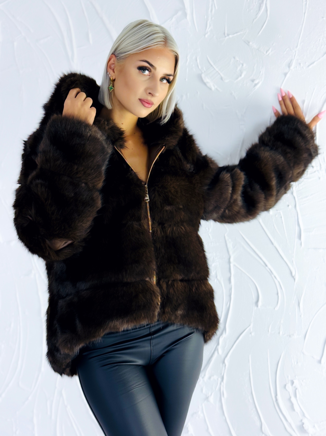 Doprajte si štipku elegancie a pohodlia v podobe tohto dámskeho kožucha na zips s kapucňou, ktorý v sebe spája luxusný vzhľad, štýl a maximálny komfort. Vyrobený z mimoriadne jemného, na dotyk príjemného materiálu s huňatou textúrou, pôsobí exkluzívne a zároveň zabezpečí dokonalé teplo aj počas tých najchladnejších dní. Elegantný strih so zapínaním na praktický zips zdôrazňuje moderný charakter kožucha, zatiaľ čo nadýchaná kapucňa dodáva modelu štýlový, no zároveň funkčný prvok – chráni pred chladom a vetrom a pôsobí neodolateľne žensky. Prepracovanie detailov podčiarkujú prémiový vzhľad, vďaka ktorému budete vyzerať výnimočne v každej situácii. Tento kožuch je dokonalým spoločníkom do zimnej sezóny – či už si ho oblečiete k elegantným šatám na večer, alebo k úzkym džínsom a čižmám do mesta. Jeho univerzálny dizajn a nadčasová elegancia z neho robia investíciu, ktorú oceníte dlhé roky.