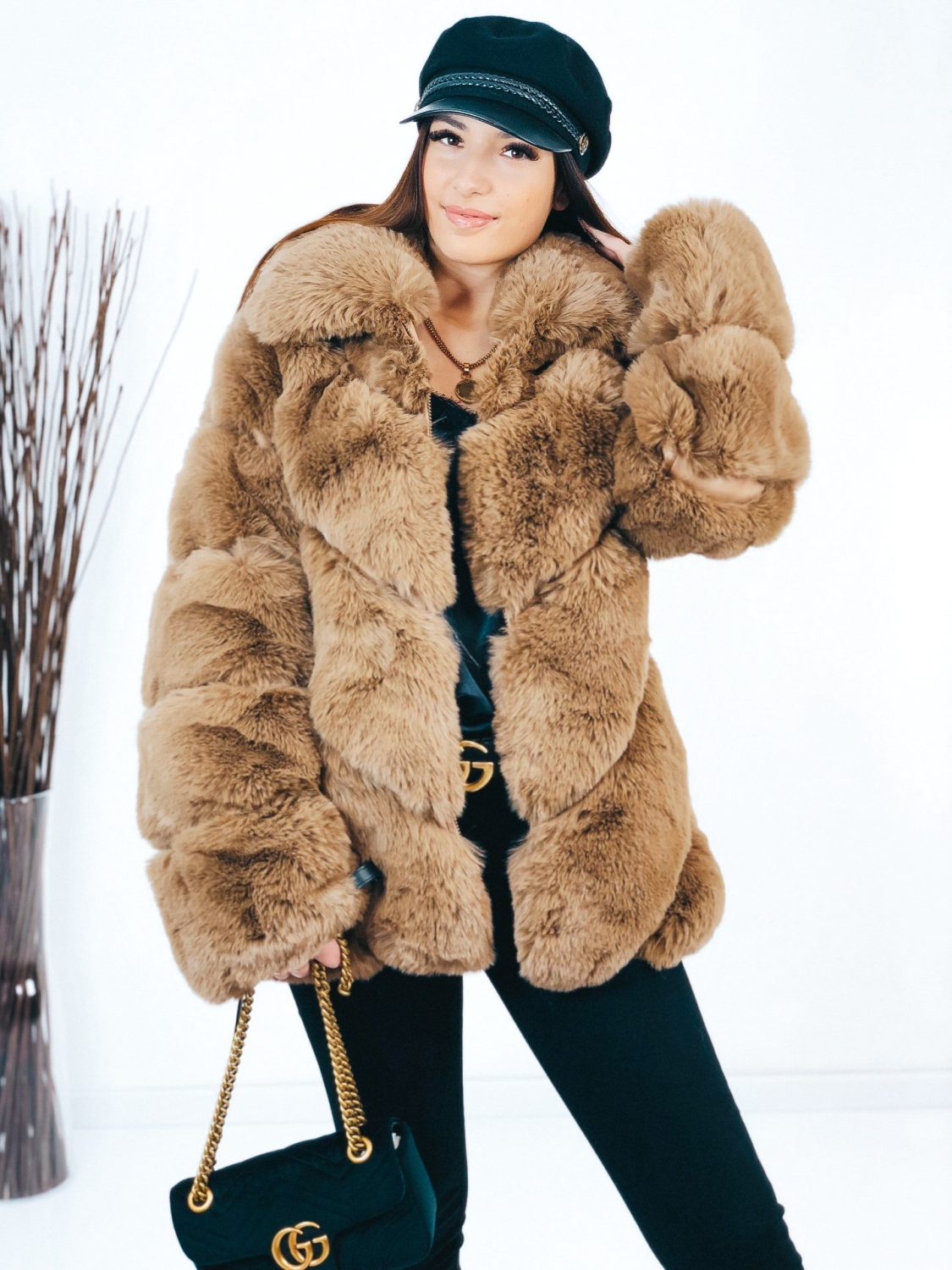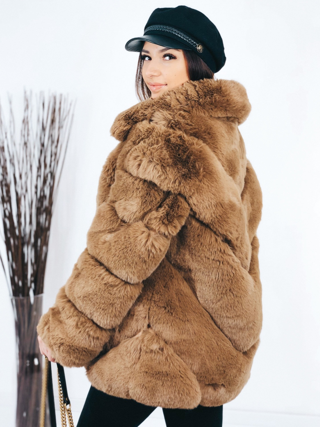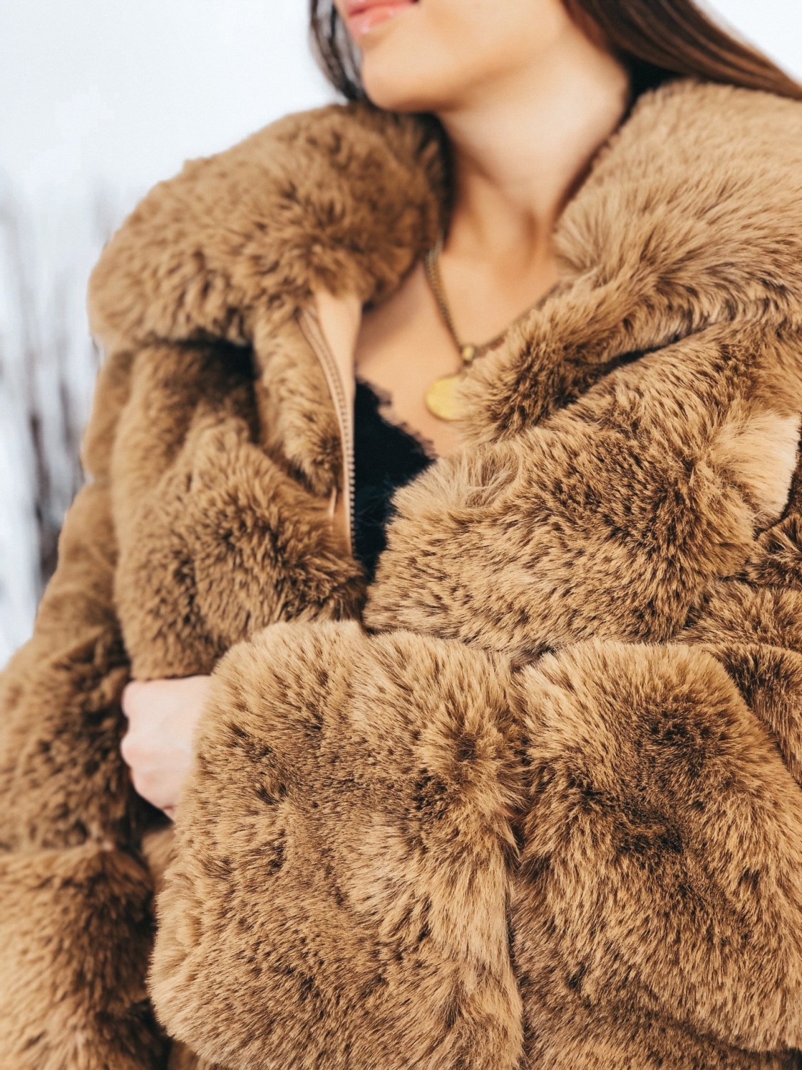 Dámsky luxusný kožuch, ktorý je v hnedej farbe. Kožuch je kúsok, ktorý sa skvele kombinuje a vďaka tomu že je veľmi výrazný, stačí k nemu doladiť jednoduchý outfit. Svojím strihom pôsobí mohutne a extravagantne. Sľubujeme Vám, že pri ňom neostane žiadne oko bez povšimnutia. Jednoducho neprehliadnuteľný kúsok, ktorý by mala vlastniť každá módna maniačka. Kožuch má dlhý rukáv a je vyrobený z kvalitného a pohodlného materiálu. Dĺžka kožuchu siaha pod zadok. Zapínanie na zips vo svojej prednej časti. Vrecká na oboch stranách. Doplňte Váš šatník týmto štýlovým kúskom, ktorý jednoducho skombinujete a budete zaručene štýlová aj počas bežného dňa. Trendový a neprehliadnuteľný kúsok, ktorý Vám zaručene učaruje. Modelka je vysoká 165 cm a oblečenú má veľkosť S/M.