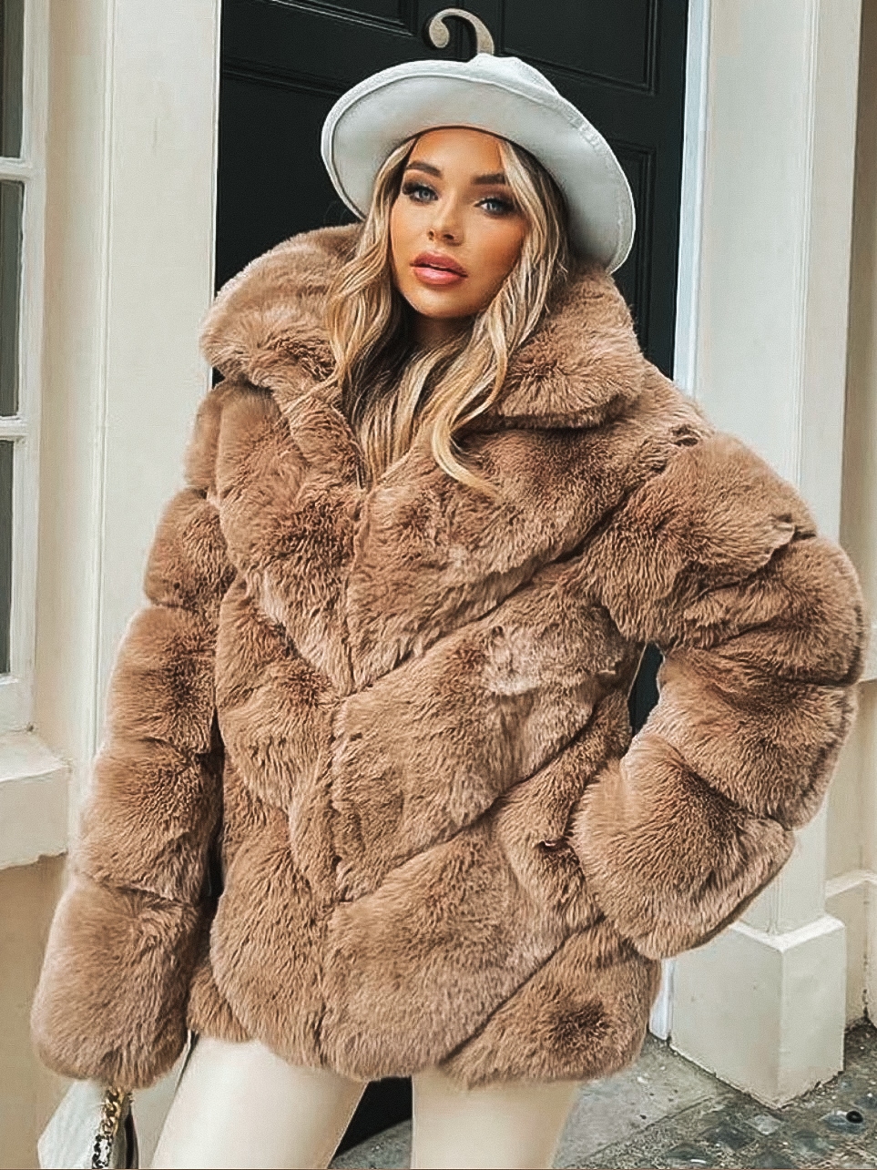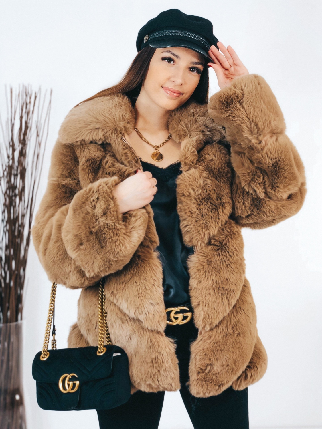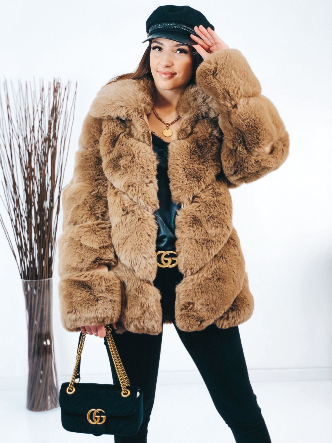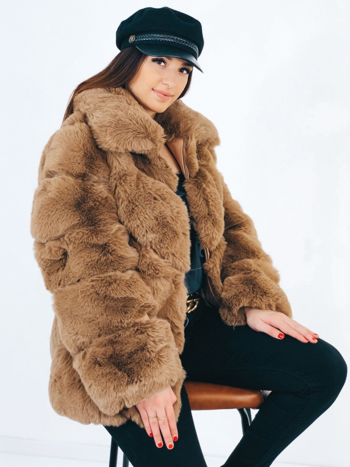 Dámsky luxusný kožuch, ktorý je v hnedej farbe. Kožuch je kúsok, ktorý sa skvele kombinuje a vďaka tomu že je veľmi výrazný, stačí k nemu doladiť jednoduchý outfit. Svojím strihom pôsobí mohutne a extravagantne. Sľubujeme Vám, že pri ňom neostane žiadne oko bez povšimnutia. Jednoducho neprehliadnuteľný kúsok, ktorý by mala vlastniť každá módna maniačka. Kožuch má dlhý rukáv a je vyrobený z kvalitného a pohodlného materiálu. Dĺžka kožuchu siaha pod zadok. Zapínanie na zips vo svojej prednej časti. Vrecká na oboch stranách. Doplňte Váš šatník týmto štýlovým kúskom, ktorý jednoducho skombinujete a budete zaručene štýlová aj počas bežného dňa. Trendový a neprehliadnuteľný kúsok, ktorý Vám zaručene učaruje. Modelka je vysoká 165 cm a oblečenú má veľkosť S/M.