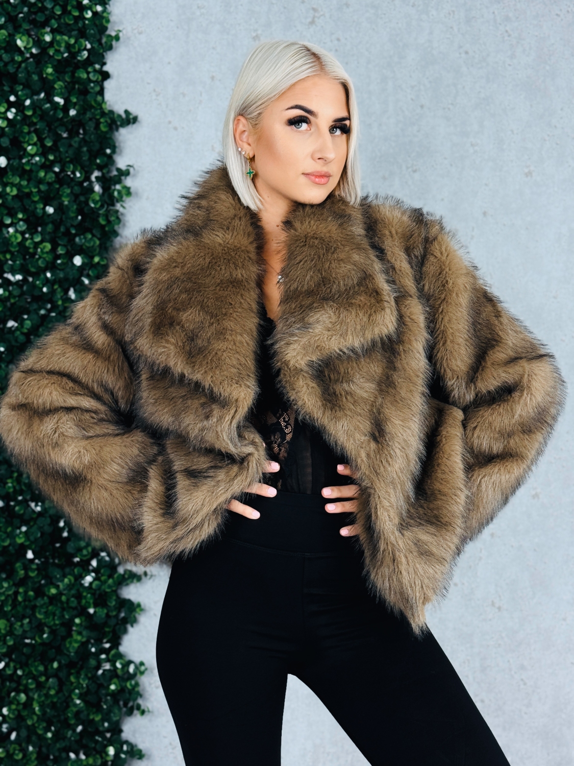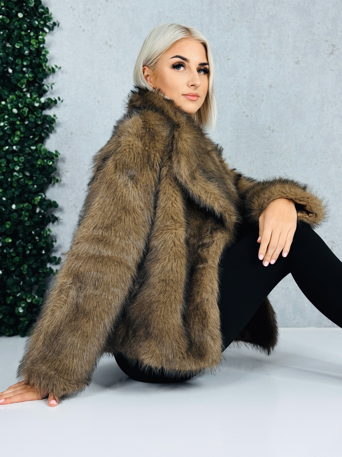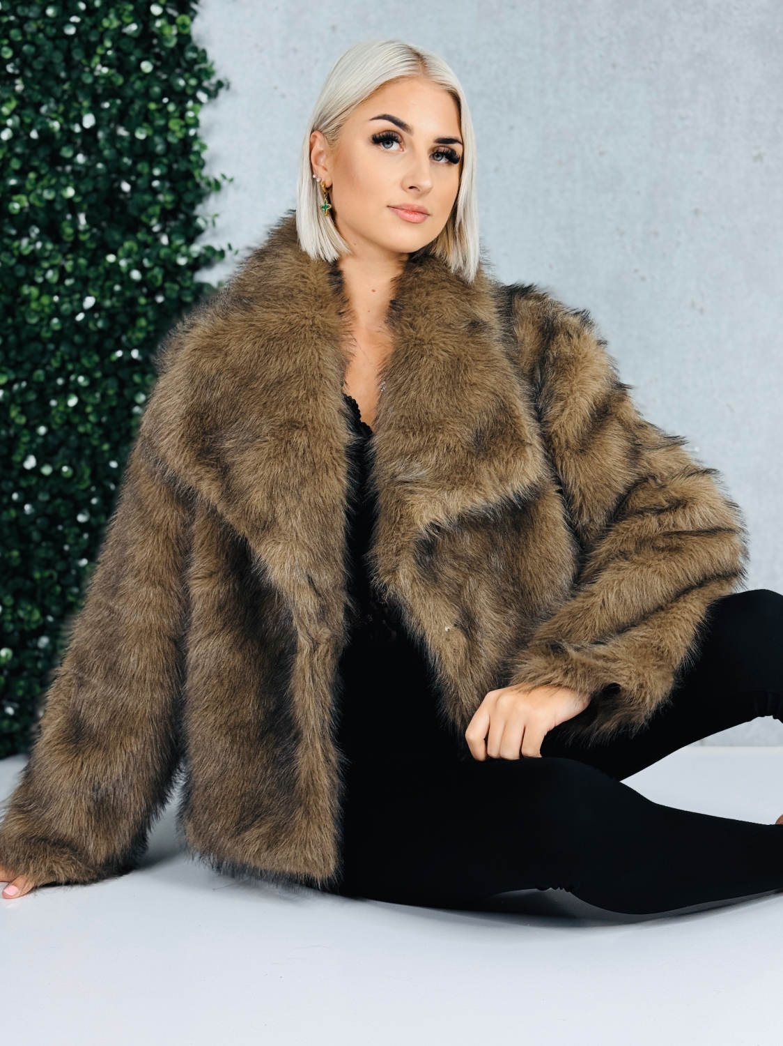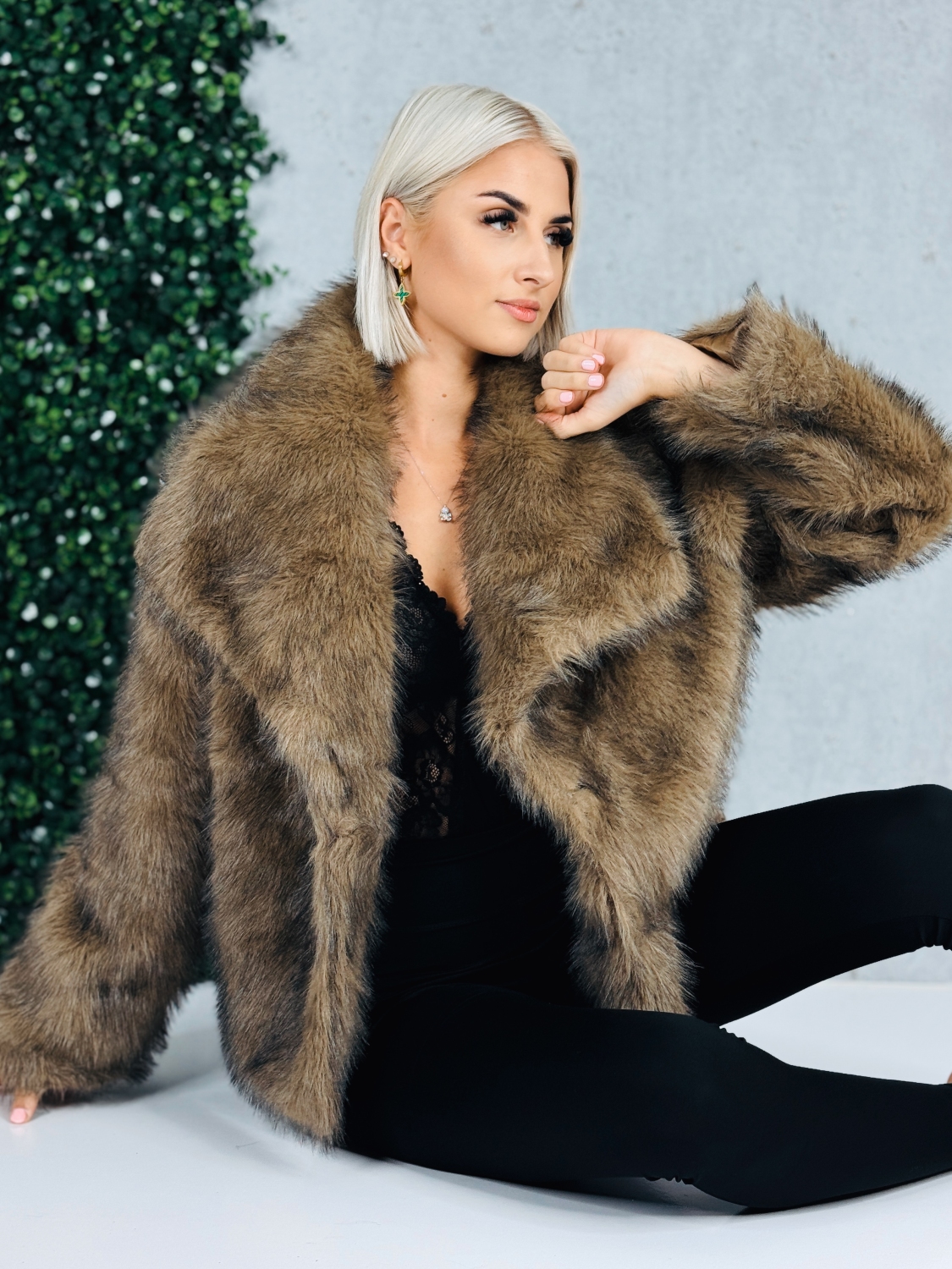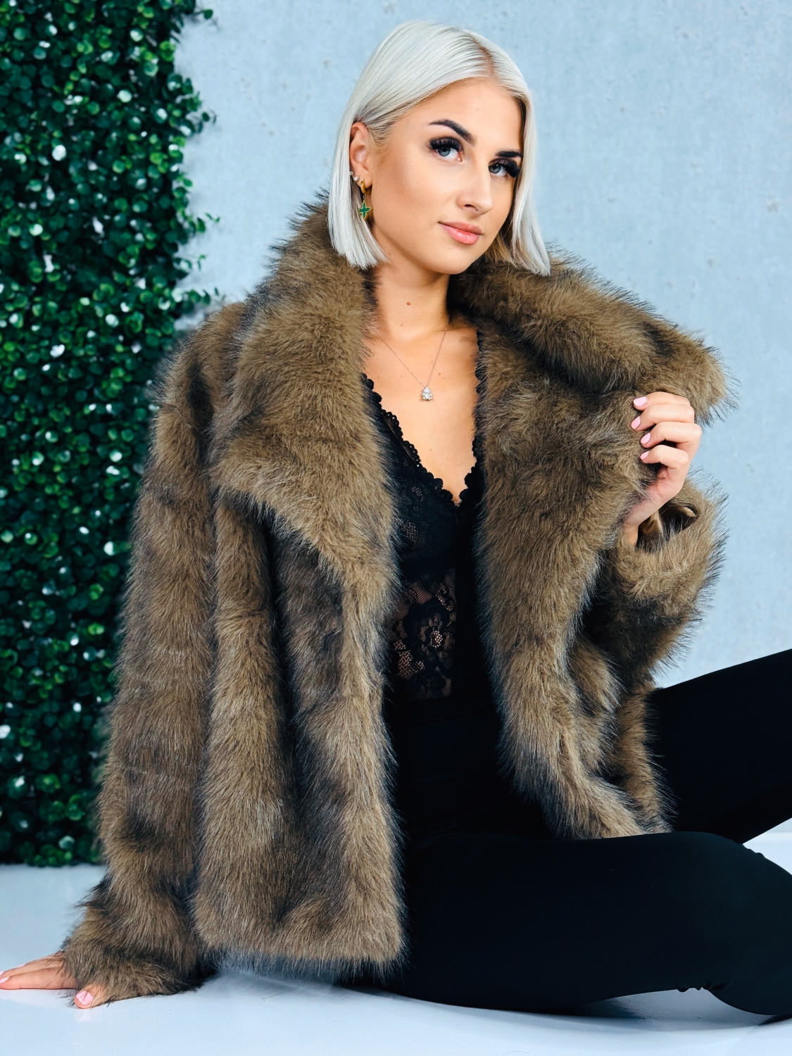 Dámsky mohutný kožuch s golierom – talianska elegancia a maximálne teplo. Tento dámsky kožuch je ideálnou voľbou pre chladnejšie dni, keď chcete spojiť komfort, teplo a štýl. Vyrobený v Taliansku z kvalitného materiálu s hebkým a hrejivým povrchom, ktorý dokonale chráni pred zimou a vetrom. Mohutný strih dodáva kožuchu elegantný a zároveň luxusný vzhľad, ktorý vynikne pri každej príležitosti – od prechádzok mestom po večerné rande. Kožuch je vybavený vysokým golierom, ktorý môžete nosiť zdvihnutý pre maximálnu ochranu krku alebo elegantne sklopiť pre sofistikovaný vzhľad. Zapínanie vpredu je riešené praktickými cvokmi, ktoré sa ľahko používajú a zároveň pridávajú šmrnc celkovému dizajnu. Dizajn kožucha je premyslený do detailu.