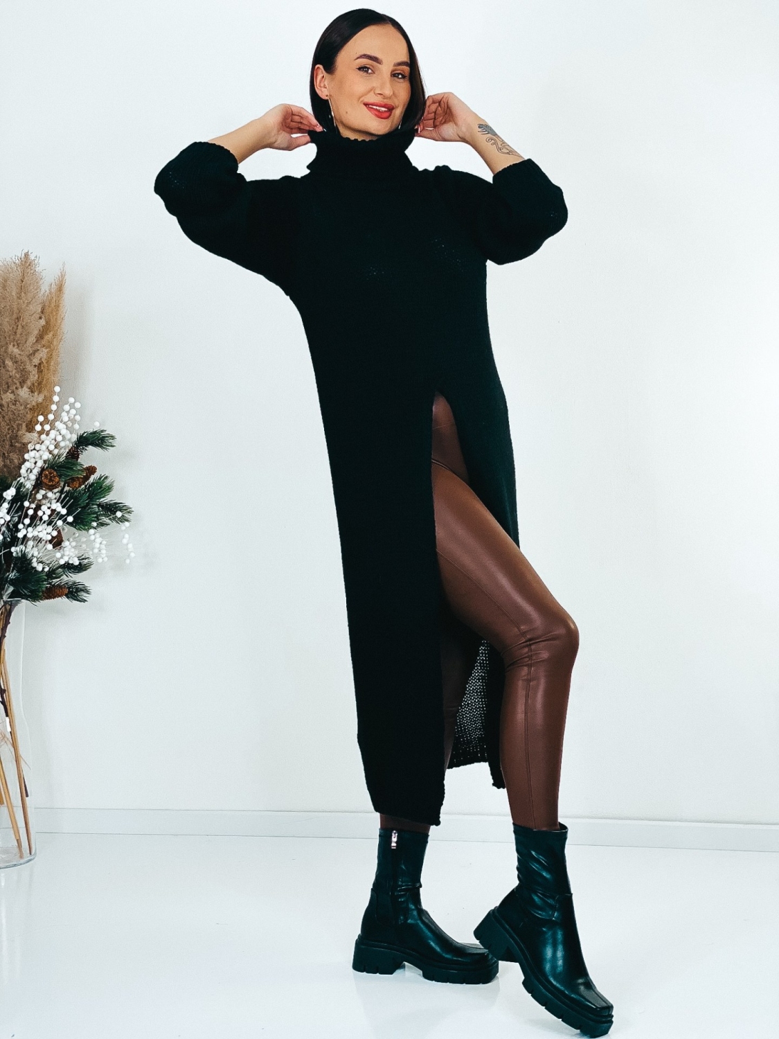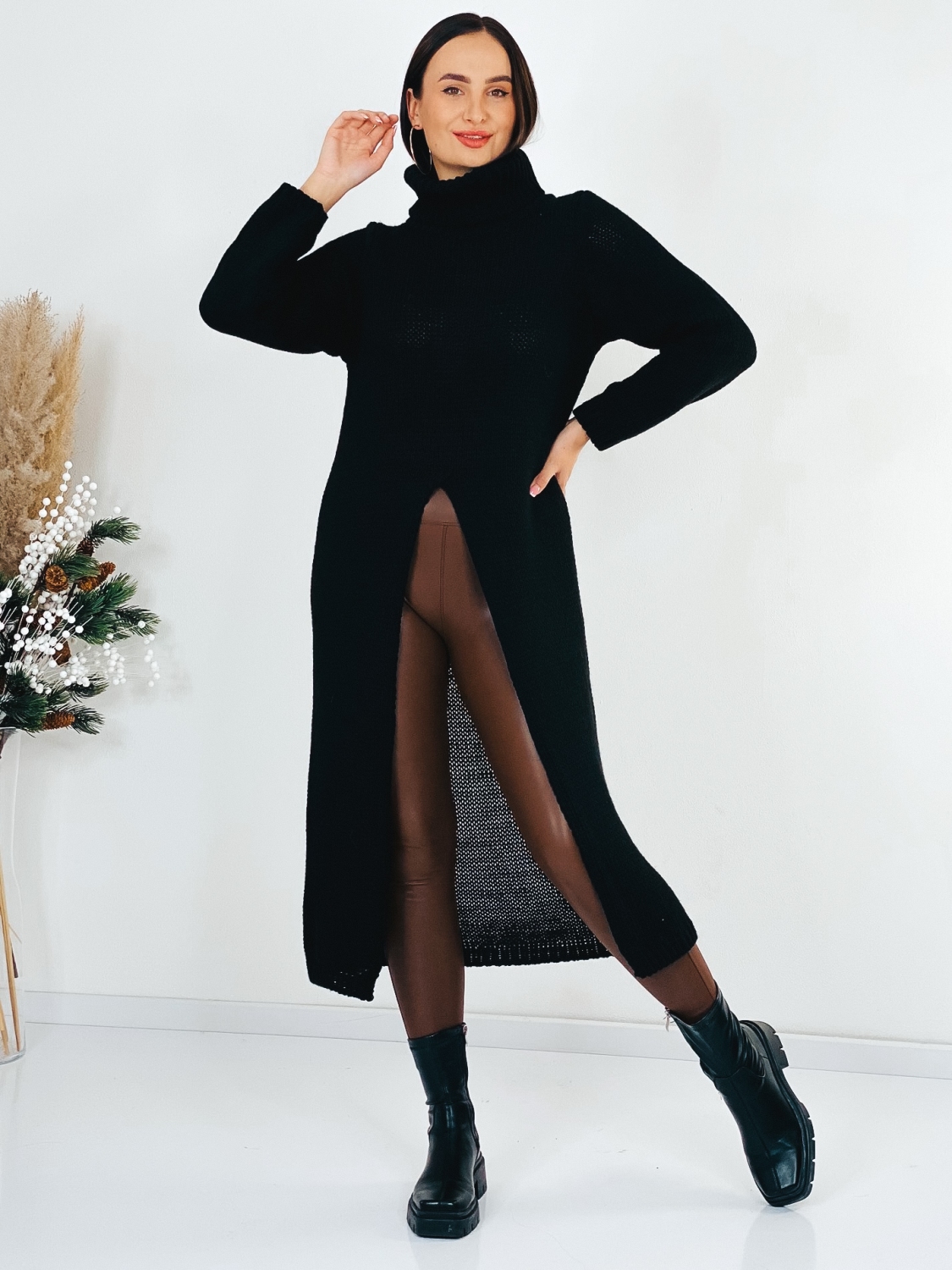 Dámsky exkluzívny pletený predĺžený sveter bez zapínania. Sveter je doplnený rozparkom v prednej časi. Jemný, mäkký a hrejivý zároveň. Sľubujeme Vám, že si tento sveter obľúbite hneď pri prvom oblečení a už ho nebudete chciet dať dole. Sveter má dlhý rukáv a je vhodný na jeseň, ale aj zimu. Štýlový kúsok z novej kolekcie, ktorý Vám v šatníku zaručene nesmie chýbať. Jednoducho ho skombinujete a budete zaručene štýlová aj počas bežného dňa. Zaujímavý svojím strihom. Čas oziviť šatník. Modelka je vysoká 175cm a oblečenú má veľkosť UNI.