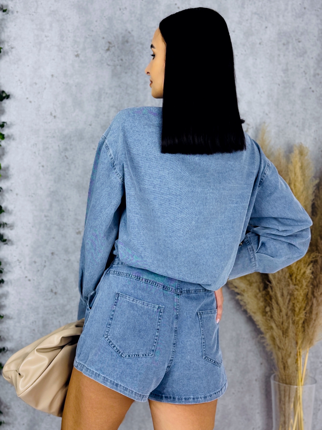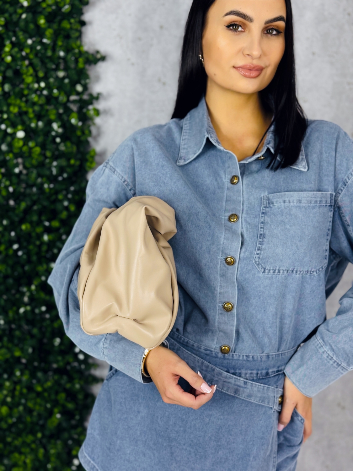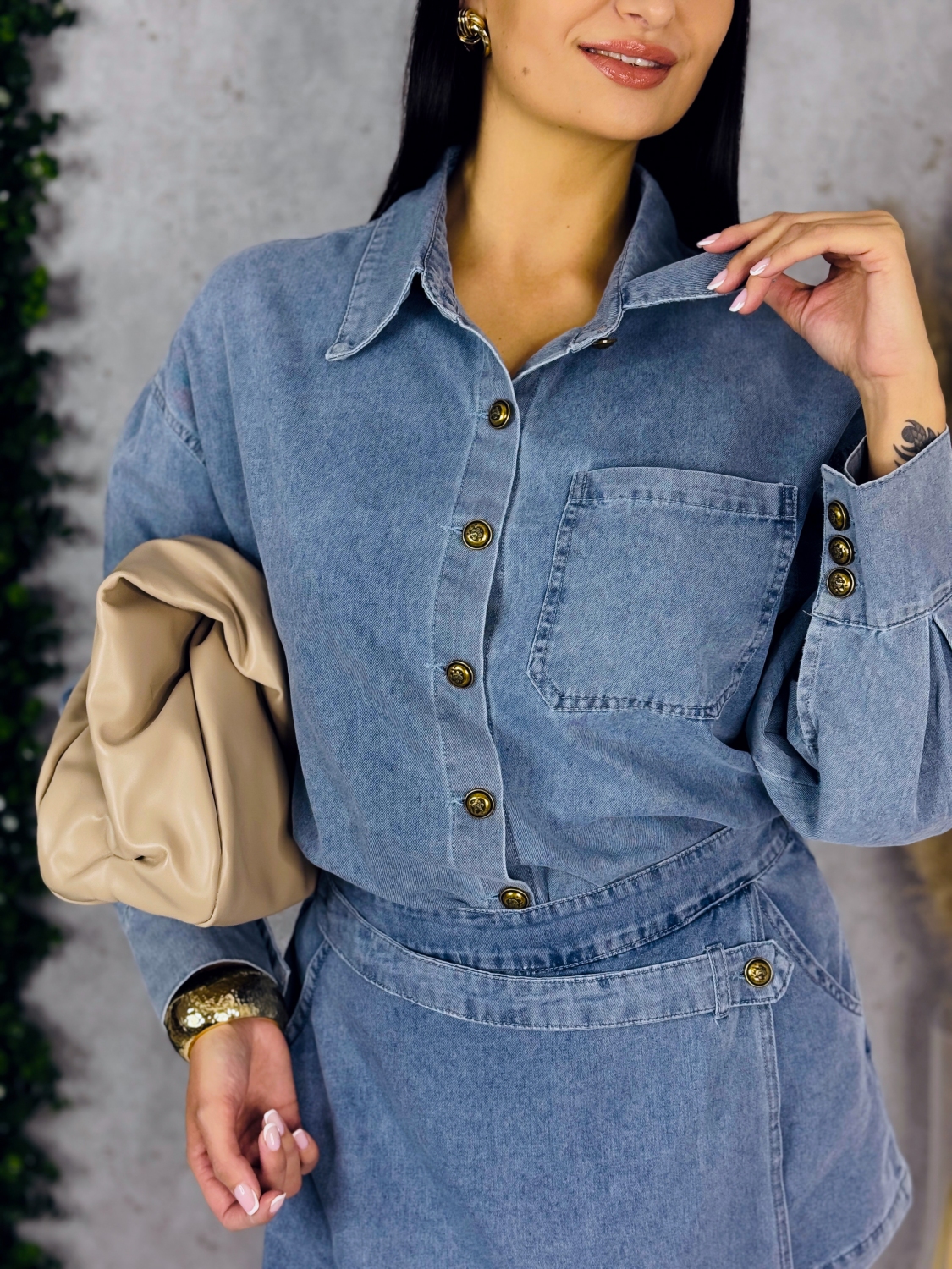 Dámsky komplet pozostáva z košele a sukňových kraťasov, ktoré spolu vytvárajú štýlový a zároveň pohodlný outfit na každodenné nosenie. Košeľa má klasický golier, dlhé rukávy a zapína sa vpredu na gombíky. Je vyrobená z kvalitného, príjemného materiálu s vysokým podielom bavlny (90 % bavlna), vďaka čomu je mäkká, priedušná a vhodná aj do teplejšieho počasia. Sukňové kraťasy pôsobia na prvý pohľad ako sukňa, no poskytujú komfort a voľnosť pohybu ako šortky. Zapínajú sa z boku na zips, čo zabezpečuje elegantný a čistý vzhľad bez rušivých detailov. Strih zvýrazňuje pás a lichotí postave, takže celý komplet pôsobí žensky a upravene. Tento model je ideálny na bežné nosenie, do mesta aj na voľné dni. Pre dokonalý výsledný look si môžete outfit doplniť štýlovou kabelkou, ktorá celý vzhľad podčiarkne a dodá mu šmrnc.