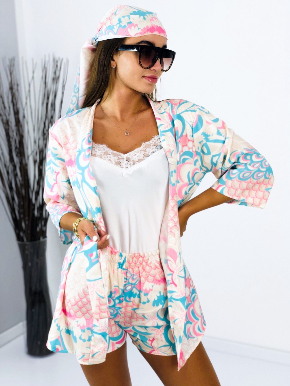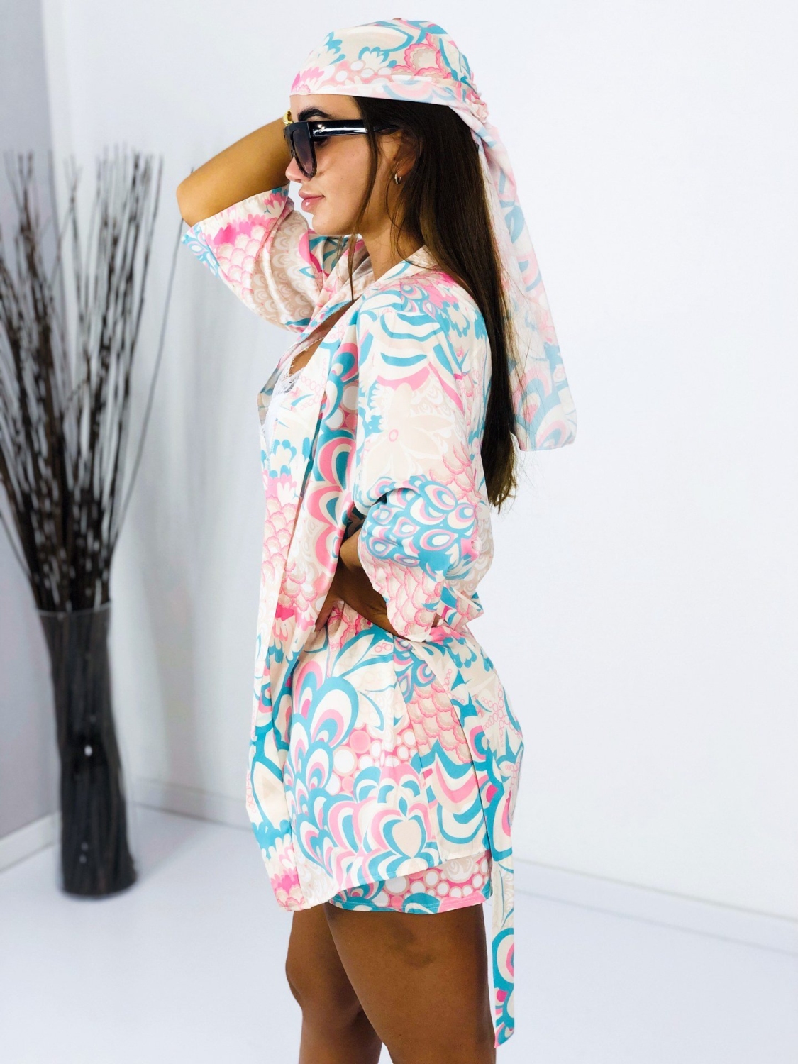 Dámsky saténový komplet v tyrkysovej farbe, ktorý pozostáva z košele, kraťás a šatky rovnakej farby a materiálu. Satén je mierne elastický a veľkostne sa prispôsobí na veľkosti S, M aj L. Garantujeme Vám, že tento kúsok si toto leto určite obľúbite a s radosťou ho budeme kombinovať aj samostatne. Šatku si môžete viazať do vlasov, alebo aj na kabelku, či ruku ako ozdobu. poprípade ako doplnok ku plavkám. Všestranné využitie tohto trendového kompletu ocení každá z Vás. Vyrobené z pohodlného a kvalitného padavého materiálu. Tielko nie je súčasťou kompletu. Modelka má výšku 173 cm a oblečenú má veľkosť UNI.