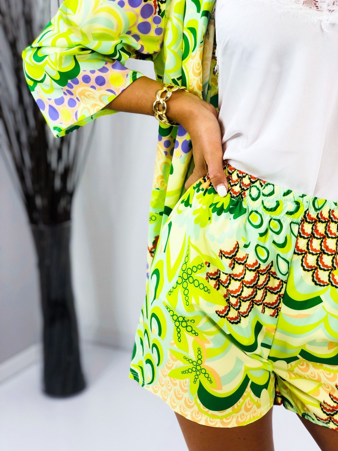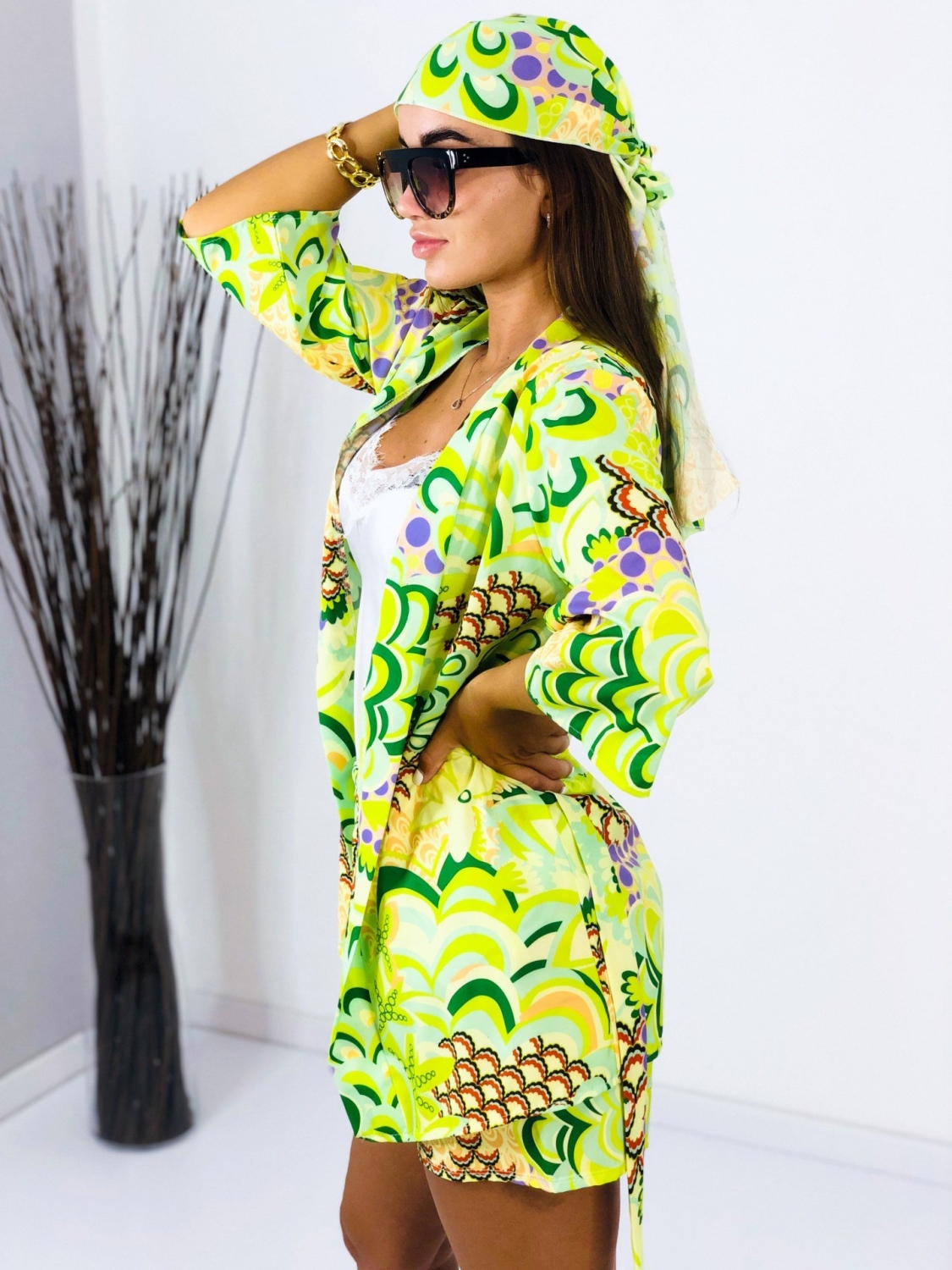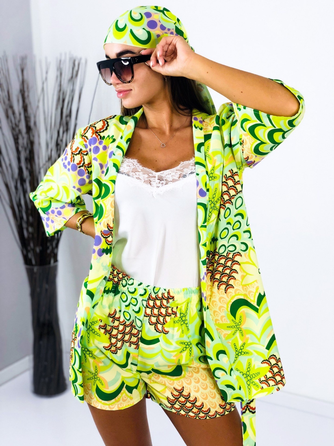 Dámsky saténový komplet v zelenej farbe, ktorý pozostáva z košele, kraťás a šatky rovnakej farby a materiálu. Satén je mierne elastický a veľkostne sa prispôsobí na veľkosti S, M aj L. Garantujeme Vám, že tento kúsok si toto leto určite obľúbite a s radosťou ho budeme kombinovať aj samostatne. Šatku si môžete viazať do vlasov, alebo aj na kabelku, či ruku ako ozdobu. poprípade ako doplnok ku plavkám. Všestranné využitie tohto trendového kompletu ocení každá z Vás. Vyrobené z pohodlného a kvalitného padavého materiálu. Tielko nie je súčasťou kompletu. Modelka má výšku 173 cm a oblečenú má veľkosť UNI.