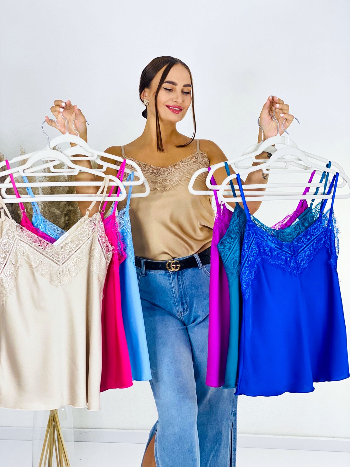 Dámsky vkusný TOP s čipkou a véčkovým výstrihom. Ľahko kombinovateľný s možnosťou nosenia aj na slávnostejšiu príležitosť. Taktiež aj na bežné nosenie, ako je do práce či na rande. Kúsok, ktorý Vás nikdy neomrzí a ihneď ohúri aj Vaše okolie. Perfektný mierne elastický material. Vkusný kúsok pre každú žienku, ktorá má rada zaujímave kúsky. Modelka je vysoká 175 cm a oblečenú má veľkosť UNI.