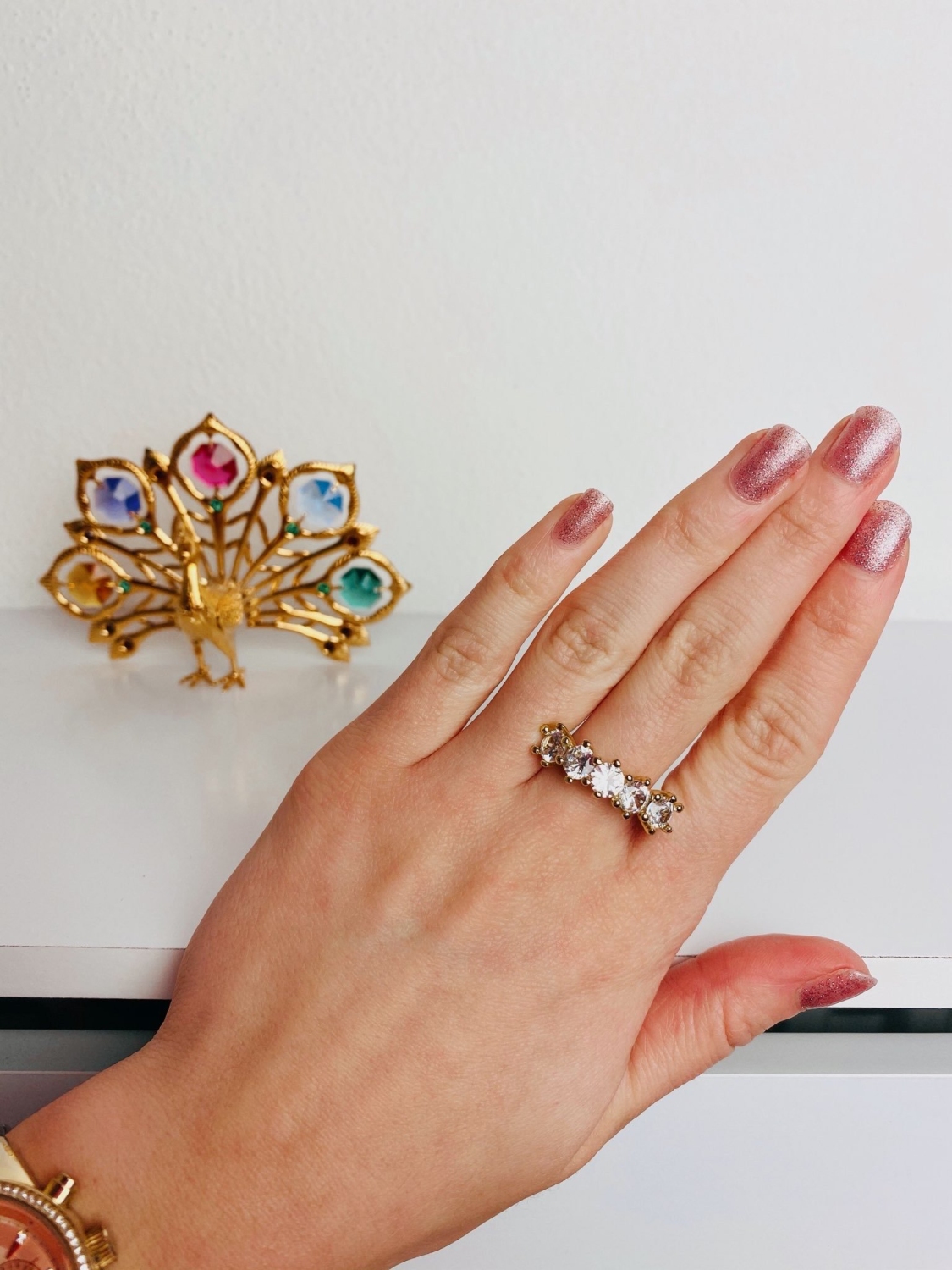 Štýlový zlatý prsteň s malými zirkónmi striebornej farby a jedným veľkým farebným. Bižutéria je neodmysliteľná súčasť každého dámskeho outfitu. Z našej ponuky si určite vyberiete a doladíte si svoj outfit štýlovým doplnkom.