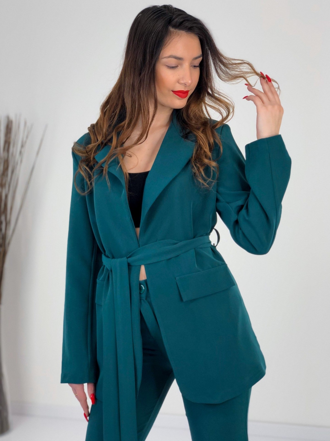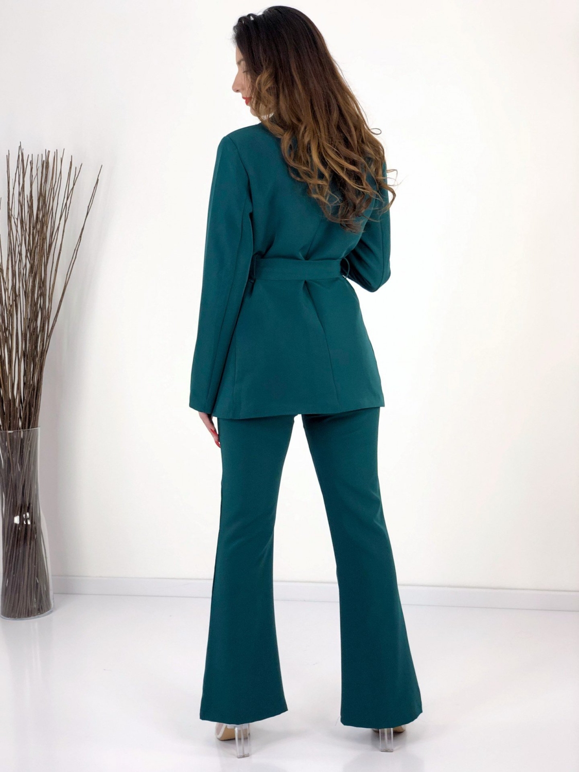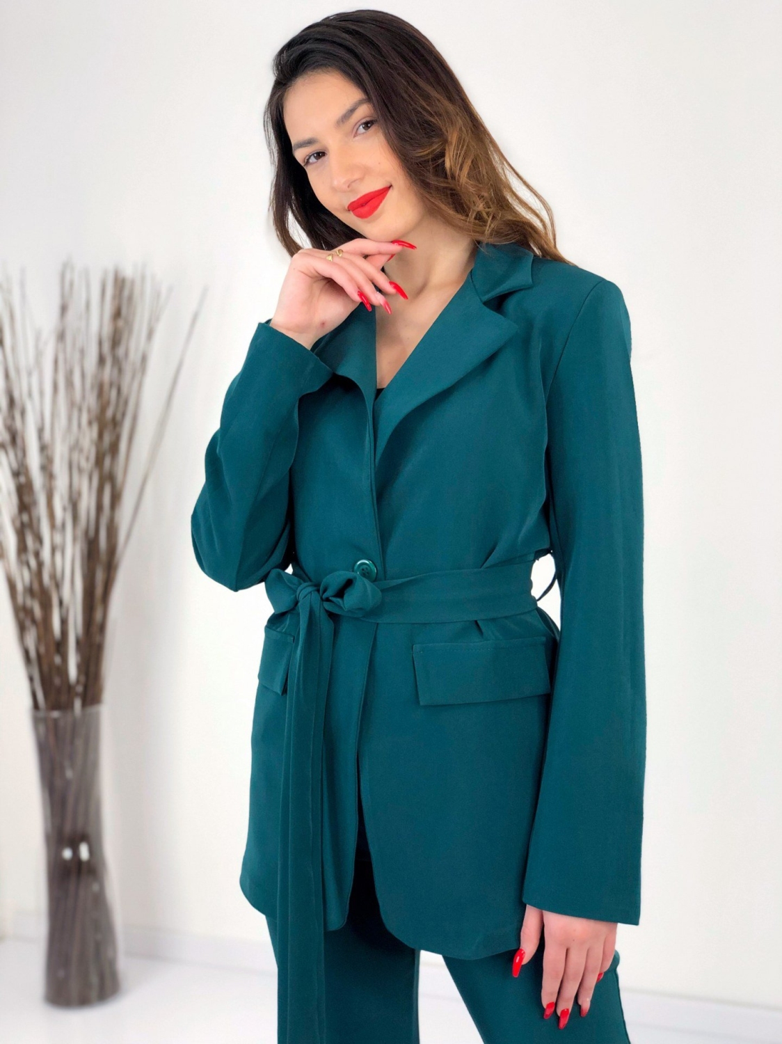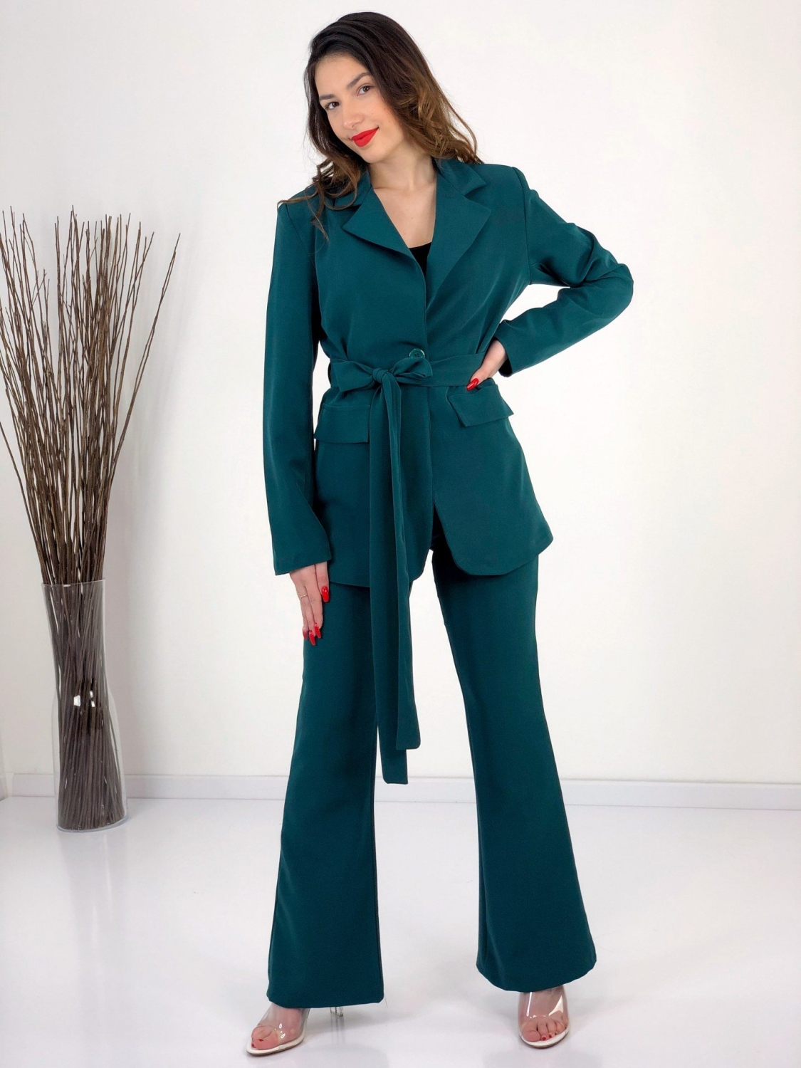 Elegantný vkusný zelený dámsky kostým sako + nohavice s opaskom v páse na viazanie sa hodí na rôzne príležitosti. Kostým si môžete zvoliť nie len do kancelárie, ale aj spoločenské udalosti. Nohavice sa zapínaju na gombík a zips a majú vrecká na oboch stranách. Sako sa zapína vpredu na gombík a má falošné vrecká. Kostým je vyrobený z vysoko kvalitného a pohodlného materiálu. Nohavice v spodnej časti sú rozšírené. Kostým skvelo sadne na väčšinu postáv a úplne Vás rozžiari kamkoľvek prídete. Kvalitné spracovanie. Prekrásna farba, ktorá Vám dodá štýlovosť a šmrnc. Perfektný strih, bestseller z našej ponuky. POZOR! Z každej veľkosti máme iba 1 kus. Nepremeškajte túto ponuku a vyberte si svoj ešte dnes. Modelka je vysoká 172 cm a oblečenú má veľkosť M.