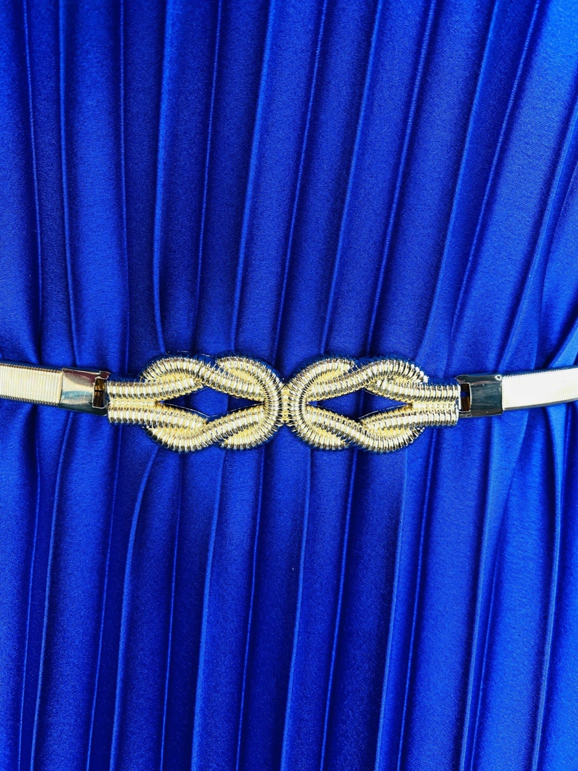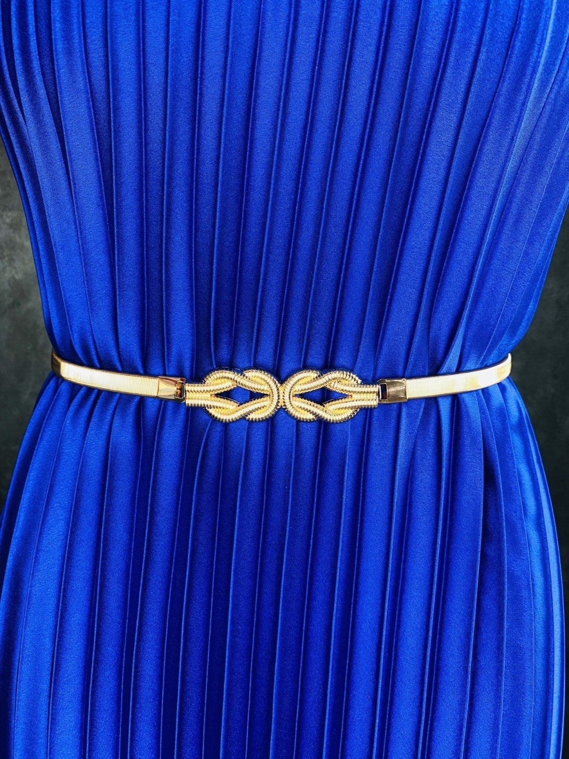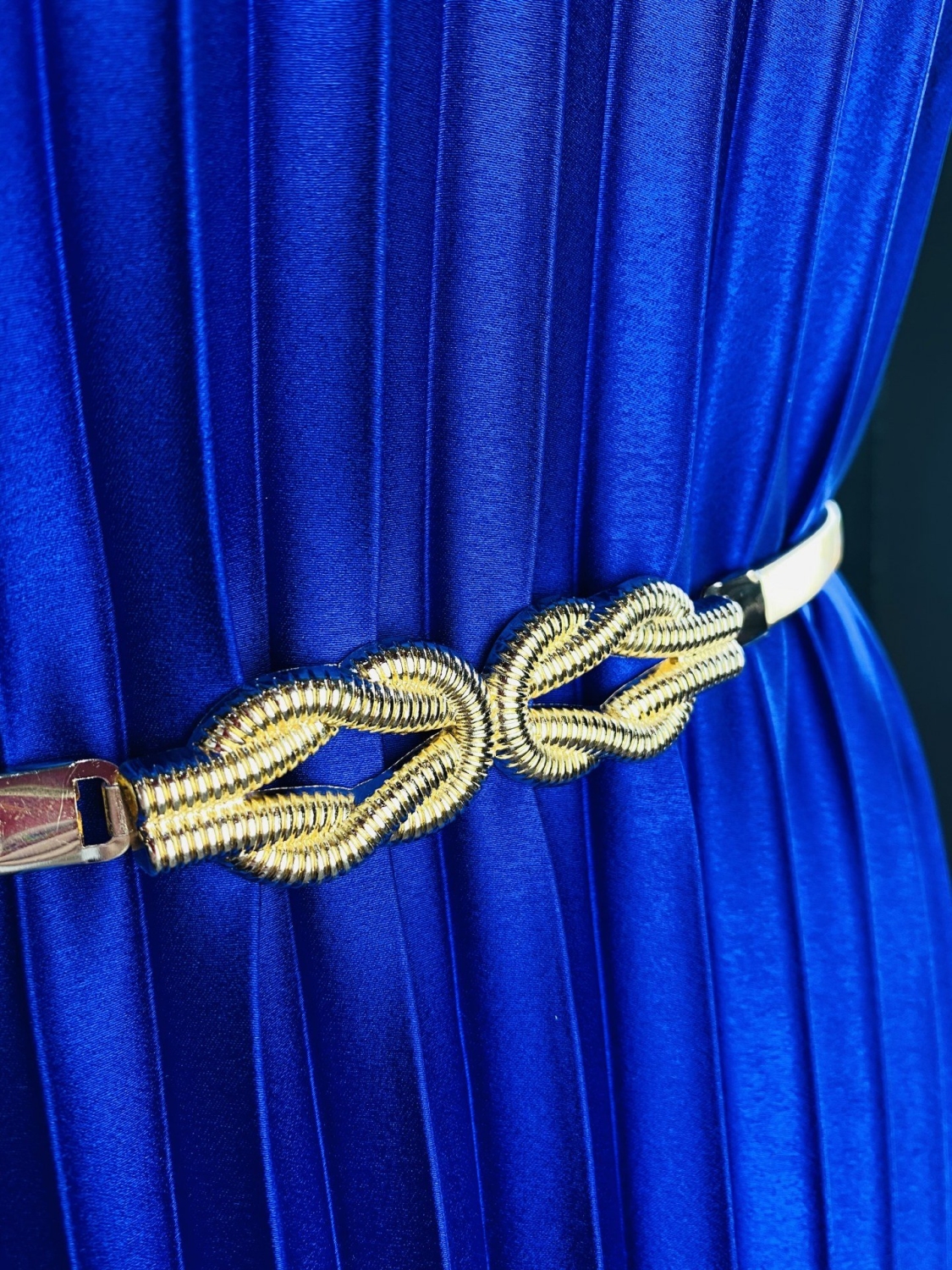 Dámsky zlatý pružný opasok. Elegantný a vkusný dizajn a zároveň veľmi praktický. Opasok je neodnímateľnou súčasťou každého ženského šatníka. Vhodný nie len na blúzku, či šaty, ale aj do elegantných nohavíc. Zahoďte predsudky za hlavu a vytvorte si z opaskov viac ako len nevyhnutný doplnok. Opasok dotvorí tvar celkového outfitu.