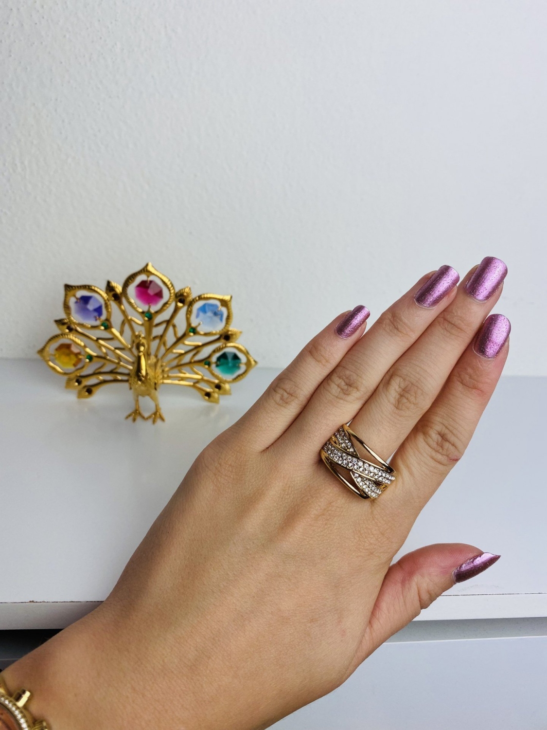 Štýlový zlatý prsteň s malými zirkónmi striebornej farby. Bižutéria je neodmysliteľná súčasť každého dámskeho outfitu. Z našej ponuky si určite vyberiete a doladíte si svoj outfit štýlovým doplnkom.