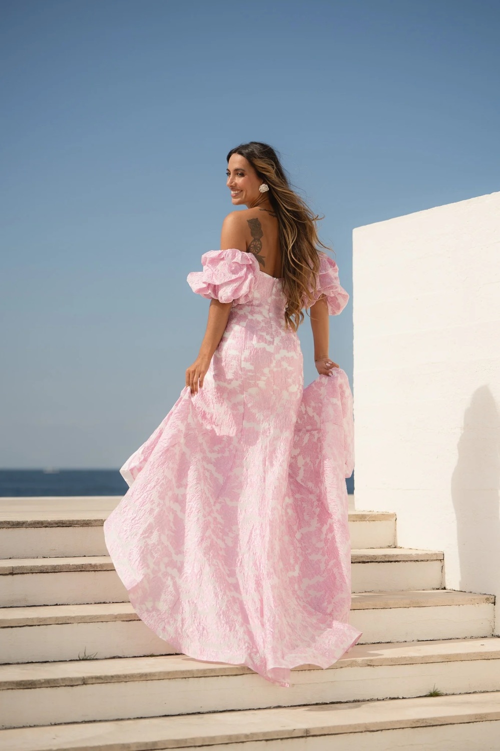 Dámske dlhé luxusné ružové spoločenské šaty s rozparkom sú stelesnením elegancie, ženskosti a sofistikovaného štýlu. Tento exkluzívny model je navrhnutý pre ženy, ktoré chcú zažiariť na výnimočných príležitostiach, ako sú svadby, stužkové slávnosti, plesy alebo galavečery. Šaty sú vyrobené z jemného, kvalitného materiálu, ktorý nádherne padá a vytvára plynulý a ladný pohyb pri každom kroku. Rukávy na šatách sa dajú odopnúť. Zaujímavý strih so sofistikovaným rozparkom dodáva šatám moderný a zvodný nádych, pričom zvýrazňuje ženskú siluetu a dlhé nohy. Predĺžená zadná časť šiat pôsobí majestátne a elegantne, vytvárajúca efekt vlečky, ktorý dodáva každému vášmu pohybu dramatický a luxusný vzhľad. Ružová farba je jemná, romantická a nadčasová – dokonale podčiarkuje vašu nežnosť a zároveň pôsobí noblesne. Tento model spája komfort a štýl, takže sa v ňom budete cítiť sebavedomo a elegantne počas celého večera. Doplnky a lodičky v jemných tónoch zvýraznia luxusný charakter šiat, zatiaľ čo minimalistické doplnky nechajú vyniknúť samotný strih a farebnú krásu modelu.