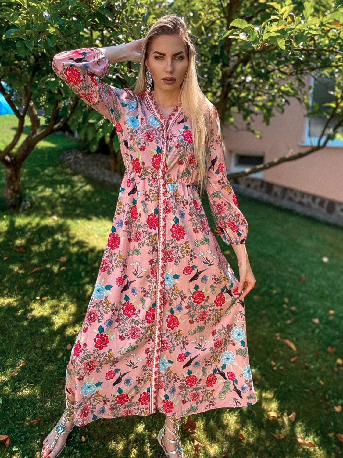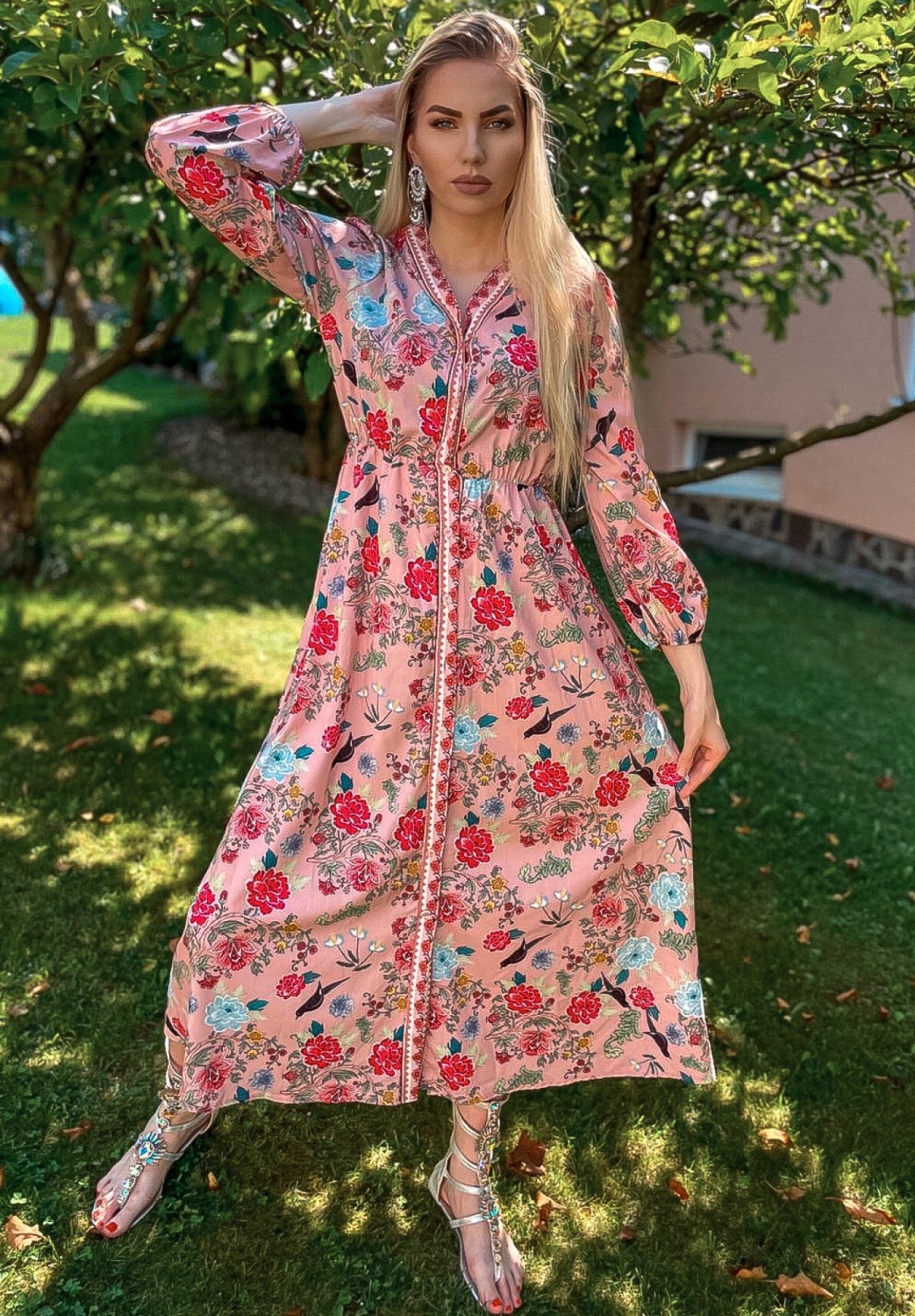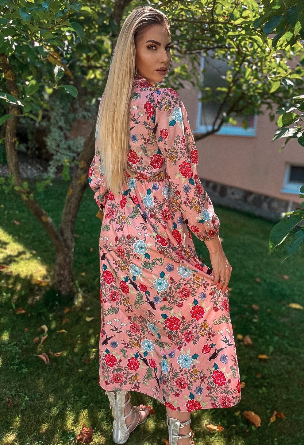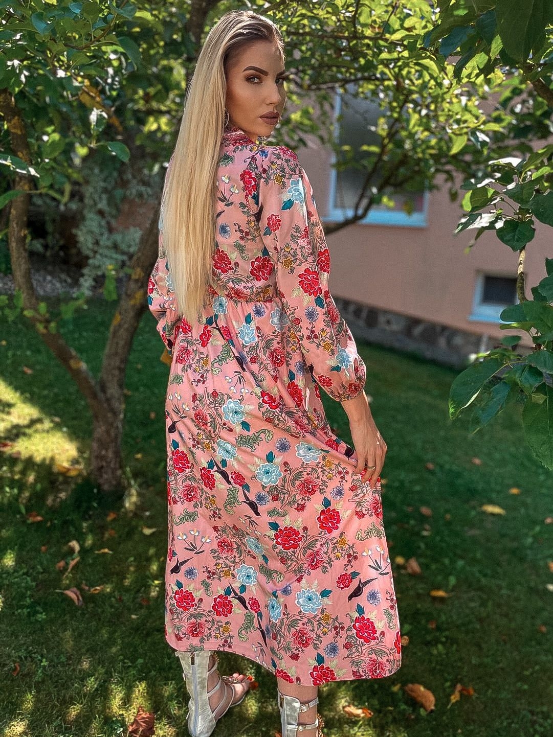 Kto by nemiloval dlhé kvetované košeľové šaty. Nie len v lete, ale aj počas jesene a jari si môžete outfit spestriť kvetovanou potlačou. Odporúčame k rifľovej bunde alebo koženke a môžete vyraziť. ružové biele kvetované dlhé šaty si môžete obliecť do mesta, do práce, ale aj na večerné stretnutie, či oslavu. Príjemný padavý a kvalitný materiál je zárukou spokojnosti. Nenáročné na údržbu - nekrčivý materiál. V páse sú šaty prestrihnuté a na gumičku, preto sa prispôsobia viacerým veľkostiam. Vpredu po celej dĺžke na gombíky. Všetok tovar máme ihneď k odoslaniu. Modelka je vysoká 180 cm a oblečenú má veľkosť UNI.