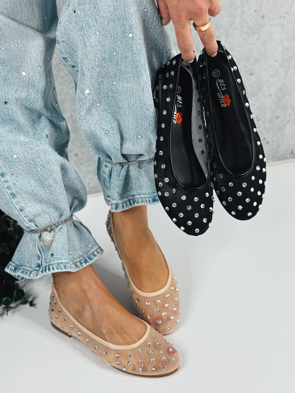 Tieto baleríny sú ideálnou voľbou pre ženy, ktoré chcú spojiť pohodlie s vkusným štýlom. Vďaka svojmu minimalistickému, no zároveň výraznému dizajnu sa hodia na každodenné nosenie, do práce, na prechádzky, ale aj na rôzne spoločenské príležitosti. Topánky sú vyrobené z jemného sieťovaného materiálu, ktorý pôsobí ľahko a vzdušne, čo oceníš najmä počas teplejších dní. Kamienky po celom povrchu dodávajú balerínam luxusný nádych a robia z nich originálny kúsok, ktorý oživí každý outfit. Veľkou výhodou je ich univerzálna farba, ktorá sa veľmi ľahko kombinuje – krásne doplnia šaty, sukňu, rifle aj elegantné nohavice. Sú pohodlné na nosenie počas celého dňa a vhodné pre každú ženu, ktorá chce vyzerať štýlovo bez kompromisov.