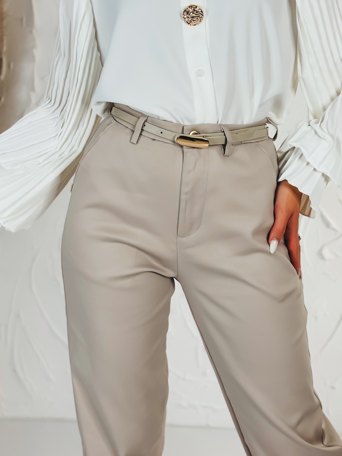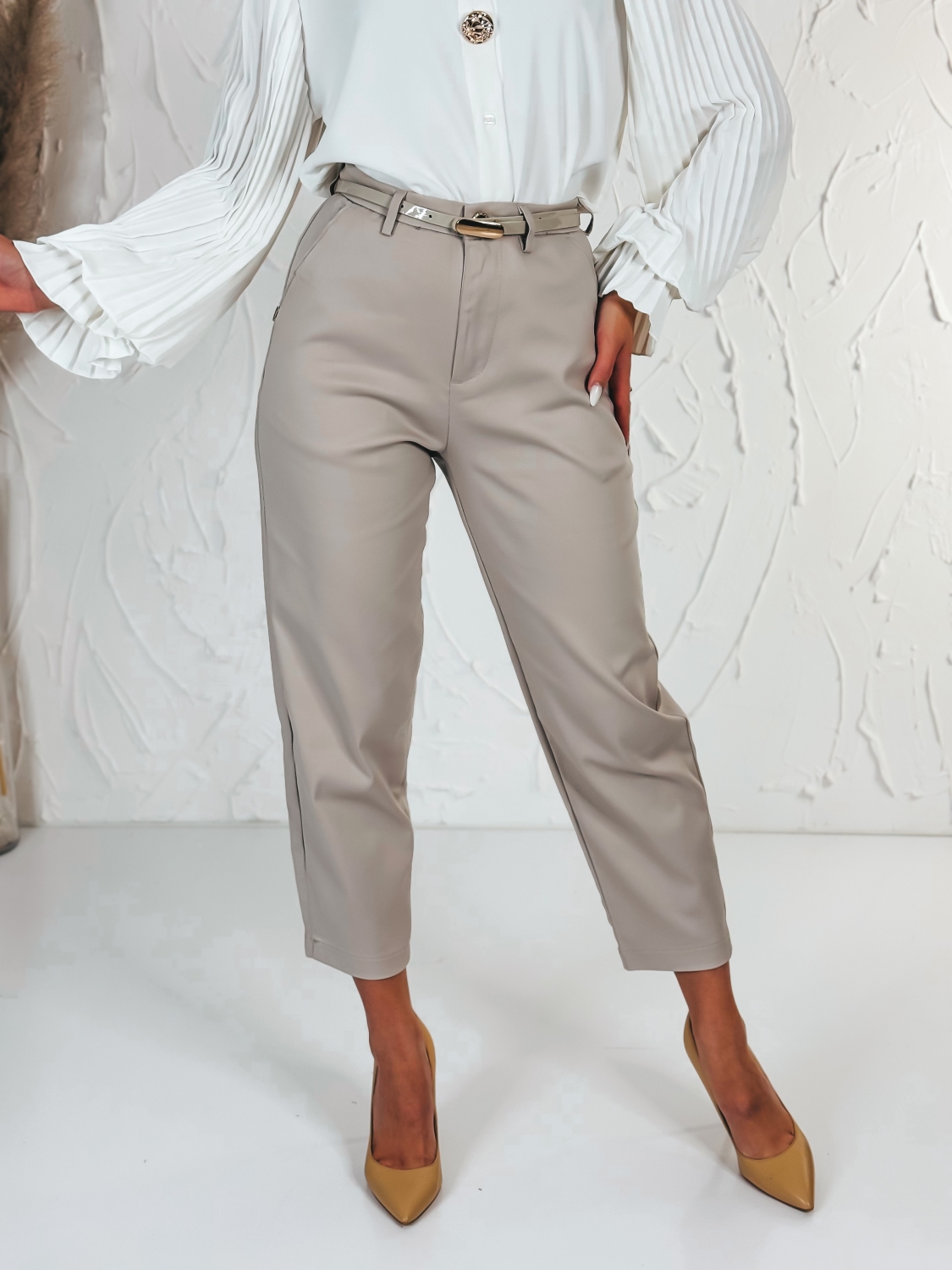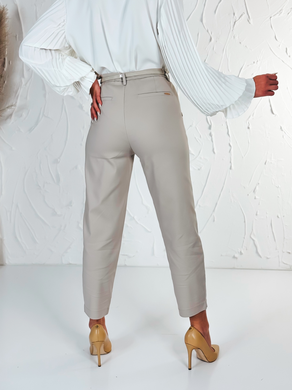Elegantné elastické dámske nohavice s vreckami – cigaretový strih. Tieto elegantné dámske nohavice sú ideálnou voľbou pre modernú ženu, ktorá hľadá spojenie štýlu, komfortu a praktickosti. Vďaka vysokokvalitnému elastickému materiálu sa nohavice perfektne prispôsobia postave, poskytujú pohodlie počas celého dňa a zachovávajú elegantný vzhľad aj pri dlhšom nosení. Cigaretový strih nohavíc dodáva outfitu sofistikovaný vzhľad, ktorý opticky predlžuje nohy a zároveň zachováva štíhly, čistý siluetový efekt. Vrecká po bokoch nie sú len štýlovým doplnkom – sú praktické a diskrétne, takže si môžete so sebou vziať drobnosti bez kompromisu na elegancii. Tieto nohavice sú vhodné na každodenné nosenie, do kancelárie aj na formálnejšie príležitosti. Ich univerzálny dizajn sa ľahko kombinuje s blúzkami, košeľami, sakami aj elegantnými topmi. Elastický pás a jemná pružnosť látky zaručujú komfort pri sedení, chôdzi či rýchlejšom pohybe, takže sa budete cítiť sebavedome a pohodlne počas celého dňa. S týmito nohavicami získate nadčasový kúsok, ktorý nesmie chýbať vo vašom šatníku – spája eleganciu, funkčnosť a moderný štýl v jednom.