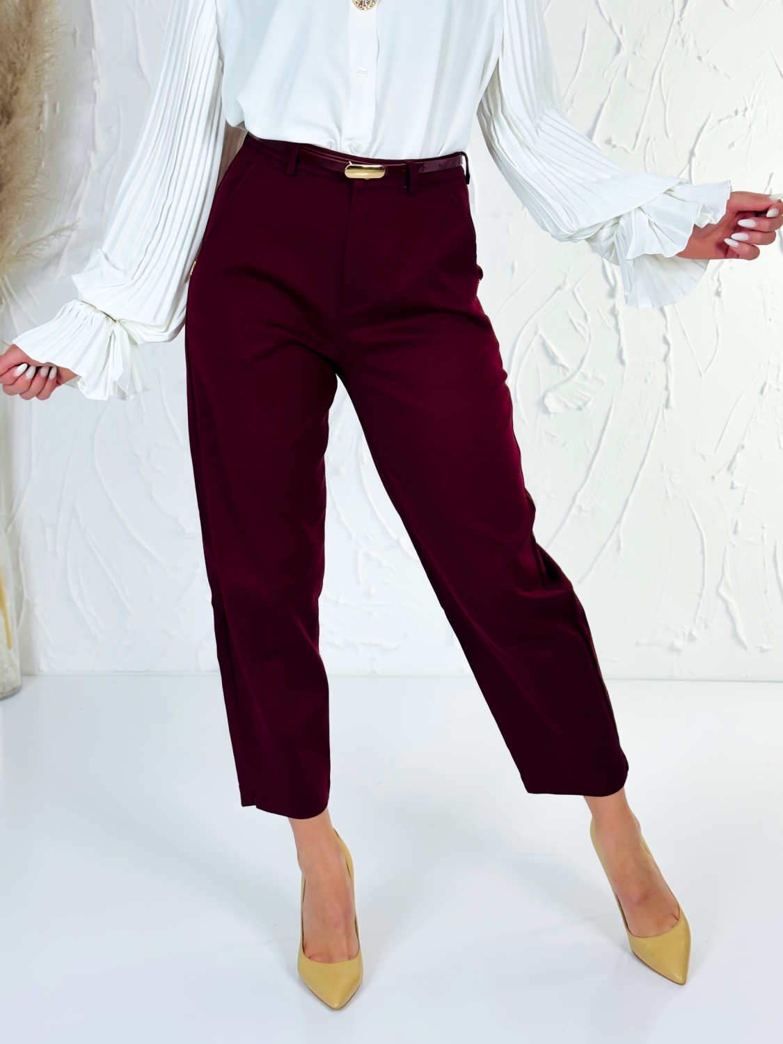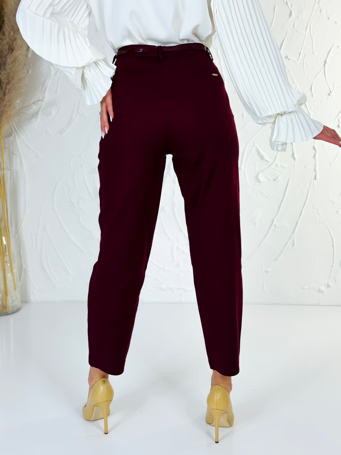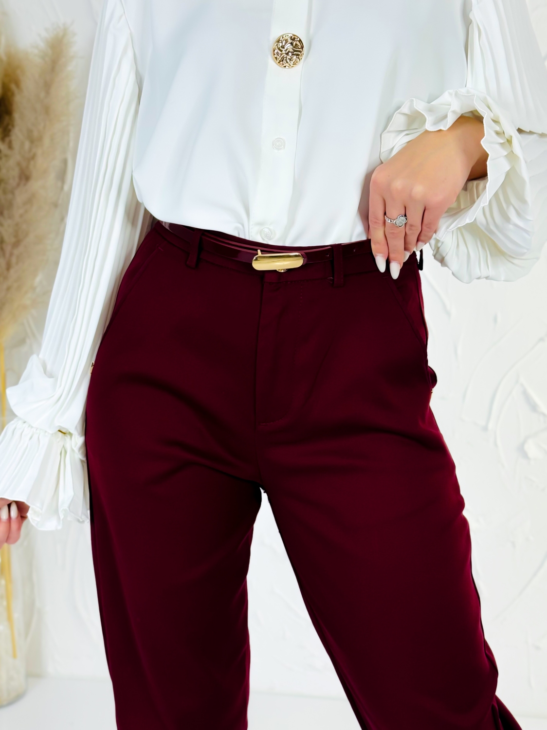 Elegantné elastické dámske nohavice s vreckami – cigaretový strih. Tieto elegantné dámske nohavice sú ideálnou voľbou pre modernú ženu, ktorá hľadá spojenie štýlu, komfortu a praktickosti. Vďaka vysokokvalitnému elastickému materiálu sa nohavice perfektne prispôsobia postave, poskytujú pohodlie počas celého dňa a zachovávajú elegantný vzhľad aj pri dlhšom nosení. Cigaretový strih nohavíc dodáva outfitu sofistikovaný vzhľad, ktorý opticky predlžuje nohy a zároveň zachováva štíhly, čistý siluetový efekt. Vrecká po bokoch nie sú len štýlovým doplnkom – sú praktické a diskrétne, takže si môžete so sebou vziať drobnosti bez kompromisu na elegancii. Tieto nohavice sú vhodné na každodenné nosenie, do kancelárie aj na formálnejšie príležitosti. Ich univerzálny dizajn sa ľahko kombinuje s blúzkami, košeľami, sakami aj elegantnými topmi. Elastický pás a jemná pružnosť látky zaručujú komfort pri sedení, chôdzi či rýchlejšom pohybe, takže sa budete cítiť sebavedome a pohodlne počas celého dňa. S týmito nohavicami získate nadčasový kúsok, ktorý nesmie chýbať vo vašom šatníku – spája eleganciu, funkčnosť a moderný štýl v jednom.