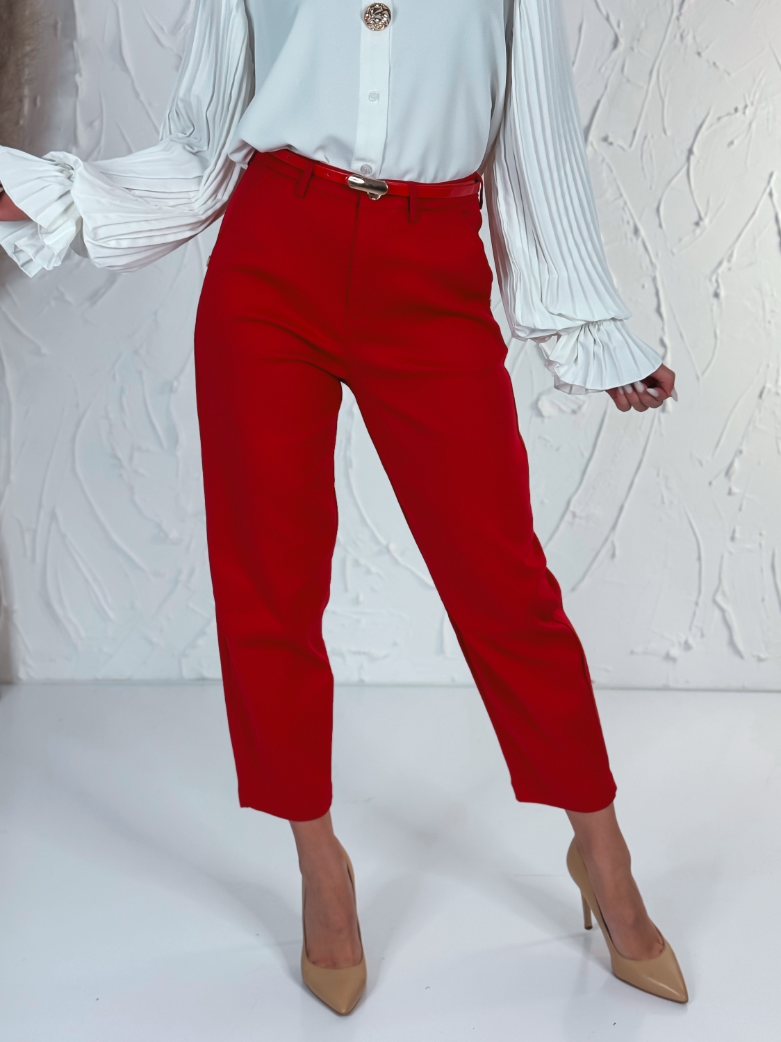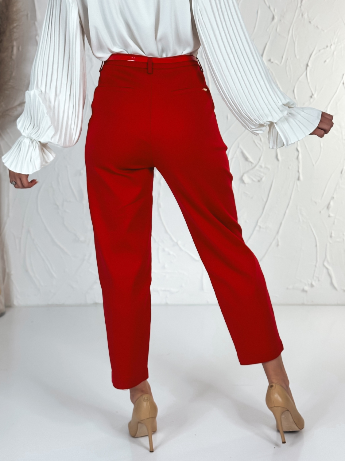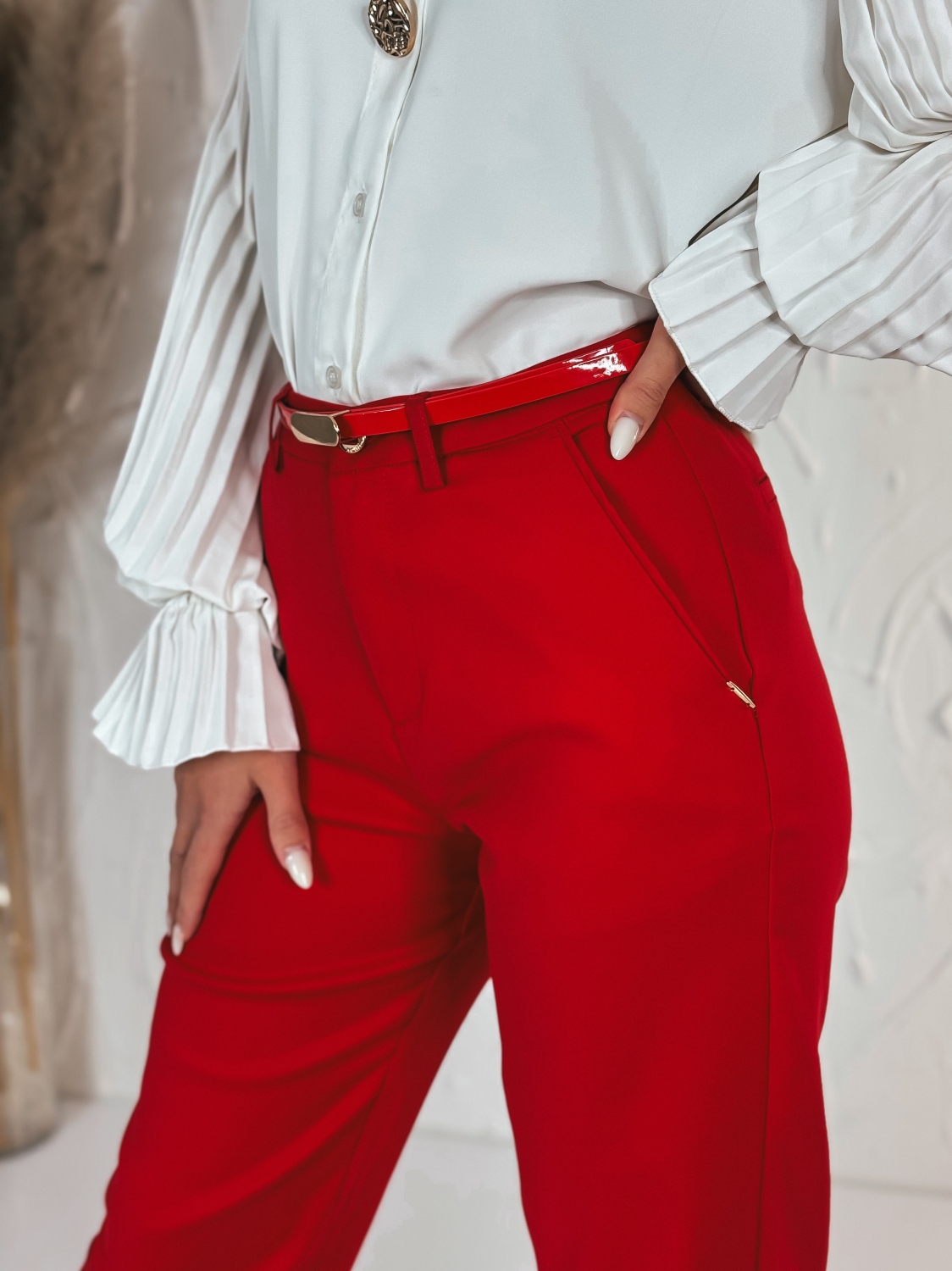 Elegantné elastické dámske nohavice s vreckami – cigaretový strih. Tieto elegantné dámske nohavice sú ideálnou voľbou pre modernú ženu, ktorá hľadá spojenie štýlu, komfortu a praktickosti. Vďaka vysokokvalitnému elastickému materiálu sa nohavice perfektne prispôsobia postave, poskytujú pohodlie počas celého dňa a zachovávajú elegantný vzhľad aj pri dlhšom nosení. Cigaretový strih nohavíc dodáva outfitu sofistikovaný vzhľad, ktorý opticky predlžuje nohy a zároveň zachováva štíhly, čistý siluetový efekt. Vrecká po bokoch nie sú len štýlovým doplnkom – sú praktické a diskrétne, takže si môžete so sebou vziať drobnosti bez kompromisu na elegancii. Tieto nohavice sú vhodné na každodenné nosenie, do kancelárie aj na formálnejšie príležitosti. Ich univerzálny dizajn sa ľahko kombinuje s blúzkami, košeľami, sakami aj elegantnými topmi. Elastický pás a jemná pružnosť látky zaručujú komfort pri sedení, chôdzi či rýchlejšom pohybe, takže sa budete cítiť sebavedome a pohodlne počas celého dňa. S týmito nohavicami získate nadčasový kúsok, ktorý nesmie chýbať vo vašom šatníku – spája eleganciu, funkčnosť a moderný štýl v jednom.