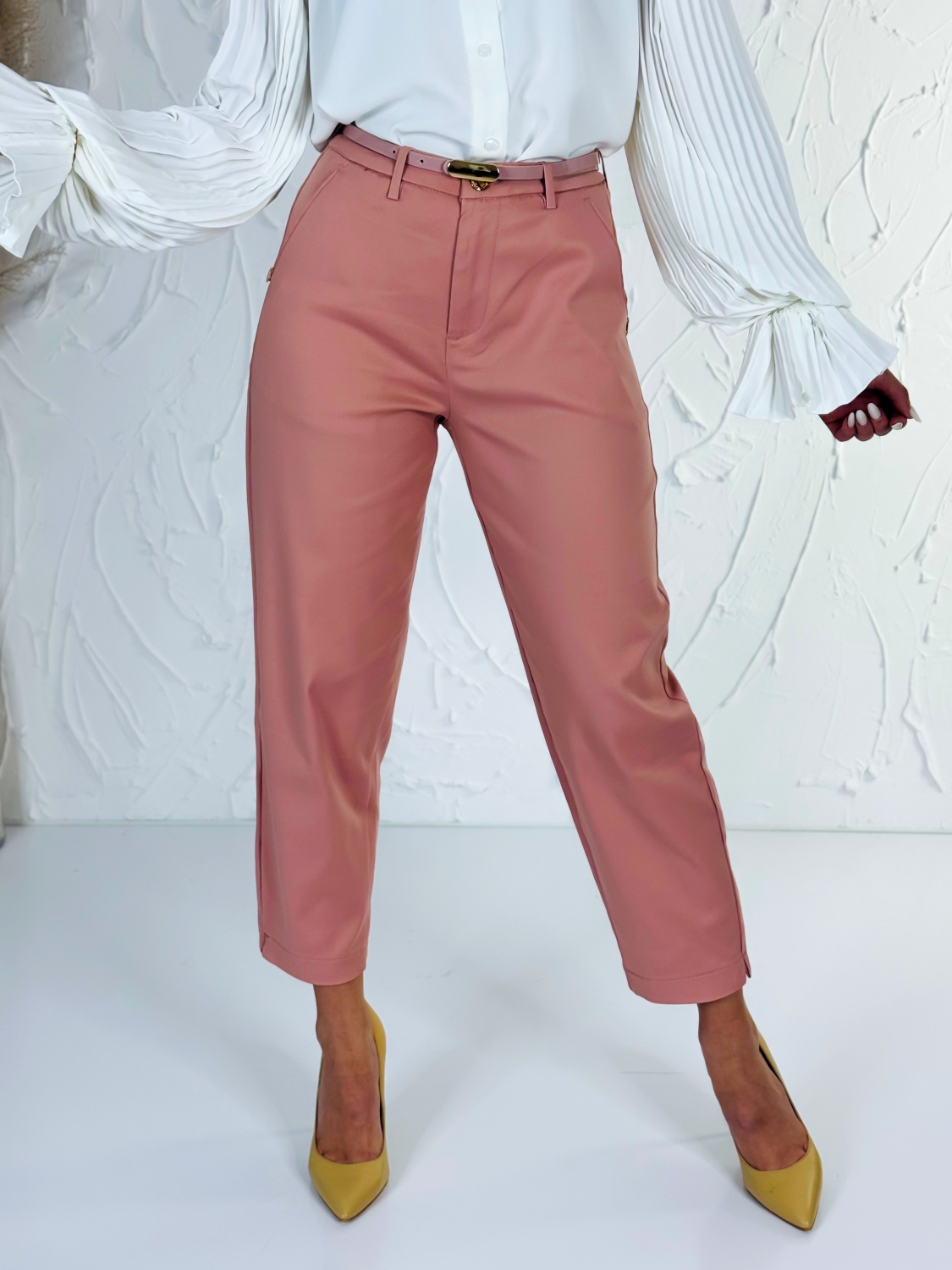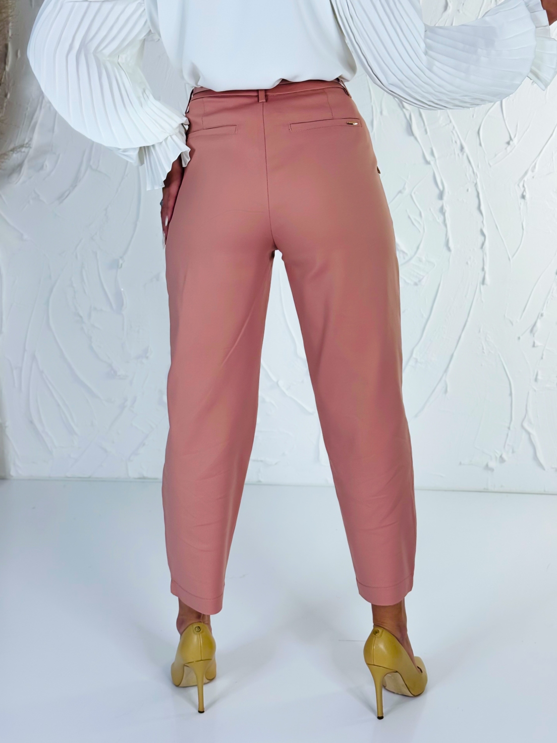 Elegantné elastické dámske nohavice s vreckami – cigaretový strih. Tieto elegantné dámske nohavice sú ideálnou voľbou pre modernú ženu, ktorá hľadá spojenie štýlu, komfortu a praktickosti. Vďaka vysokokvalitnému elastickému materiálu sa nohavice perfektne prispôsobia postave, poskytujú pohodlie počas celého dňa a zachovávajú elegantný vzhľad aj pri dlhšom nosení. Cigaretový strih nohavíc dodáva outfitu sofistikovaný vzhľad, ktorý opticky predlžuje nohy a zároveň zachováva štíhly, čistý siluetový efekt. Vrecká po bokoch nie sú len štýlovým doplnkom – sú praktické a diskrétne, takže si môžete so sebou vziať drobnosti bez kompromisu na elegancii. Tieto nohavice sú vhodné na každodenné nosenie, do kancelárie aj na formálnejšie príležitosti. Ich univerzálny dizajn sa ľahko kombinuje s blúzkami, košeľami, sakami aj elegantnými topmi. Elastický pás a jemná pružnosť látky zaručujú komfort pri sedení, chôdzi či rýchlejšom pohybe, takže sa budete cítiť sebavedome a pohodlne počas celého dňa. S týmito nohavicami získate nadčasový kúsok, ktorý nesmie chýbať vo vašom šatníku – spája eleganciu, funkčnosť a moderný štýl v jednom.