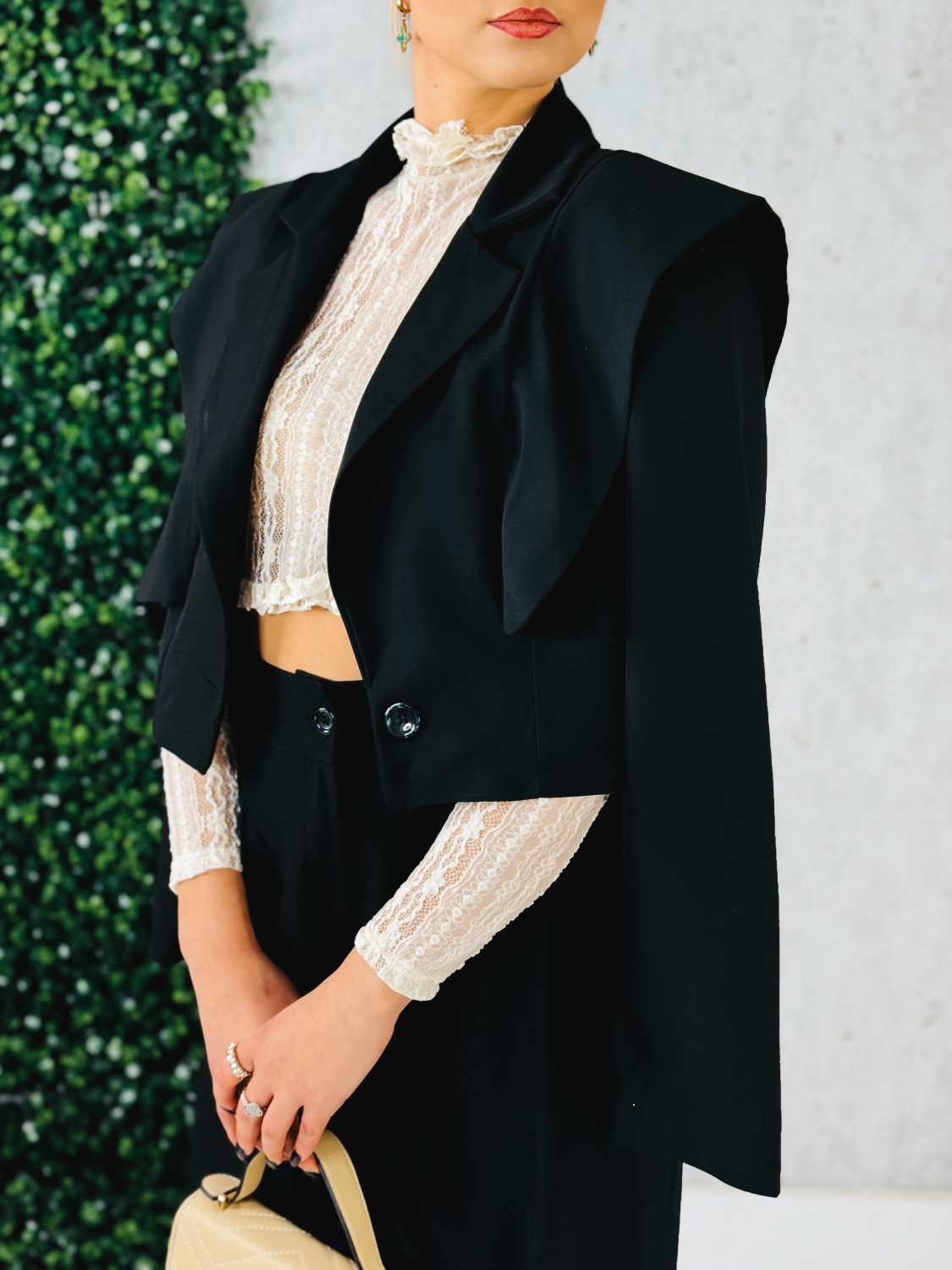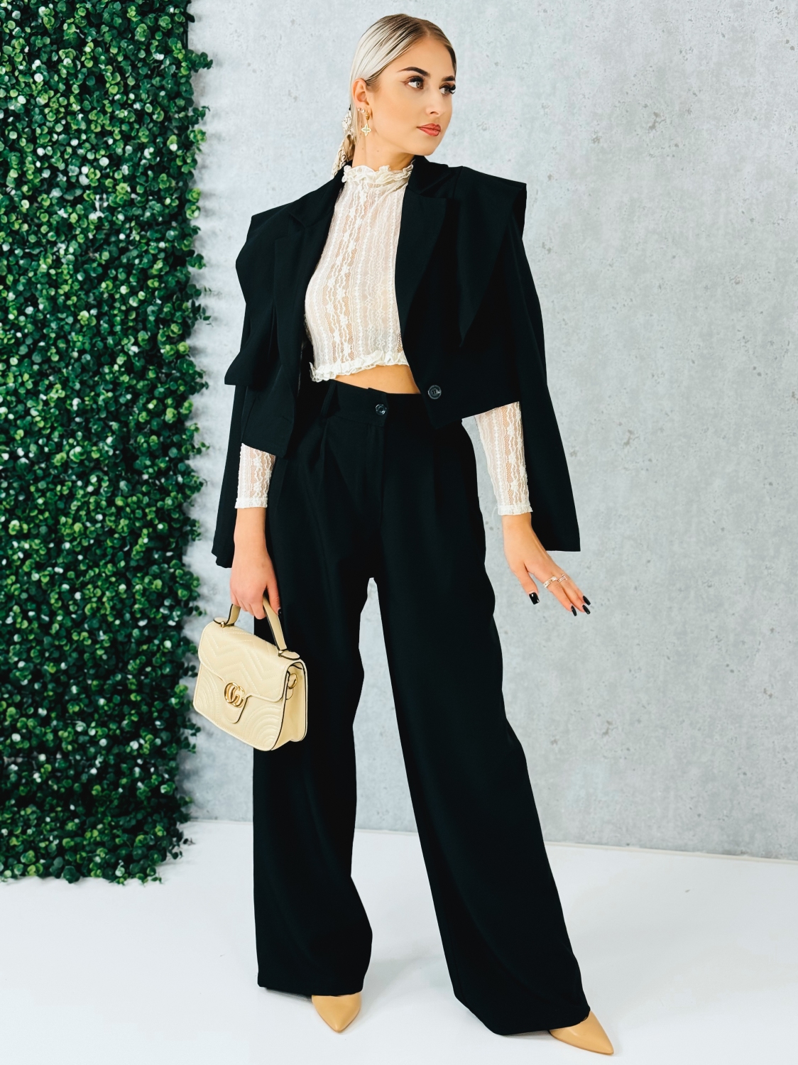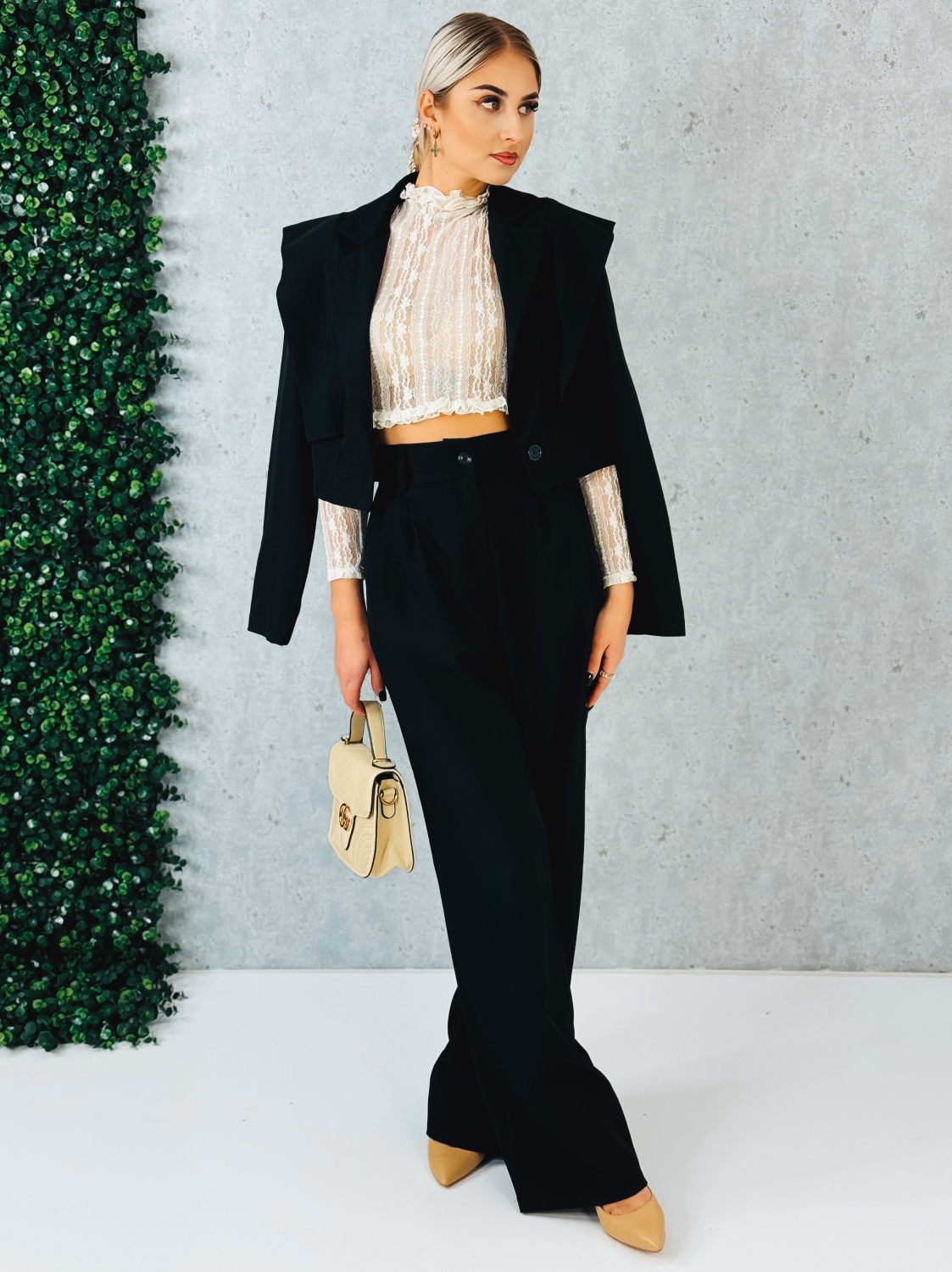 Elegantný dvojdielny dámsky kostým predstavuje ideálne spojenie štýlu, ženskosti a pohodlia. Je navrhnutý tak, aby vyhovoval moderným ženám, ktoré chcú pôsobiť upravene a sebavedomo pri každej príležitosti – v práci, na obchodnom stretnutí, rodinnej oslave či spoločenskej udalosti. Sako v skrátenom strihu do pása krásne zvýrazní siluetu a dodá outfitu súčasný, čistý vzhľad. Zapínanie na gombík podčiarkuje jeho elegantný charakter a zároveň umožňuje jednoduché kombinovanie aj s inými kúskami šatníka. Môžete ho nosiť ako komplet s nohavicami alebo samostatne k rifliam či sukni. Nohavice majú voľnejší, pohodlný strih, ktorý zaručuje komfort počas celého dňa. V zadnej časti je všitá gumička, vďaka ktorej sa nohavice prispôsobia postave a jemne sa natiahnu podľa potreby. Zapínanie na gombík pôsobí upravene a elegantne, pričom celý model si zachováva moderný a nadčasový charakter. Tento kostým je výbornou voľbou pre ženy, ktoré hľadajú univerzálny kúsok do šatníka – taký, ktorý spája eleganciu s praktickosťou a dá sa nosiť pri rôznych príležitostiach. Stačí zvoliť vhodné doplnky a vytvoríte formálny aj uvoľnenejší outfit bez toho, aby ste museli robiť kompromis medzi štýlom a pohodlím.