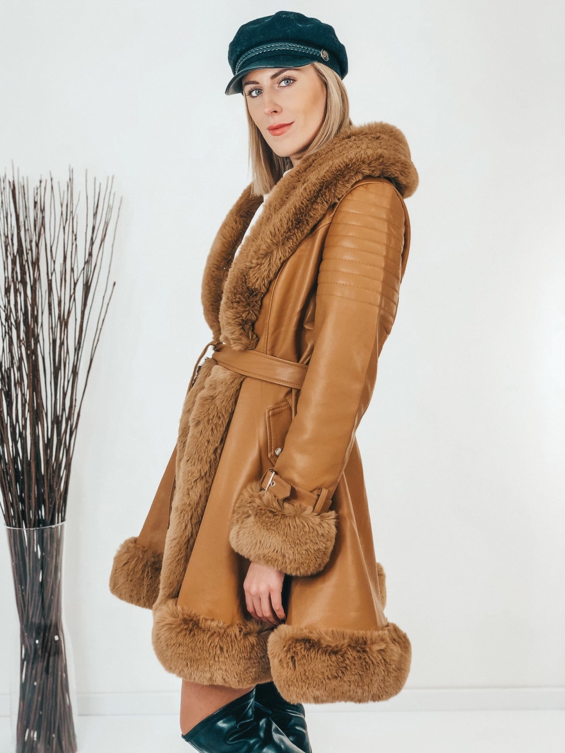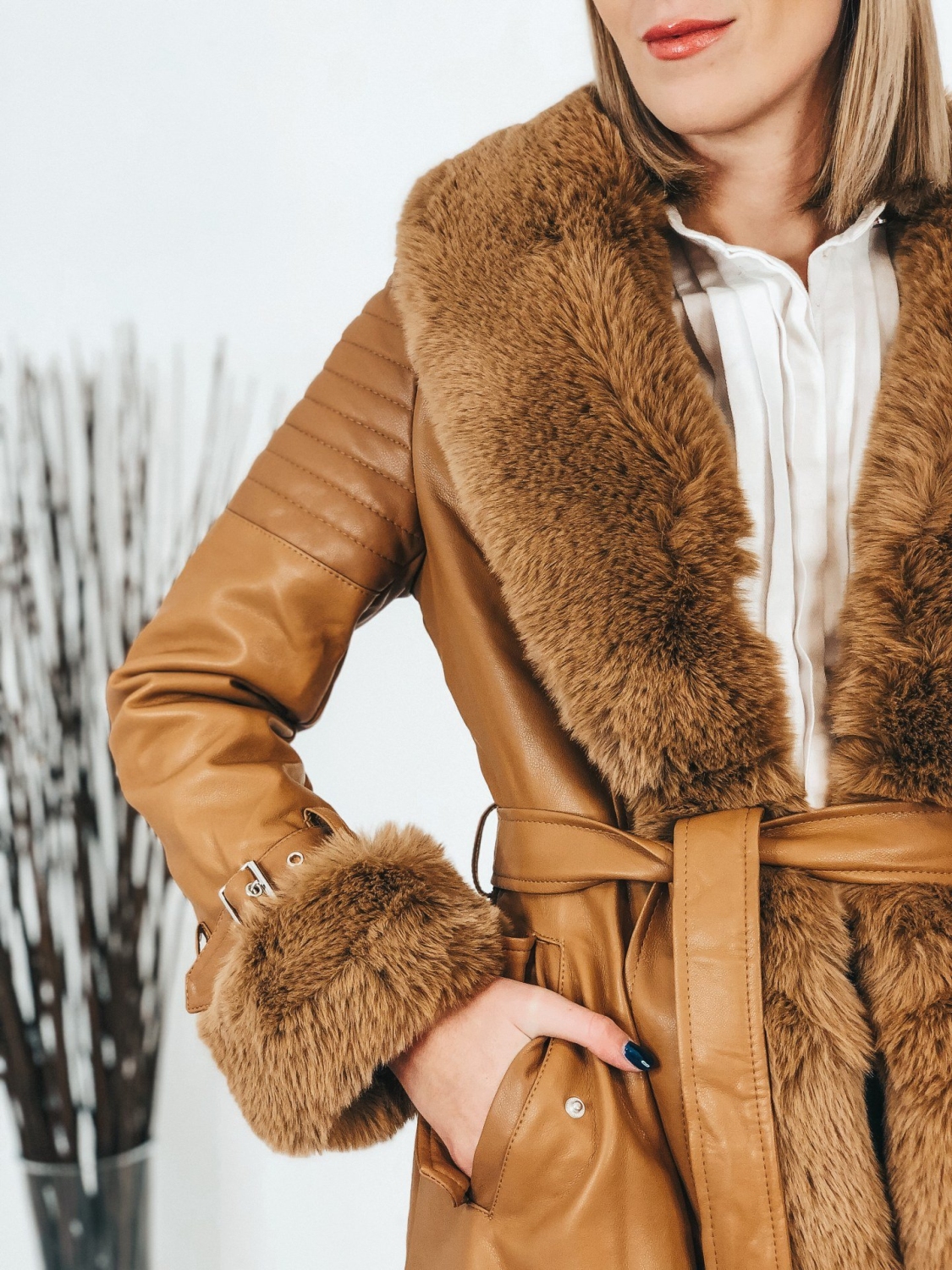 Dámska hnedá exkluzívna kožušinová bunda, ktorá je vhodná na jeseň a zimu, nakoľko je celá zateplená. Svojím strihom a bohatou umelou kožušinou pôsobí mohutne a extravagantne. Sľubujeme Vám, že pri nej neostane žiadna žena bez povšimnutia. Jednoducho neprehliadnuteľný kúsok, ktorý by mala vlastniť každá módna maniačka. Bunda má dlhý rukáv, zapínanie na cvok s viazaním okolo pása. Dĺžka bundy siaha pod zadok. Vrecká má na oboch stranách. Doplňte Váš šatník týmto štýlovým kúskom, ktorý jednoducho skombinujete a budete zaručene štýlová aj počas bežného dňa. Exkluzívna mohutná kožušina je veľmi kvalitná a príjemne hrejivá. Prekvapte svoje okolie, zabodujte v spoločnosti. Odporúčame Vám túto zimnú bundu všetkými desiatimi. Modelka je vysoká 175 cm a oblečenú má veľkosť M.