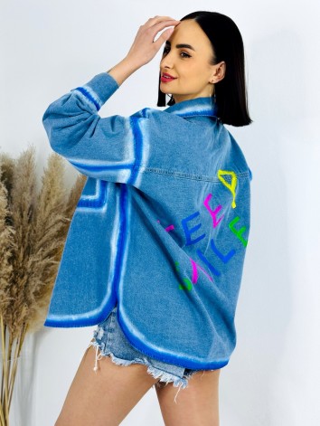 Milé dámy, predstavujeme Vám jednoznačný #musthave kúsok na túto sezónu. Oversize predĺžená rifľová bunda KEEP SMILE, ktorá je doplnená nápisom a vreckami v prednej časti. Dlhý strih. TOP kúsok do Vášho šatníka. Rifľová bunda je skvelým kúskom, ktorým doladíte akýkoľvek outfit. Hodí sa k šatám, rifliam, ale aj kraťasom. Je na Vás ako si ju nakombinujete. Jasné je len to, že rifľovina tu bola už dávno a ešte dlho tu s nami aj pobudne. Nesmrteľný kúsok, ktorý prichádza každú sezónu s malou obmenou. Príjemný komfort pri nosení vďaka vysokému podielu bavlny. Tento model Vám nemôže chýbať v šatníku. Bunda sa zapína vpredu na gombíky. Modelka je vysoká 175 cm a oblečenú má veľkosť UNI.