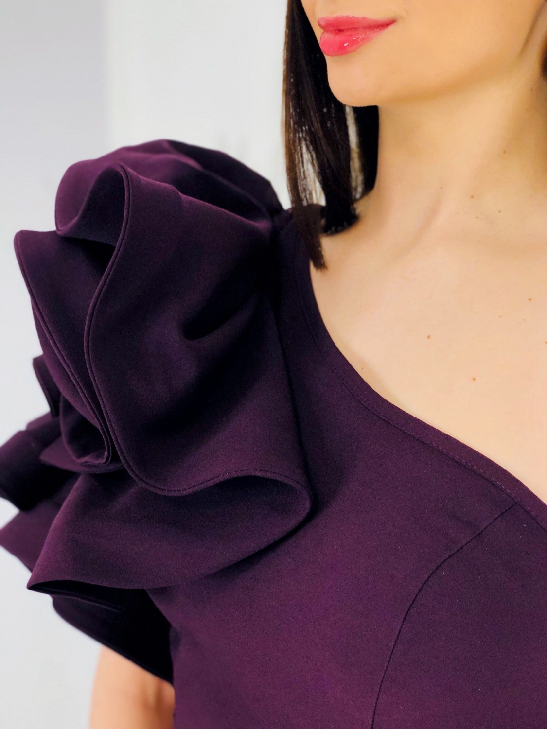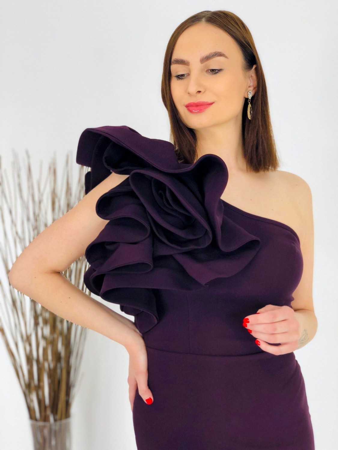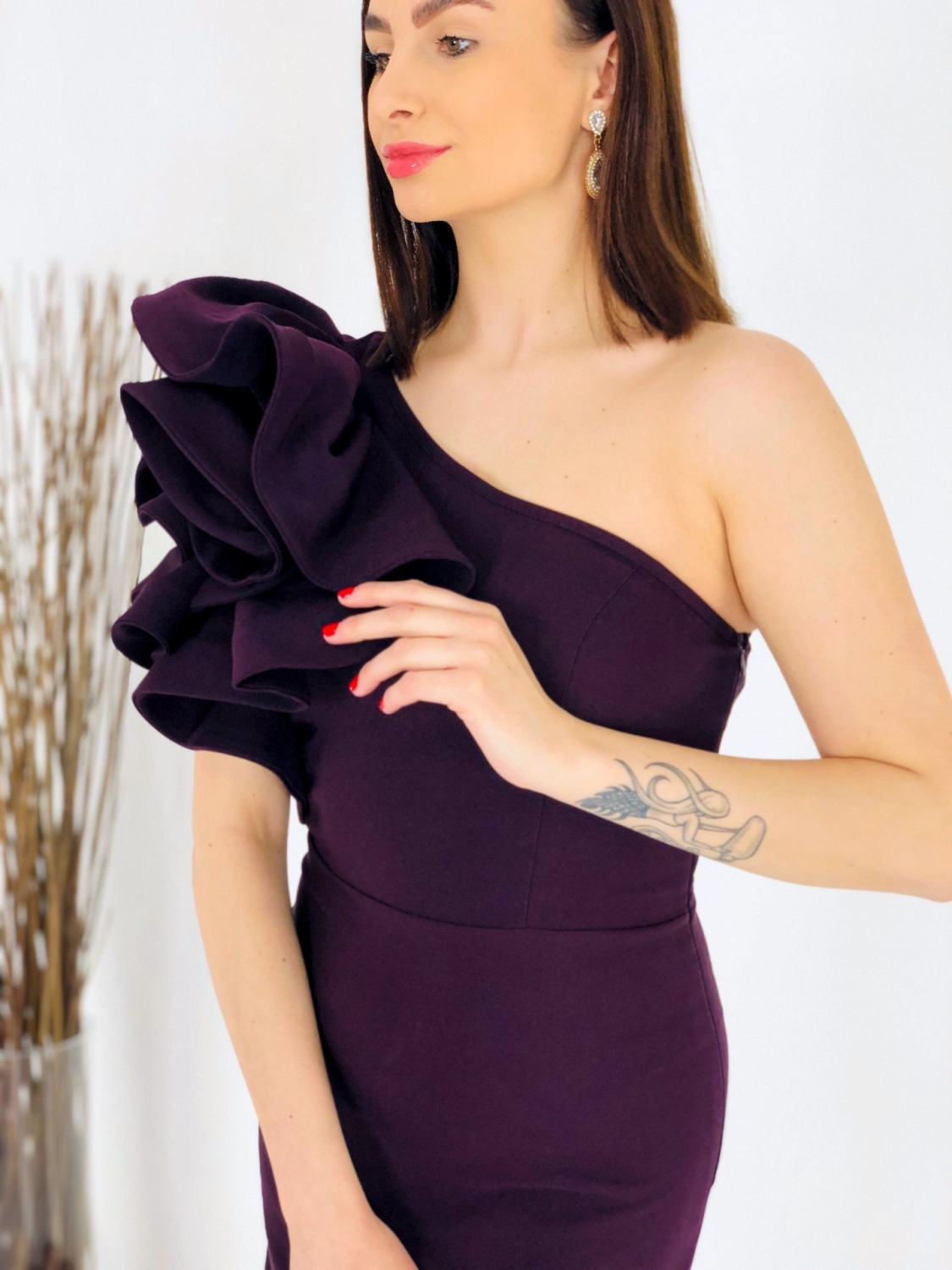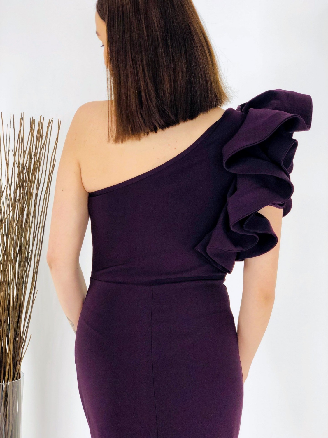 Dámske exkluzívne dlhé šaty s volánom na pravej strane. Šaty sú vyrobené z príjemného a mierne elastického materiálu. Tento model využijete na spoločenské príležitosti ako svadby a oslavy. Vhodné aj ako šaty pre družičky na svadbu. Môžete ich doplniť spoločenskou kabelkou a lodičkami. Využijete ich na akúkoľvek príležitosť a neostanú Vám visieť v skrini po jednej akcii, to Vám sľubujeme:). Šaty sa zapínaju zboku na zips. Módny kúsok pre moderné ženy. Modelka je vysoká 175 cm a má oblečenú veľkosť 40.