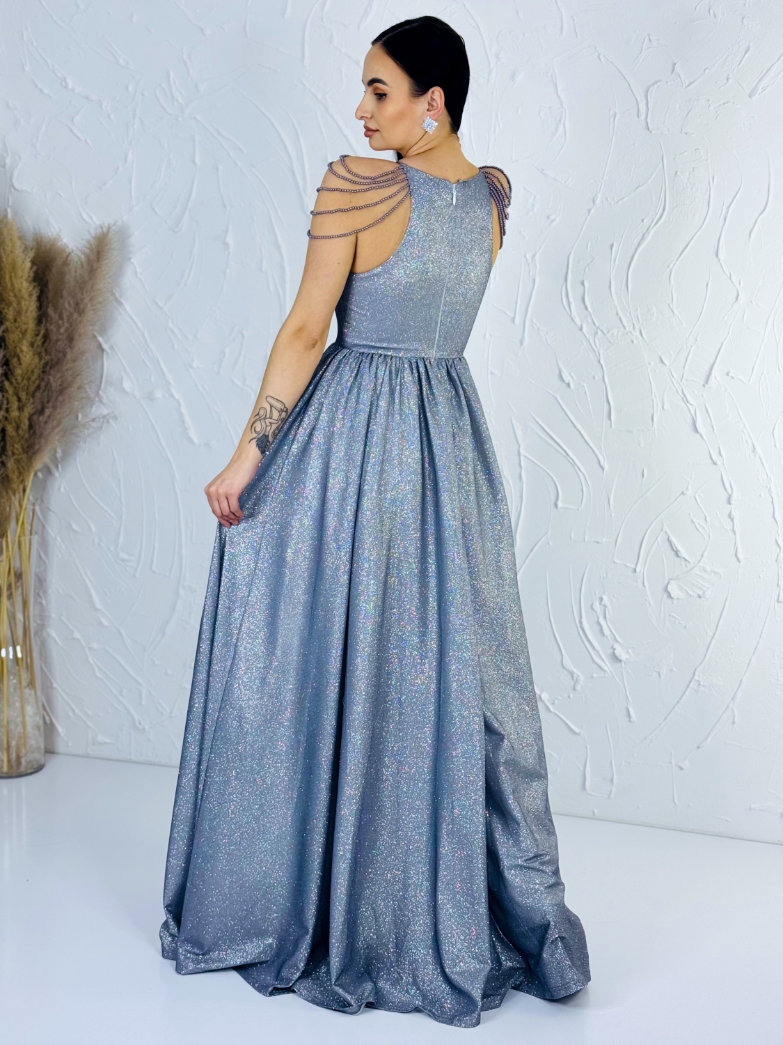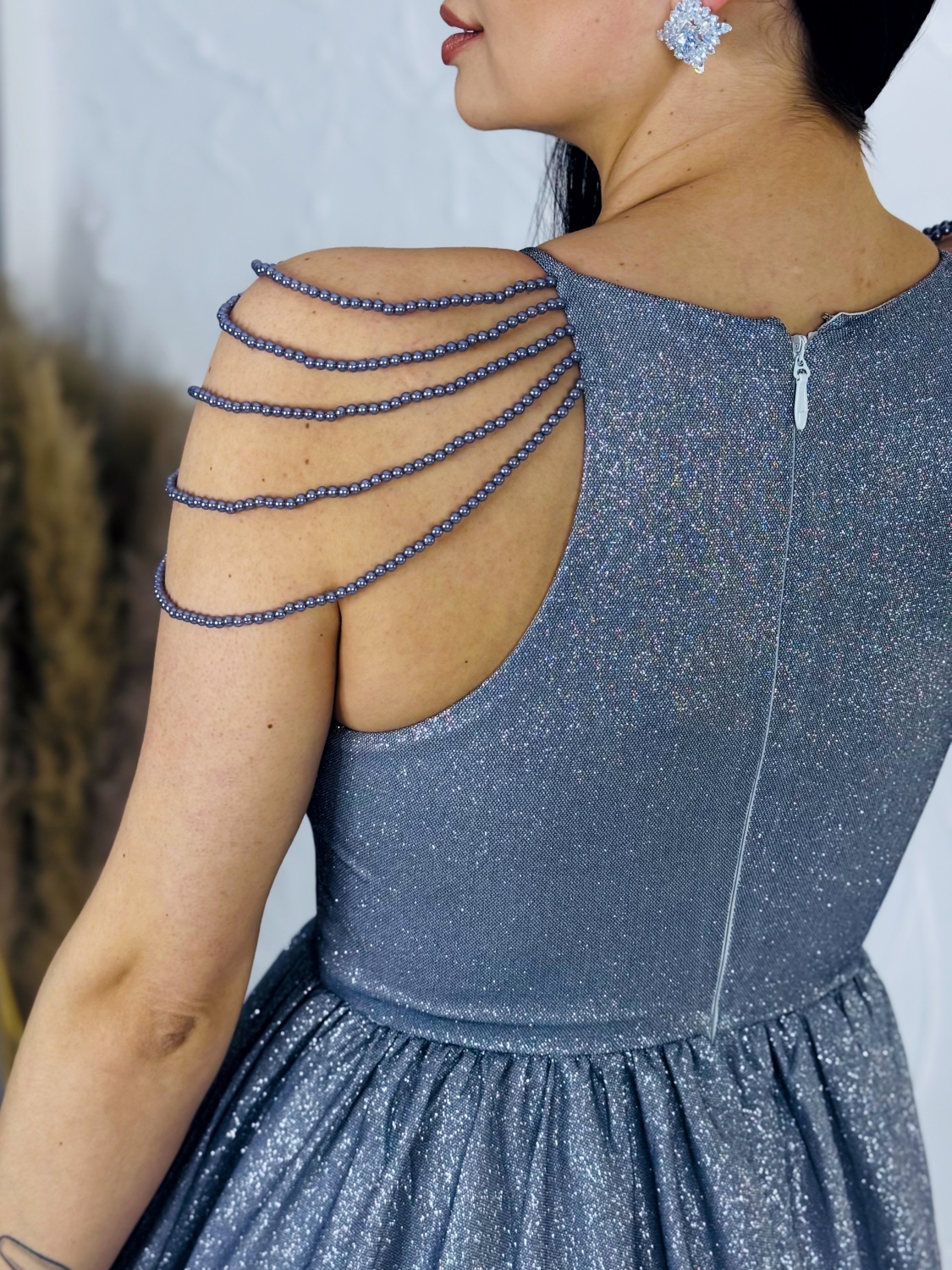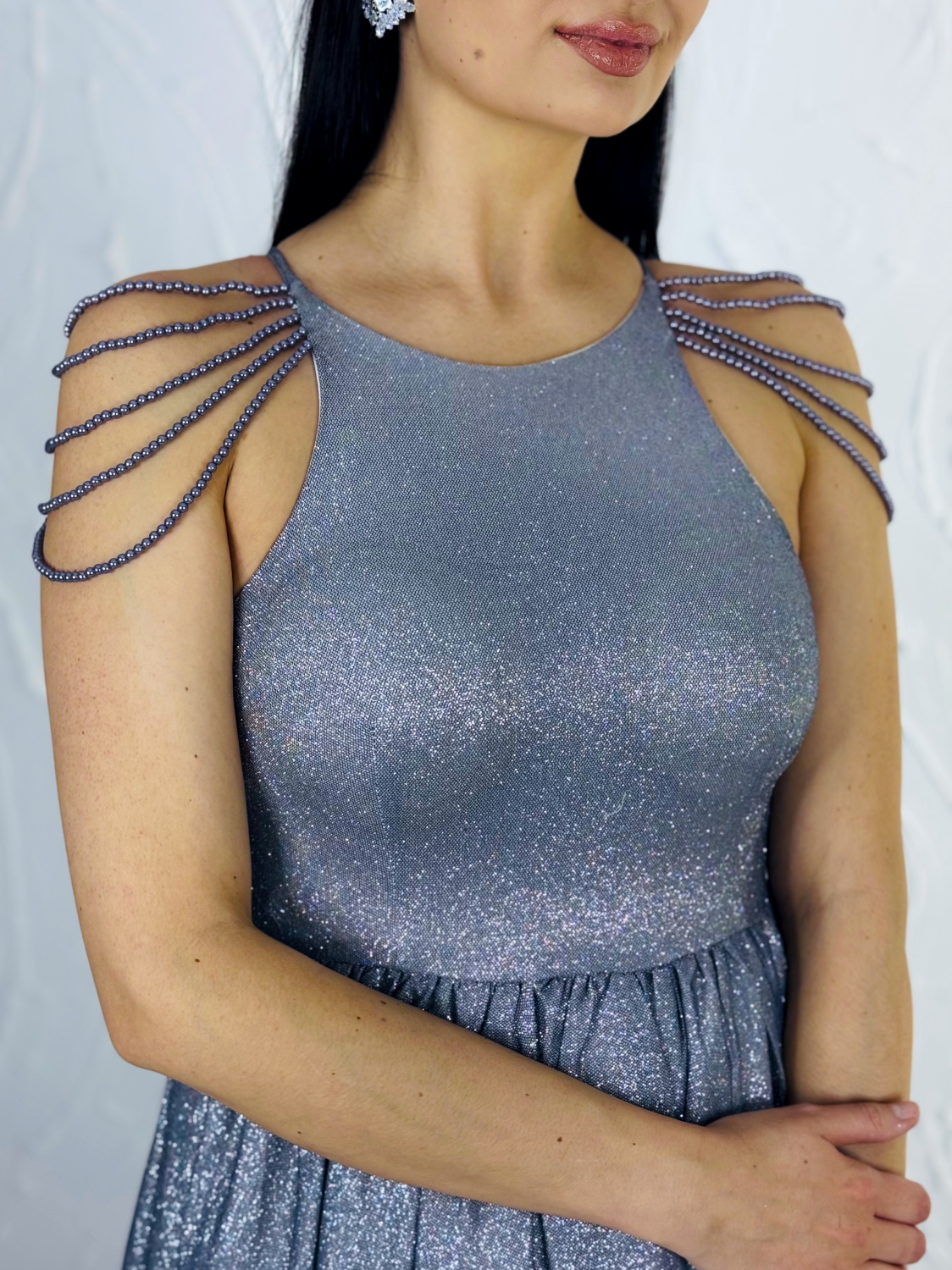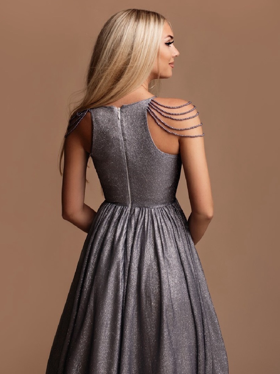 Exkluzívne dámske dlhé nádherné spoločenské šaty v trblietavom prevedení s ozdobnými perlami na ramene. Do týchto šiat sa nedá nezamilovať! Veľmi luxusný kúsok z našej ponuky, ktorý očarí každú z Vás a samozrejme aj ostatných okolo Vás. Jemné trblietky zdobia celé šaty. Zapínanie vzadu na zips. Šaty majú vystúžené prsia. Vhodné sú na rôzne spoločenské udalosti ako je svadba, stužková slávnosť či ples. Krása a luxus. Limitované šaty na každú priležitosť. Vysoká kvalita. Ak stále túžite zažiariť s týmto kúsok sa Vám to ihneď podarí! Buďte okúzľujúca a zvoľte si model podľa Vaších predstáv. Kúsok šiat, ktorý budete nosiť s radosťou a nadšením.