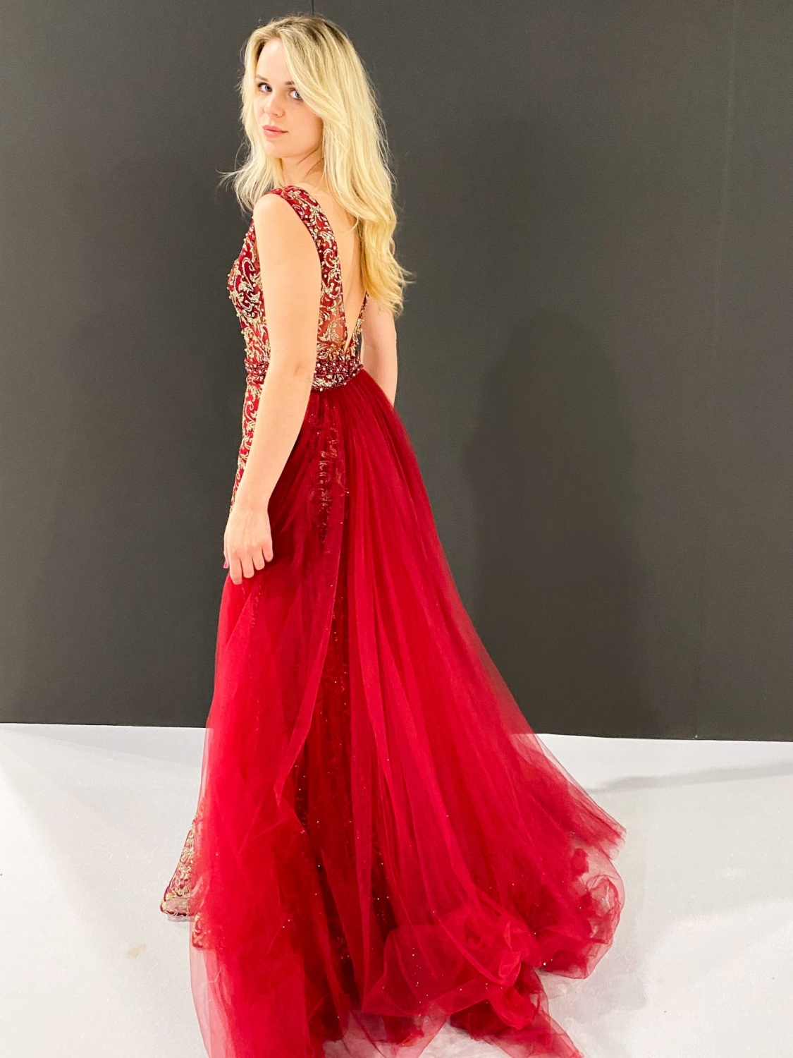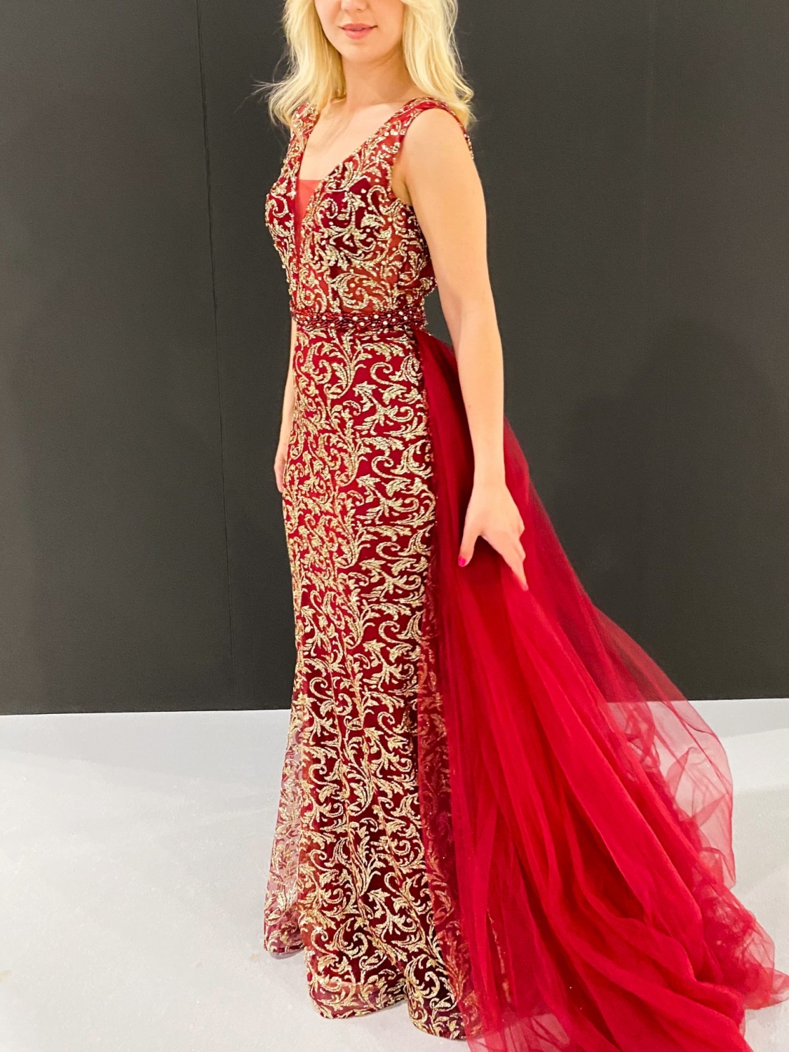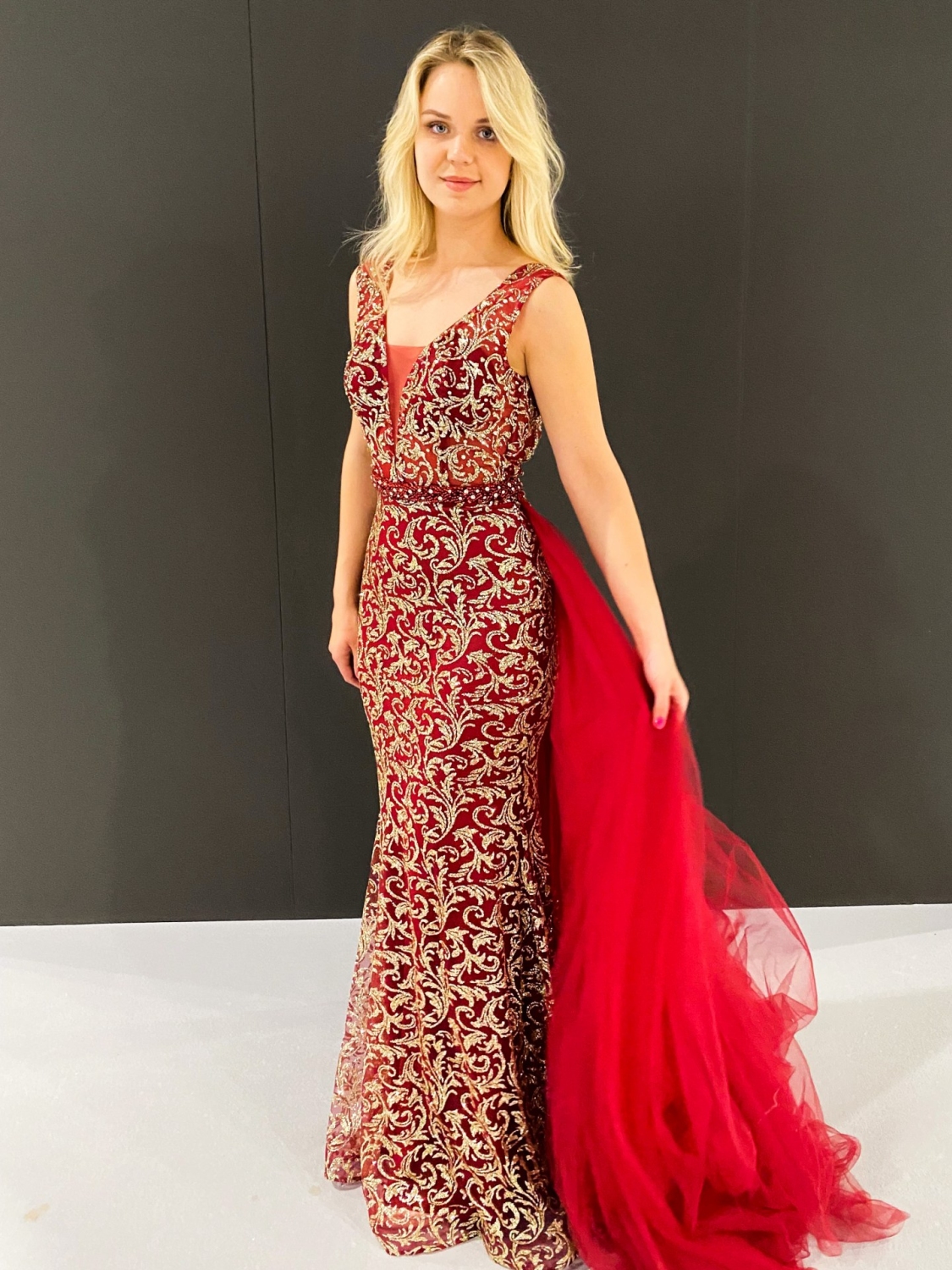 Dámske exkluzívne spoločenské šaty v trblietavom prevedení, ktoré sú v nádhernej farbe a véčkovým výstrihom. Šaty sú doplnené tylovou sukňou, ktorú je možné si odopnúť. Veľmi luxusný kúsok z našej ponuky, ktorý očarí každú z Vás a samozrejme aj ostatných okolo Vás. Strih šiat, ktorý Vám dodá šmrnc. MUST-HAVE kúsok na akúkoľvek spoločenskú udalosť. Zapínanie vzadu na zips. Šaty majú vystúžené prsia. Vhodné sú na rôzne spoločenské udalosti ako je svadba, stužková slávnosť či ples. Modelka je vysoká 175 cm a má oblečenú veľkosť S.