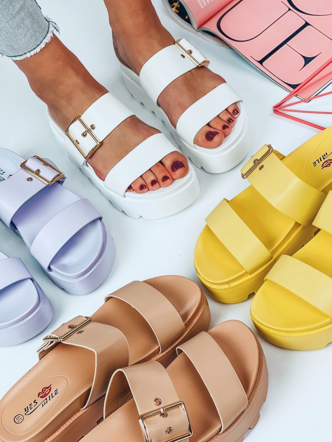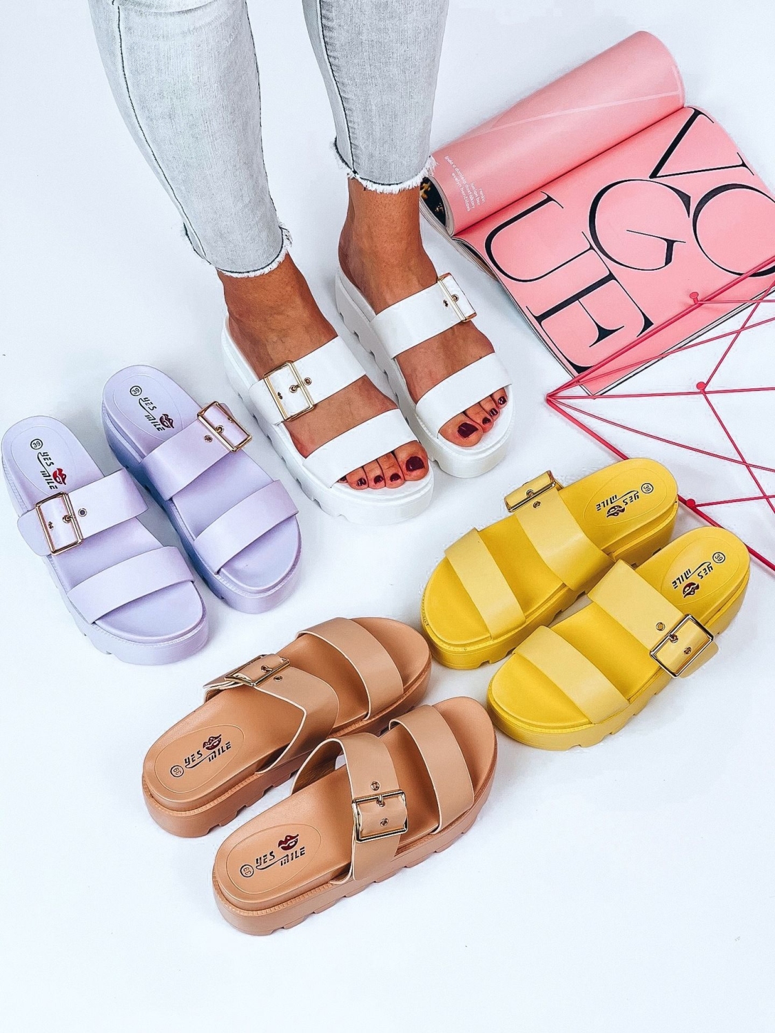 Dámske šľapky na platforme v bielej farbe si okamžite zamilujete. Vrchná časť remienkov je nastaviteľná. Vďaka 5 cm platforme určite neostanete bez povšimnutia. Zladíte k šatám, alebo aj k rifliam. Môžete si ich obliecť do mesta alebo aj do práce. Perfektne doplnia každý štýlový outfit. Ak sa rozhodujete medzi dvoma veľkosťami, odporúčame voliť tú väčšiu.