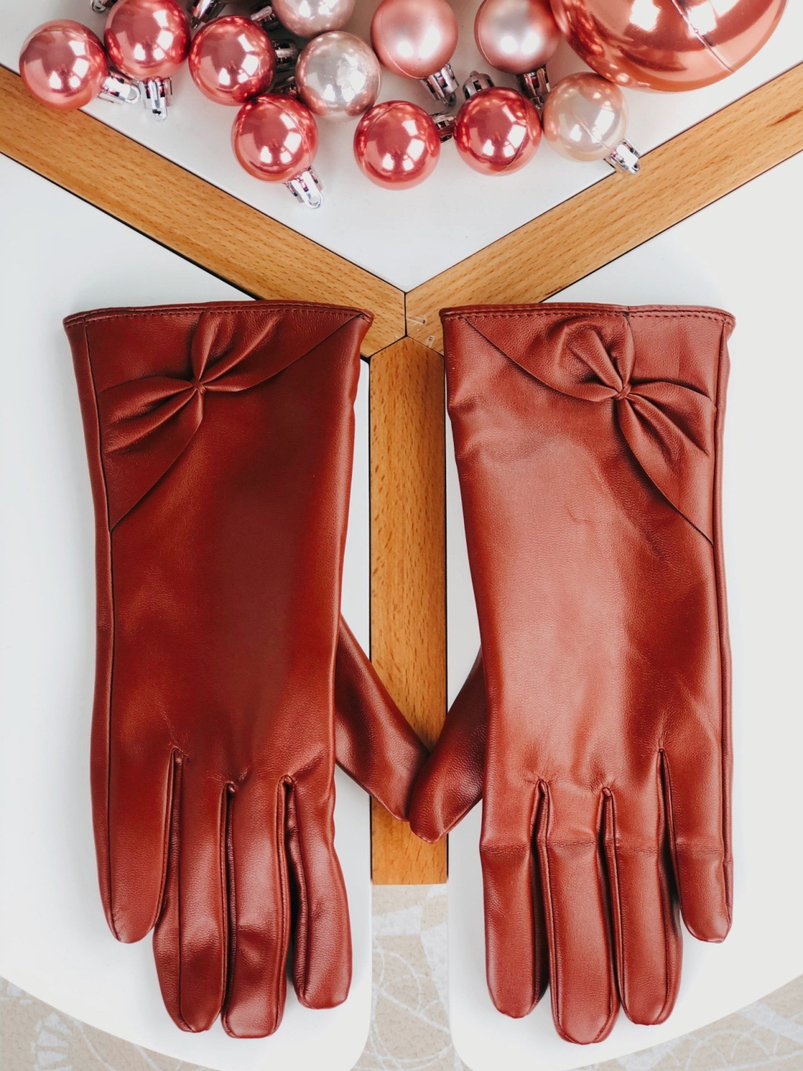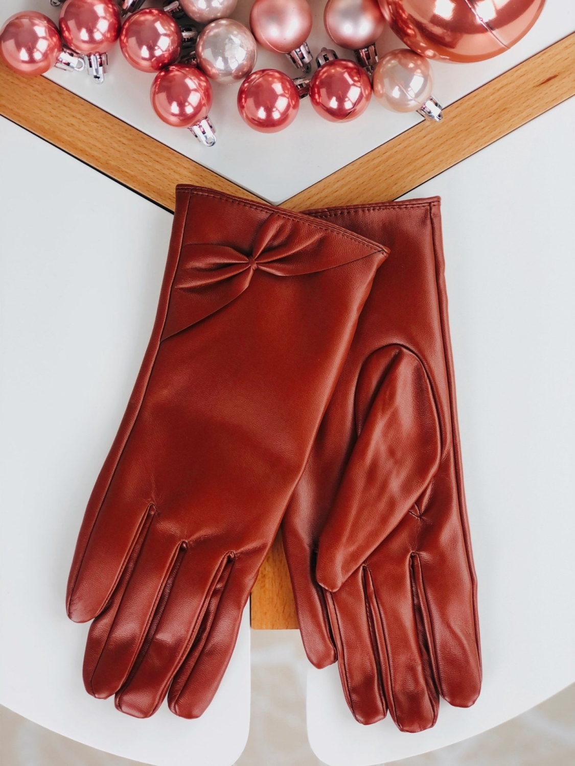 Dámske kožené rukavice v hnedej farbe. Vrchná časť je koženková, vnútorná je bavlnená. Zvnútra sú mierne zateplené. Kvalitný a príjemný materiál. Zahrejú ruky a doplnia Váš outfit počas chladných dní. Vhodné na formálne aj neformálne nosenie. Upútajú nejeden pohľad.