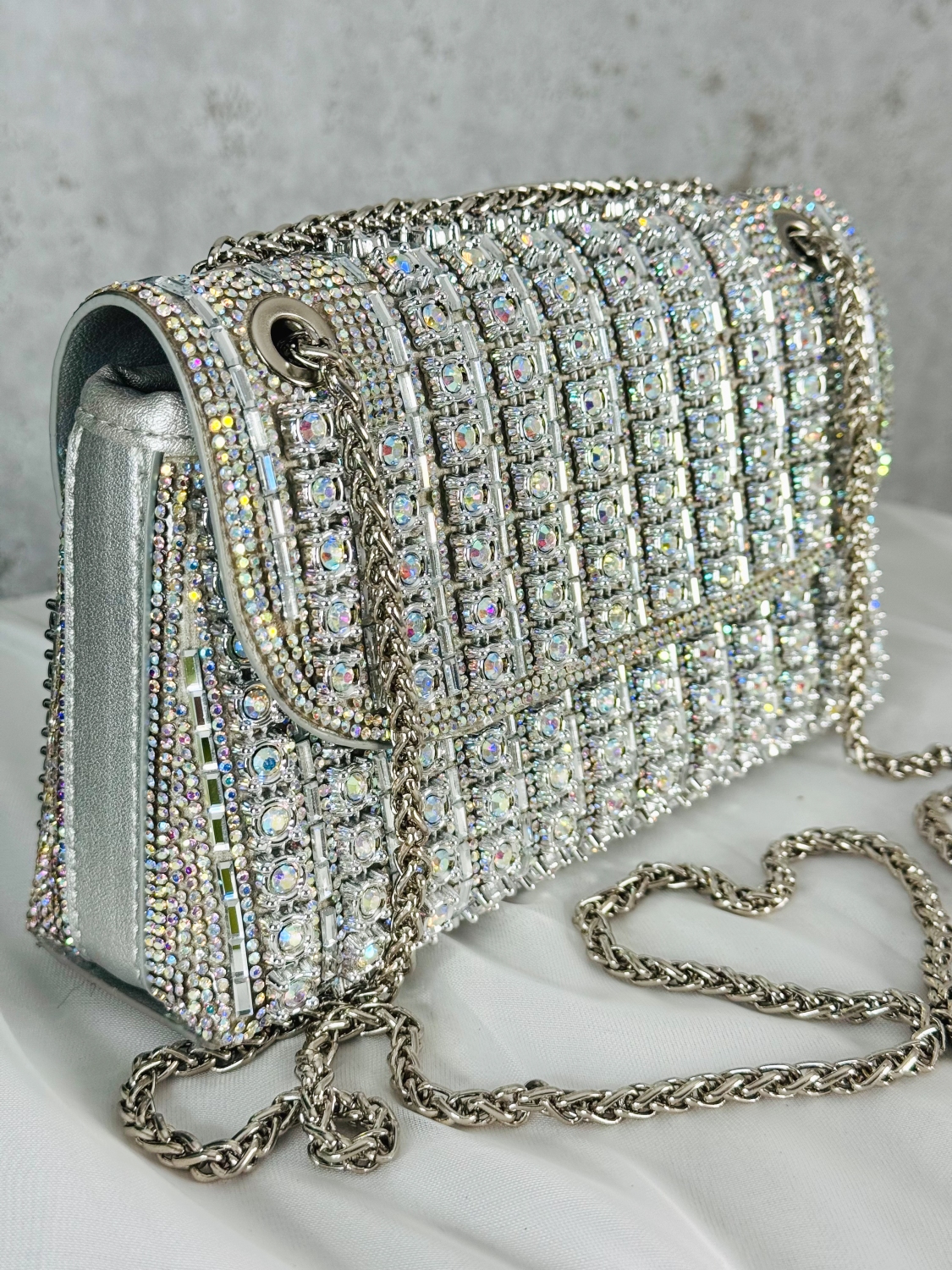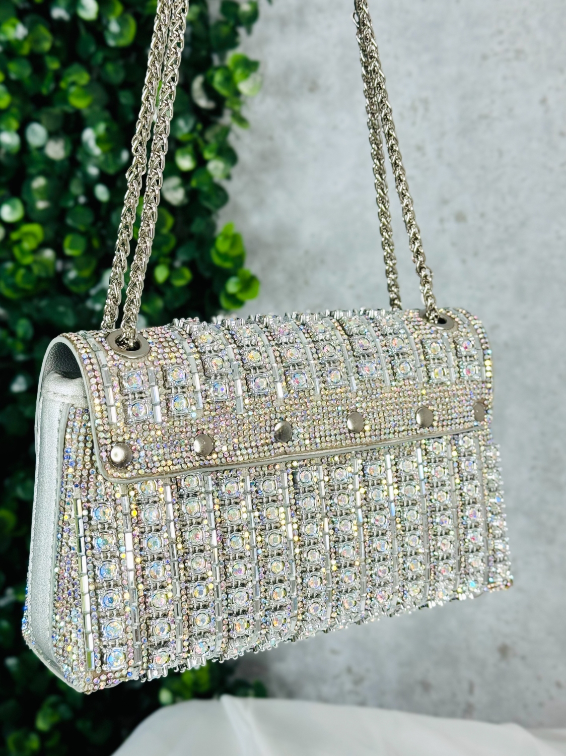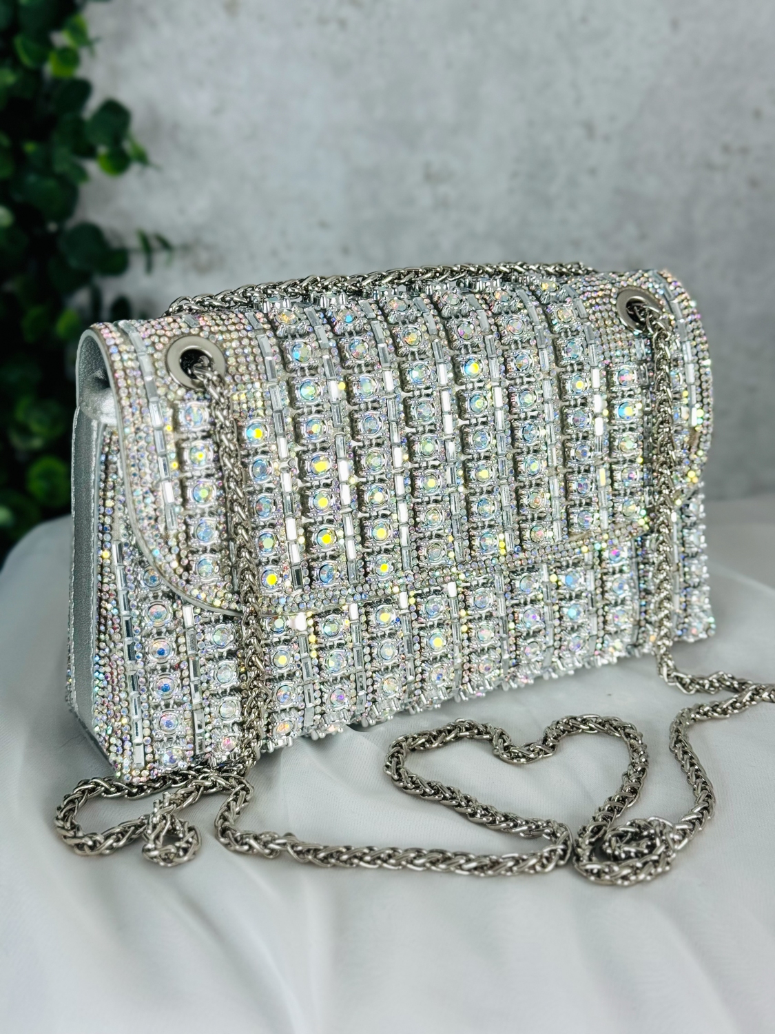 Luxusná spoločenská kabelka s ozdobnými kamienkami je kúsok, ktorý okamžite upúta každý pohľad. Jej povrch je zdobený stovkami trblietavých kamienkov, ktoré pri svetle žiaria ako malé kryštály a vytvárajú dojem absolútnej elegancie. Každý detail je premyslený tak, aby kabelka pôsobila noblesne, žensky a zároveň nadčasovo. Tvar kabelky je jemný a sofistikovaný, čo jej dodáva luxusný vzhľad vhodný na plesy, večierky, svadby či slávnostné príležitosti. Vďaka pevnej konštrukcii si zachováva svoj krásny tvar a bezpečne uchová vaše nevyhnutnosti – mobil, rúž, kľúče či drobnú kozmetiku. Pohodlné zapínanie a kvalitné spracovanie zaručujú komfort pri nosení. Tento model je presne ten typ doplnku, ktorý dokáže pozdvihnúť akýkoľvek outfit na úplne inú úroveň. Stačí ju chytiť do ruky a okamžite získate pocit výnimočnosti. Je to kabelka pre ženy, ktoré milujú luxus, detail a trblietavý efekt, ktorý sa nedá prehliadnuť.