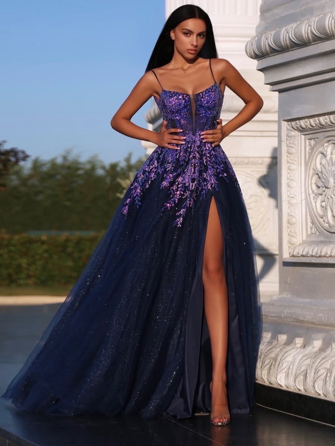 Dámske luxusné dlhé spoločenské šaty s mohutnou suknou a rozparkom. V týchto šatách sa staneš neprehliadnuteľnou hviezdou večera. Luxusné dlhé spoločenské šaty s majestátnou, mohutnou sukňou a zmyselným rozparkom spájajú eleganciu, ženskosť a sebavedomie v dokonalej harmónii. Šaty sú navrhnuté tak, aby zvýraznili tvoju ženskú siluetu – vrchný diel jemne obopína postavu a krásne tvaruje pás, zatiaľ čo bohatá sukňa z kvalitného, vzdušného materiálu sa pôvabne rozlieva po zemi a pri každom kroku sa nádherne vlní. Vysoký rozparok dodáva modelu odvážny, no stále vkusný nádych zmyselnosti, ktorý púta pohľady bez toho, aby pôsobil vyzývavo. Luxusný materiál sa jemne leskne a pri pohybe zachytáva svetlo, vďaka čomu šaty pôsobia exkluzívne a žiarivo. Precízne spracovanie, elegantné línie a premyslený strih robia z tohto modelu ideálnu voľbu pre výnimočné udalosti – plesy, svadby, gala večery či stužkové slávnosti. Tieto šaty sú stelesnením elegancie, štýlu a noblesy. Sú určené pre ženu, ktorá sa nebojí zažiariť, vie, čo chce, a túži zanechať nezabudnuteľný dojem.
