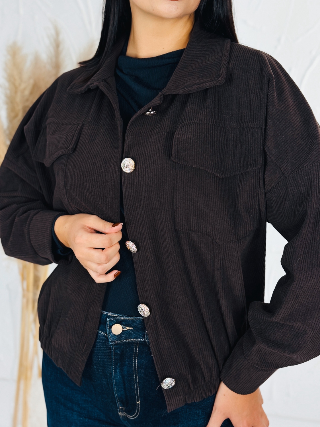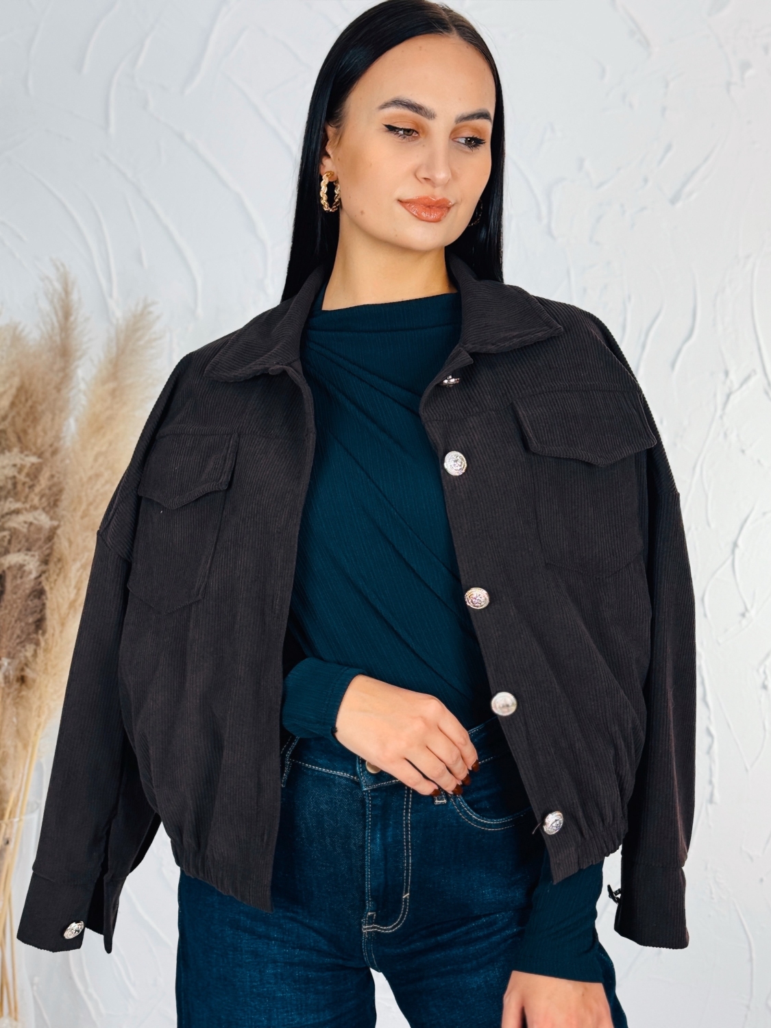 Táto štýlová menčestrová dámska bunda je dokonalým spojením pohodlia, elegancie a ležérneho mestského štýlu. Vyrobená z mäkkého, kvalitného menčestru s jemným rebrovaním, poskytuje príjemný hrejivý pocit a zároveň pôsobí veľmi trendovo. Materiál je príjemný na dotyk, priedušný a ideálny na prechodné obdobie – jar či jeseň. Bunda má praktické predné vrecká. Zapína sa na gombíky, čo jej dodáva klasický vzhľad s moderným nádychom. Strih je mierne voľnejší, takže ju pohodlne skombinujete s tričkom, svetrom alebo rolákom. Menčestrový materiál dodáva bunde jedinečný retro charakter, no vďaka premysleným detailom pôsobí sviežo a nadčasovo. Ľahko ju zladíte s džínsami, sukňou aj šatami – bude sa hodiť na bežné nosenie, do práce aj na voľný čas. Dostupná je v niekoľkých farebných odtieňoch – od klasickej hnedej a béžovej až po moderné pastelové farby, ktoré oživia každý outfit.