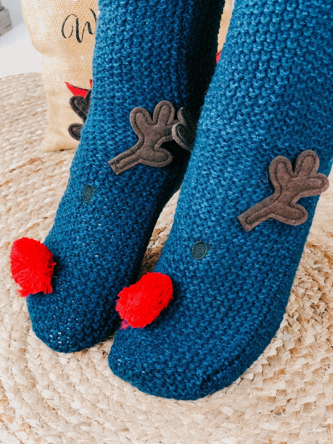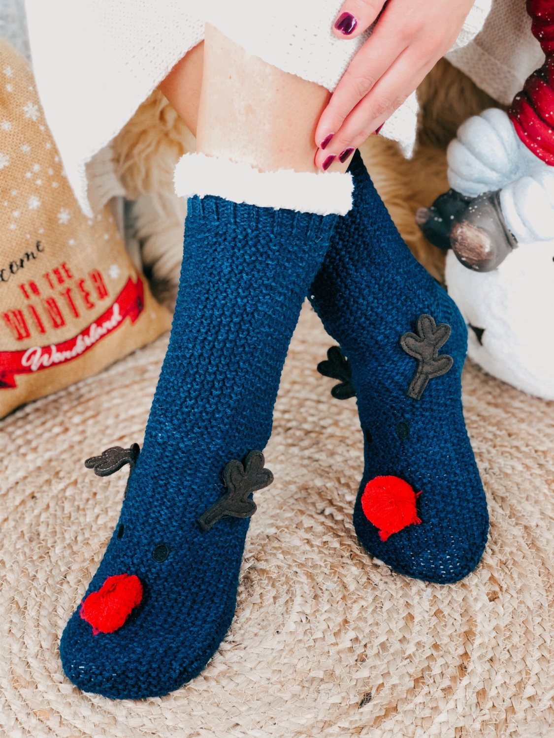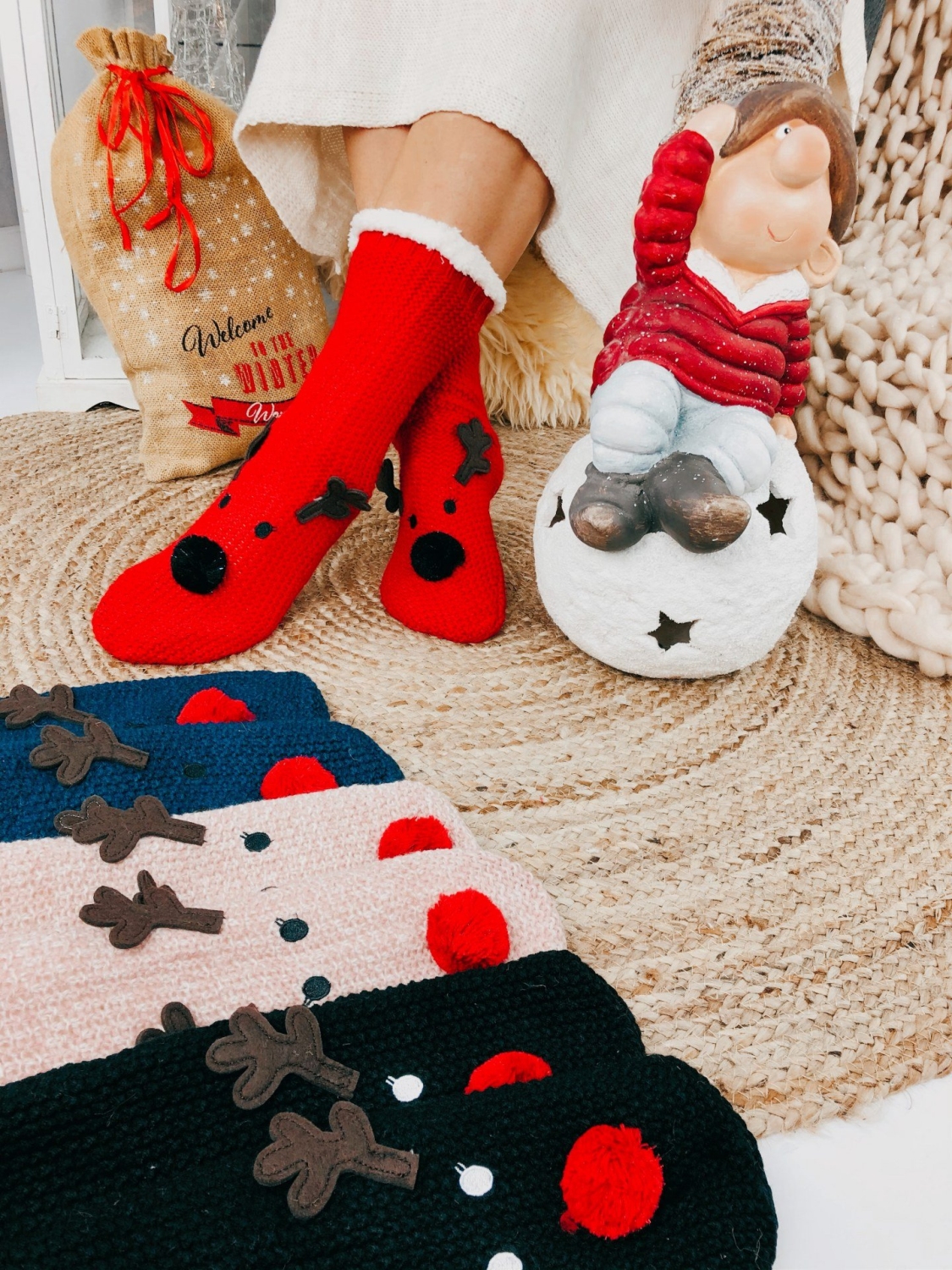 Dámske vianočné zateplené ponožky so sobom. Ponožky sú pohodlné a teplé. Vianoce sú za dverami a toto je skvelý tip na vianočný darček pre všetky žienky. Obdarujte svojich známych niečim, čo vykúzli úsmev na ich tvárach. Ponožky sú vyrobené z príjemného materiálu a tiež sú pružné. Spodná časť ponožiek je protišmyková.