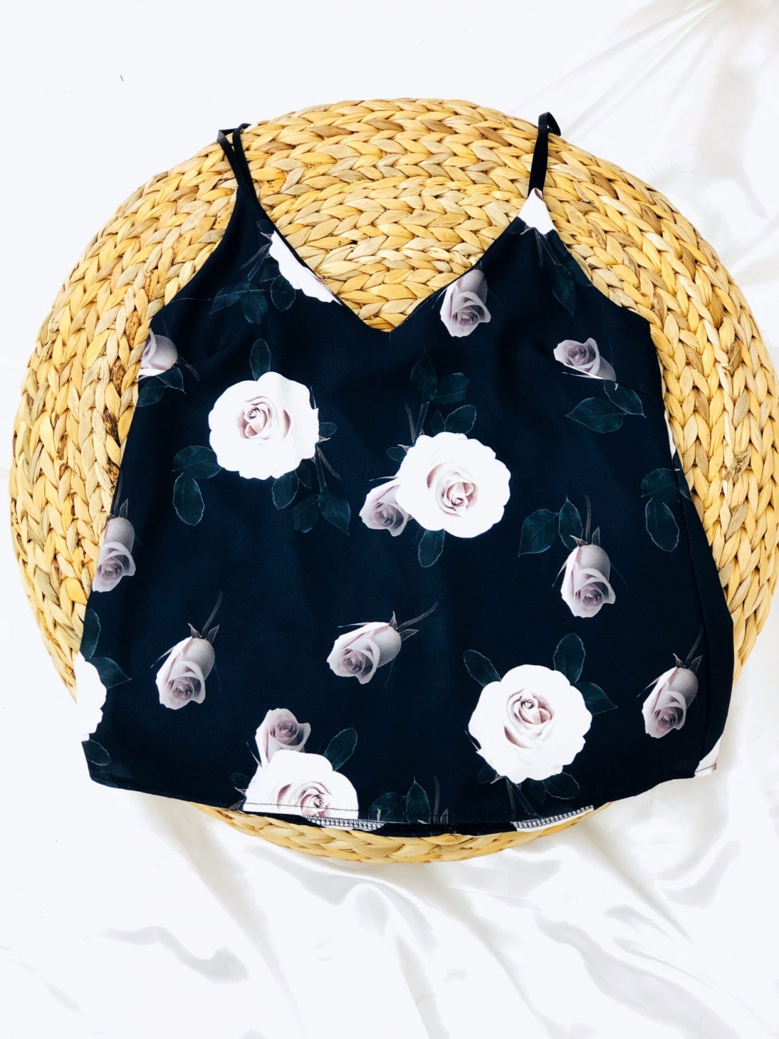 Dámsky modrý kvetovaný top na ramienka. Top má nastaviteľné ramienka a je v jednoduchom prevedení. Kúsok, ktorý sa v tvojom šatníku zaručene nestratí. Príjemný materiál. Modelka je vysoká 175 cm a oblečenú má veľkosť UNI.