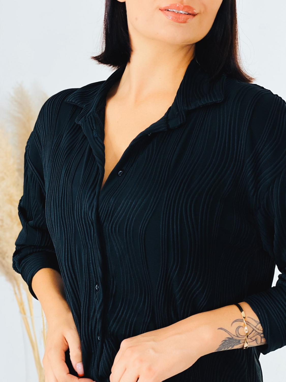 Kvalitne spracovaný komplet, vyrobený z príjemného a ľahučkého materiálu. Komplet sa skladá z nohavíc a blúzky. Blúzka má dlhý rukáv a pohodlný voľný strih. Zapína sa vpredu na gombíky. Nohavice majú voľný strih, v páse sú doplnené gumou. Skvele kombinovateľný kúsok, ktorý sa hodí na letnú dovolenku ale aj na bežné nosenie. Objednajte si ho do 12:00 a už na druhý deň ho môžete nosiť! Ideálne sa kombinuje s ľahkými sandálmi alebo módnymi teniskami. Zaujímavý kúsok, v ktorom budete zaručene výnimočná aj vďaka strihu. Nohavice sú dlhé a majú širší strih. Ku koncu sa nohavice rozširujú. Doplňte svoj šatník týmto kúskom, ktorý sa skvele kombinuje, nakoľko môžete obe časti využívať aj v iných outfitoch a vždy budete trendy. Je skvelou voľbou pre každého, kto hľadá kombináciu pohodlia a štýlu. Do mesta, ale aj na pláž. Modelka je vysoká 175 cm a oblečenú má veľkosť UNI.