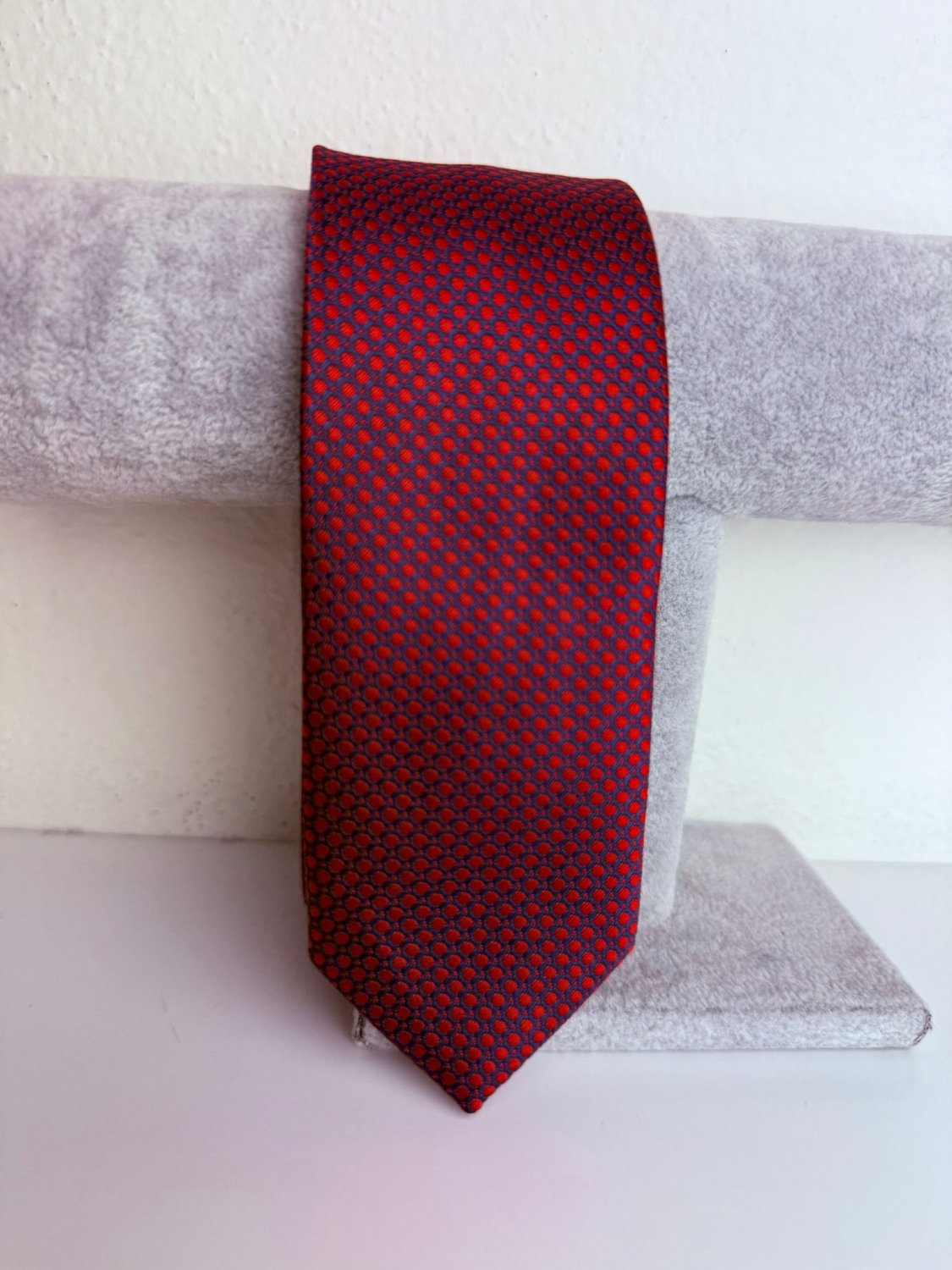 Pánska modro-červená saténová úzka kravata s bodkovaným vzorom. Kravata je neodmysliteľnou súčasťou elegancie. Vhodná nielen pre spoločenské udalosti ako sú svadba, stužková a ples, ale aj ako skvelý doplnok office looku. Vyberte si tú svoju z našej širokej ponuky.
