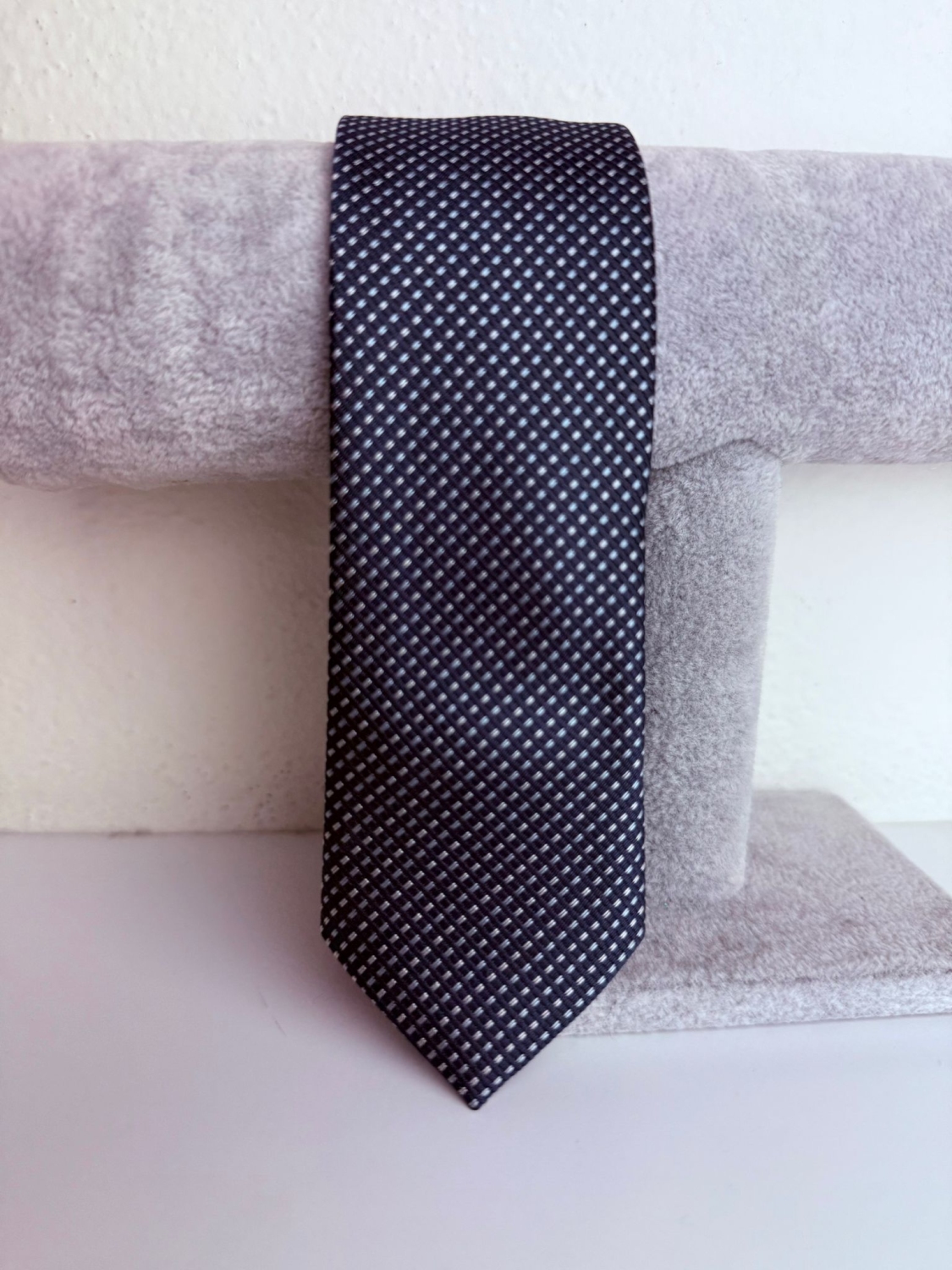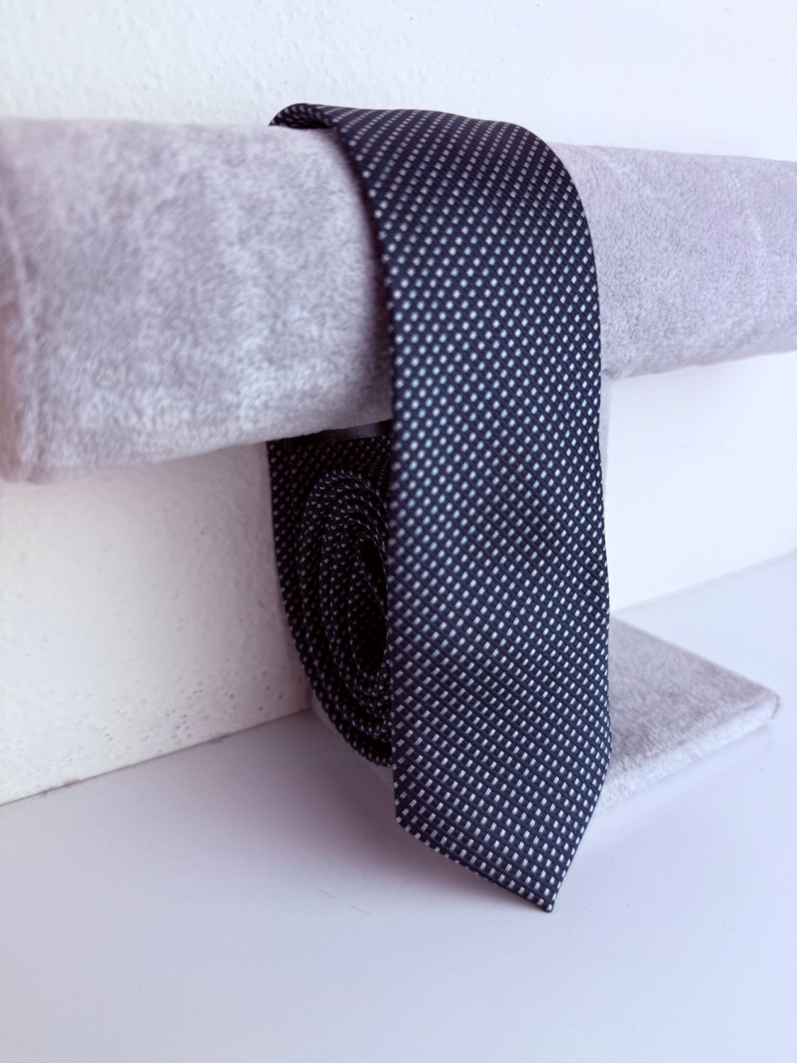 Pánska sivo-modrá saténová úzka kravata s jemným vzorom malých kociek. Kravata je neodmysliteľnou súčasťou elegancie. Vhodná nielen pre spoločenské udalosti ako sú svadba, stužková a ples, ale aj ako skvelý doplnok office looku. Vyberte si tú svoju z našej širokej ponuky.