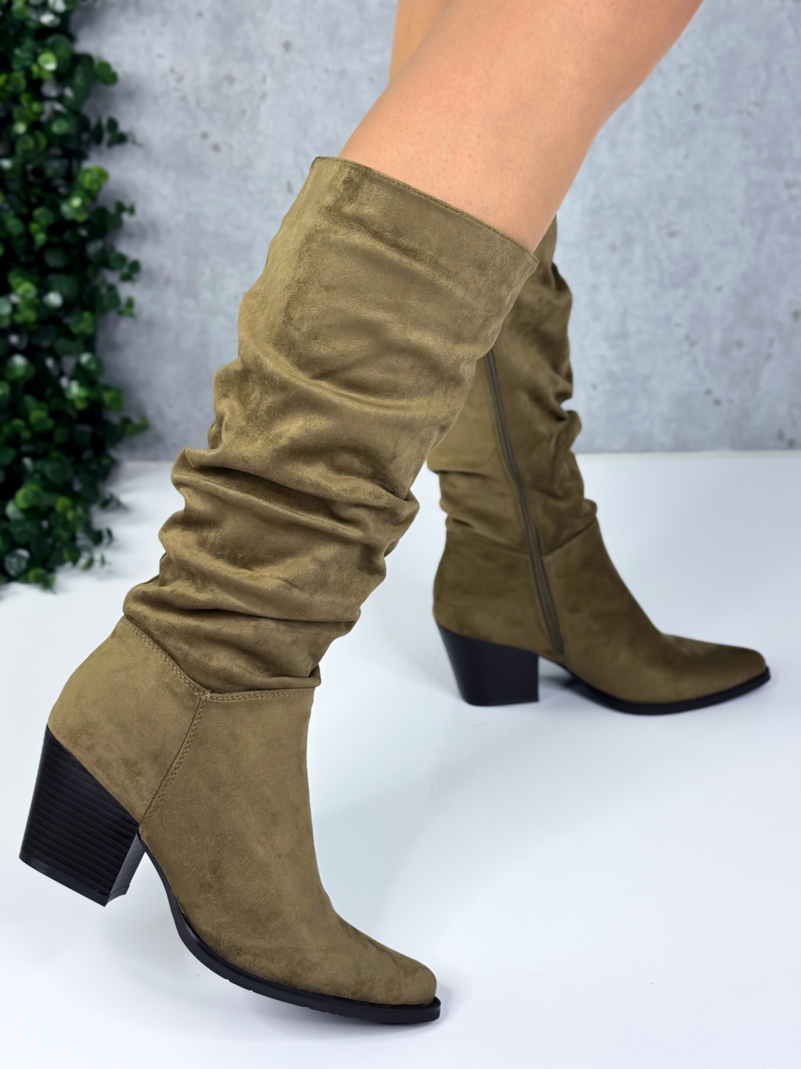 Dámske semišové kovbojské čižmy – mierne nariasené. Objavte jedinečný štýl, ktorý spája pohodlie, trendovosť a štipku rebélie. Tieto dámske semišové kovbojské čižmy s jemným nariasením sú dokonalým doplnkom pre každú ženu, ktorá chce zaujať bez námahy. Semišový materiál pôsobí elegantne, je príjemný na dotyk a dodáva celému modelu luxusný vzhľad, ktorý krásne vynikne pri jesenných aj zimných outfitoch. Nariasený efekt na zvršku dodáva čižmám charakter a štýlový „western vibe“, ktorý je momentálne obrovským trendom. Čižmy majú pohodlný tvar, stabilnú podrážku a komfortný strih, vďaka ktorému sa skvele nosia počas celého dňa. Sú ideálne k šatám, sukniam, slim rifliam či legínam – stačí ich obúvať a nechať outfit ožiť. Či už sa chystáte do mesta, do práce alebo na večerné stretnutie, tieto kovbojské čižmy vám dodajú sebavedomie a originálny ženský štýl.