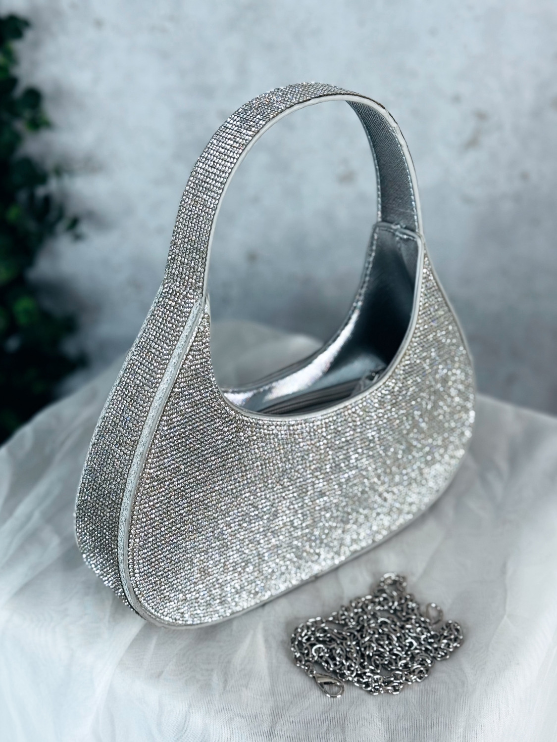 Predstavujeme kabelku, ktorá na seba strháva pozornosť ešte skôr, než stihnete vojsť do miestnosti. Táto kabelka je kúsok, ktorý okamžite dodá iskru každému outfitu – či už ide o elegantnú spoločenskú udalosť, výnimočný večer v meste alebo poriadnu párty, kde chcete zažiariť. Celý povrch kabelky je pokrytý jemnými trblietavými kamienkami, ktoré pri svetle vytvárajú nádherný „diamantový“ efekt. Oblý, moderný tvar pôsobí žensky a nadčasovo, zatiaľ čo pevná rúčka so zdobeným detailom dodáva kabelke luxusný a prémiový dojem. Napriek tomu, že vyzerá ako čistý šperk, je prekvapivo praktická – zmestia sa do nej všetky drobnosti, ktoré potrebujete mať pri sebe. Kombinuje eleganciu spoločenských modelov s hravosťou party štýlu, takže je ideálnou voľbou pre ženy, ktoré chcú jeden doplnok na všetko: svadby, plesy, večierky, párty aj bežné večerné outfity, kde chcete jednoducho zažiariť.
