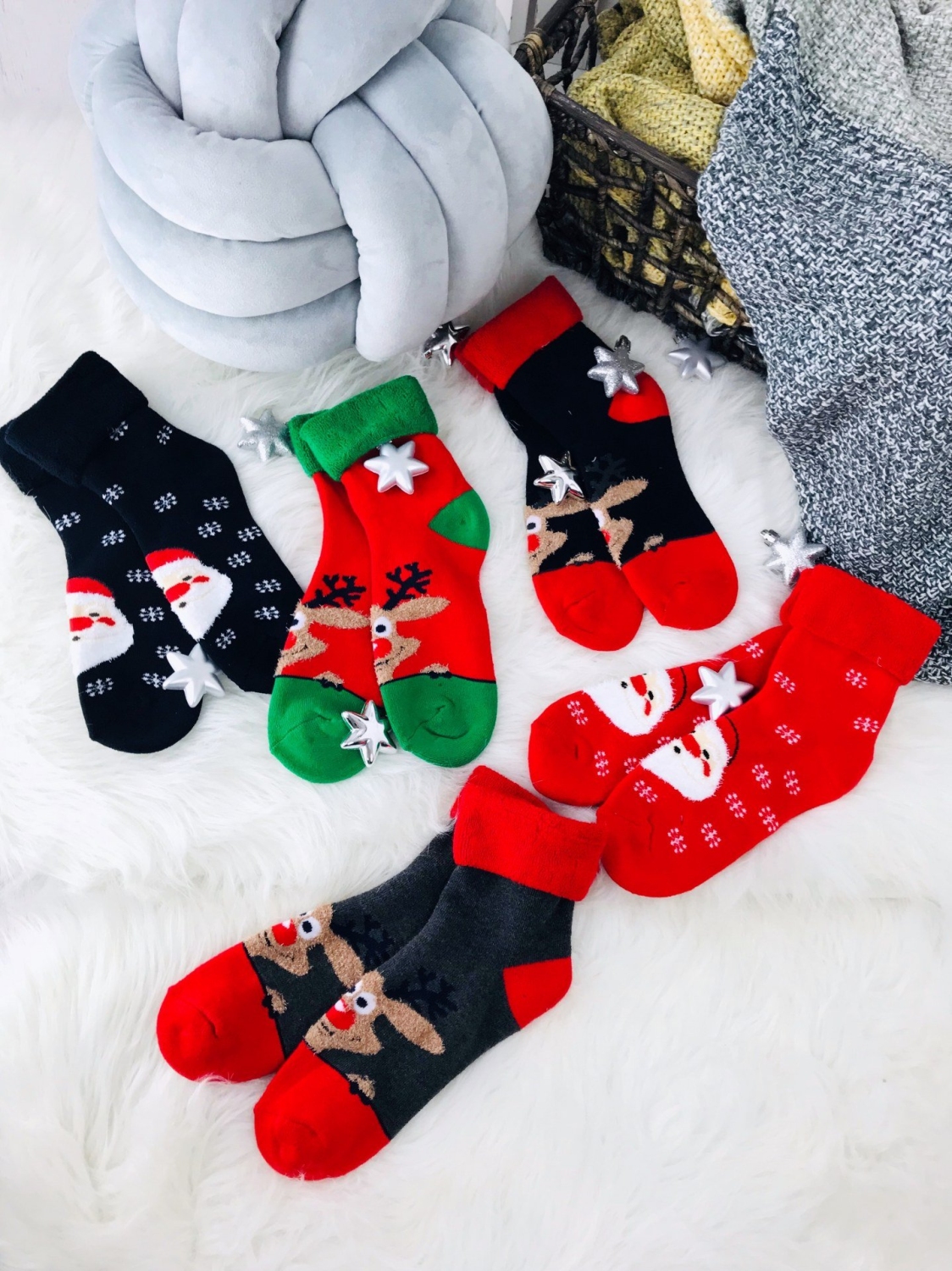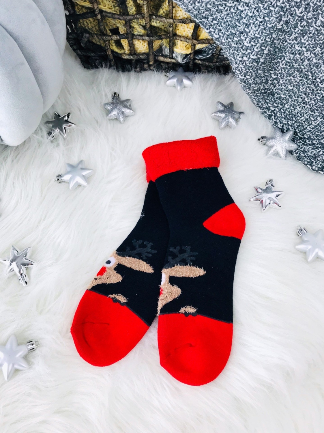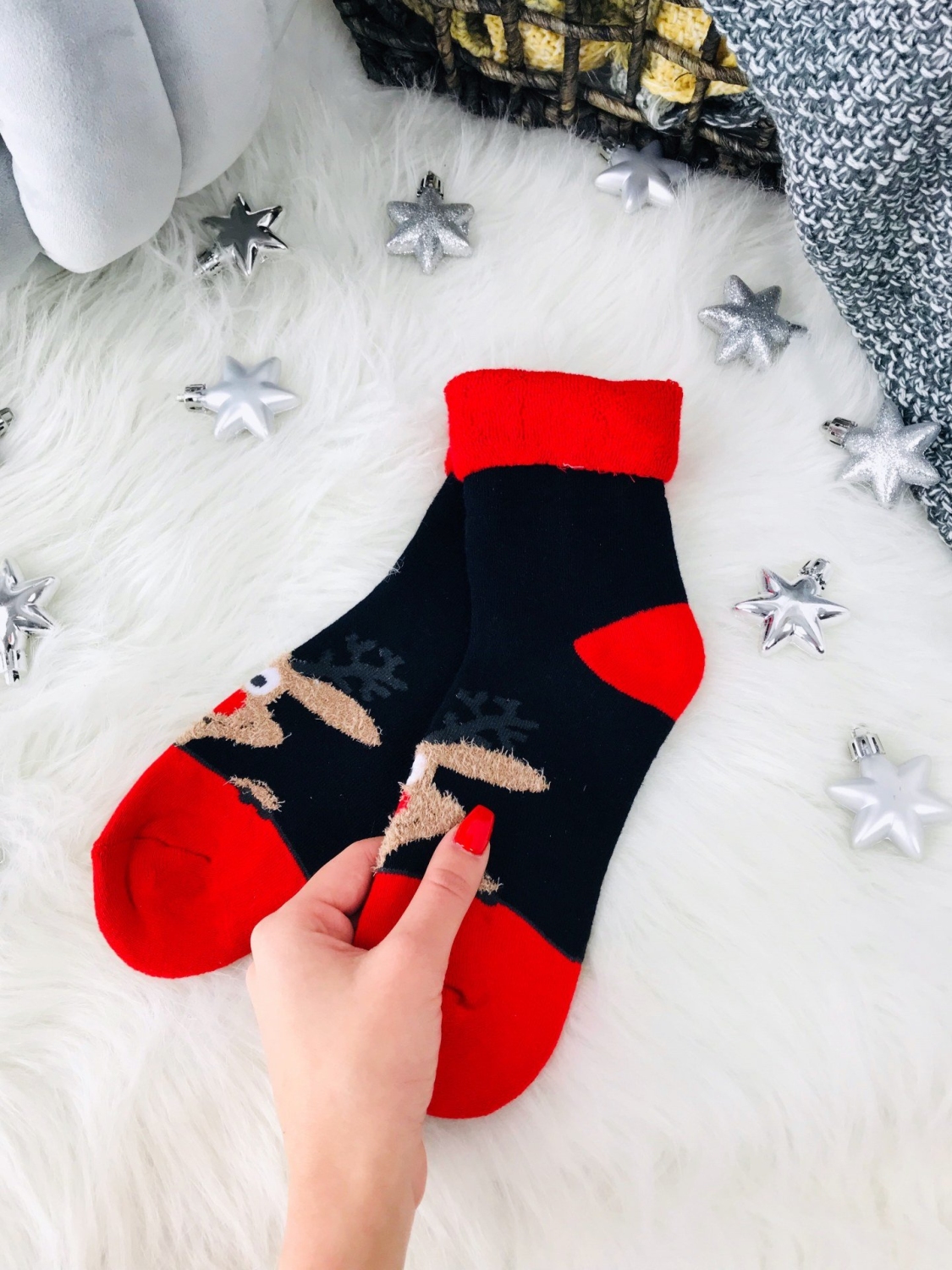 Vianočné ponožky čiernej farby so sobom ohrejú vaše nôžky v tejto zime. Ponožky sú pohodlné, mäkkučké a veľmi teplé - termo. Vianoce sú za dverami a toto je skvelý tip na vianočný darček pre všetky žienky. Obdarujte svojich známych niečim, čo vykúzli úsmev na ich tvárach.