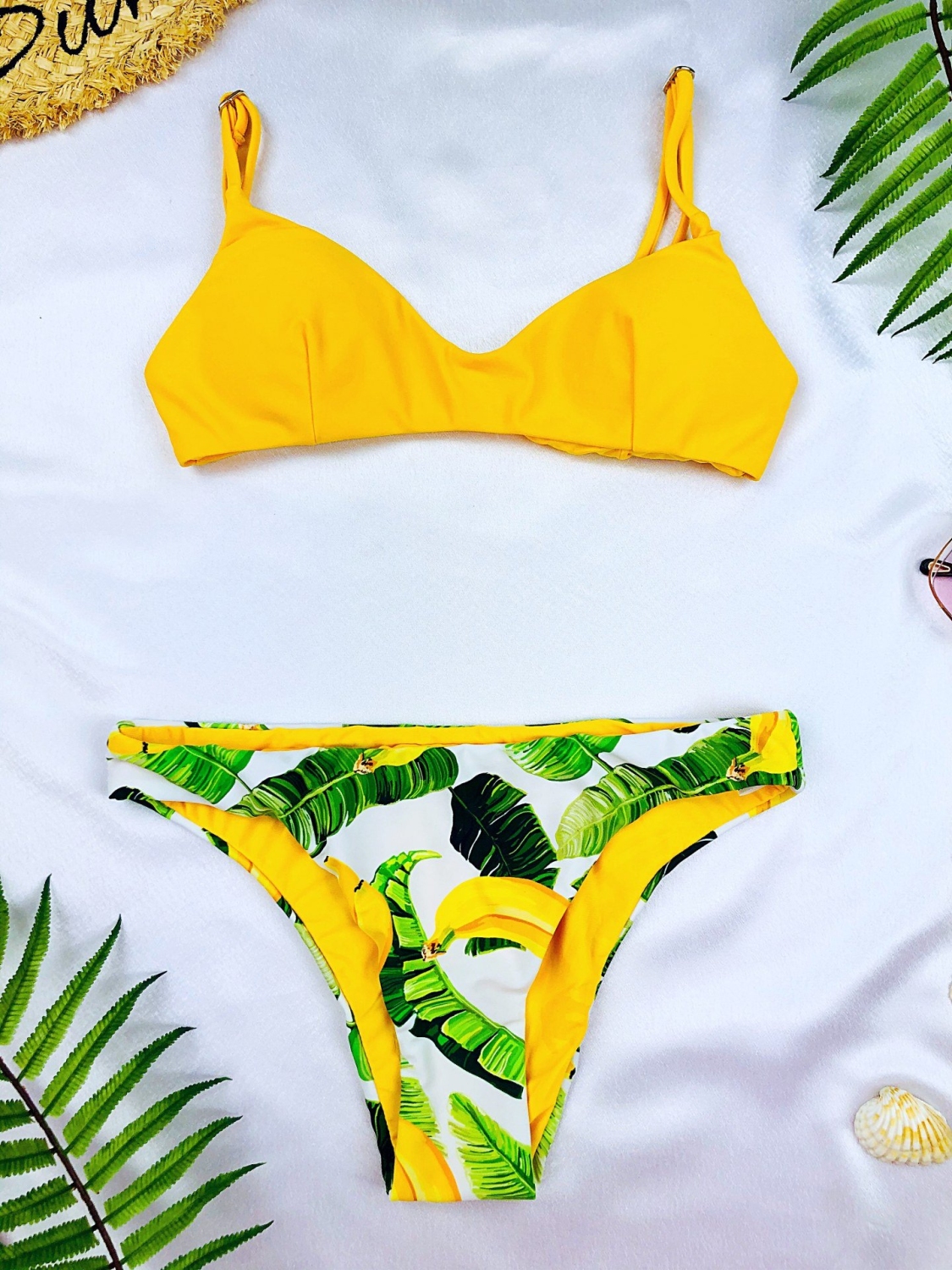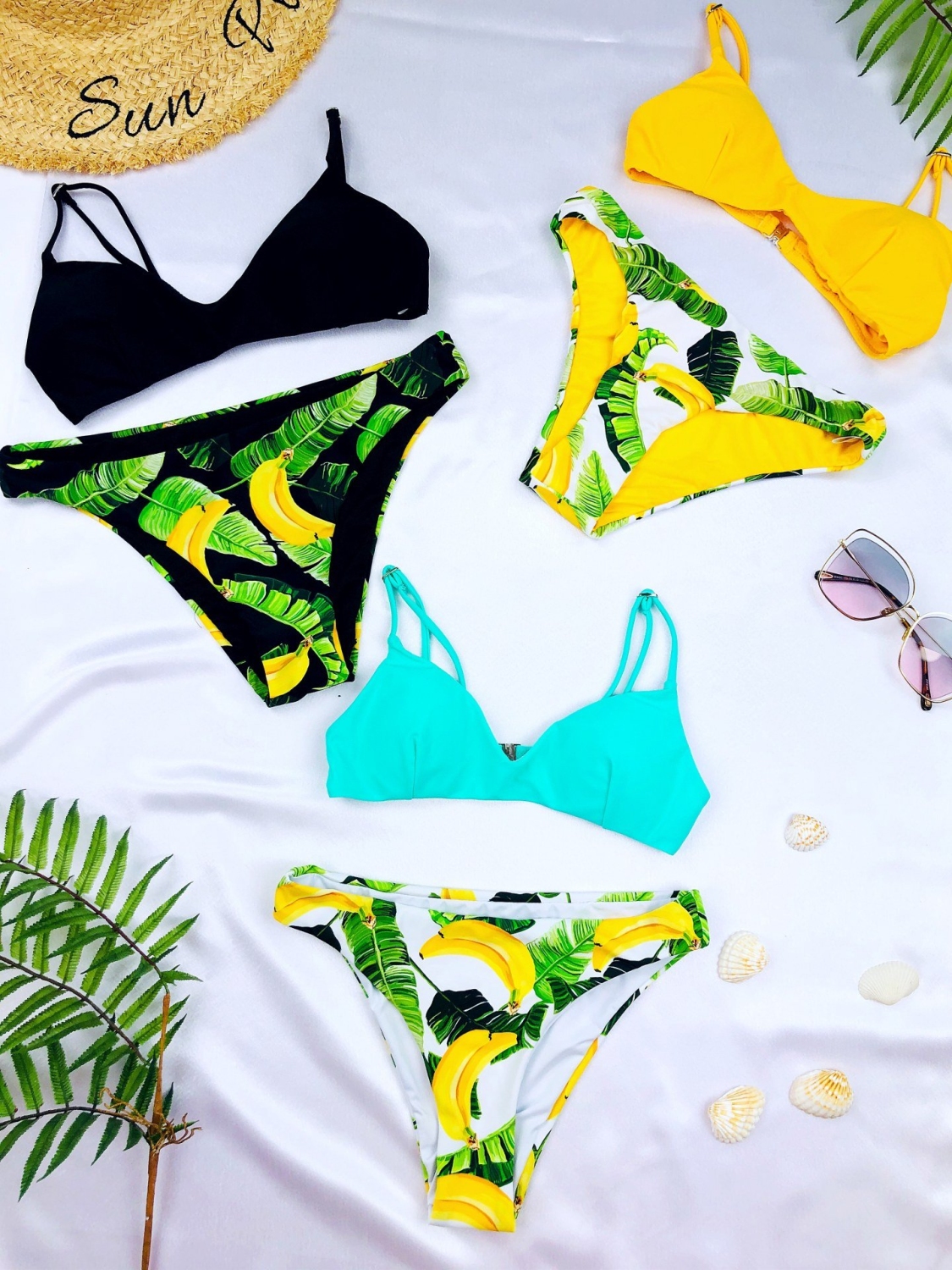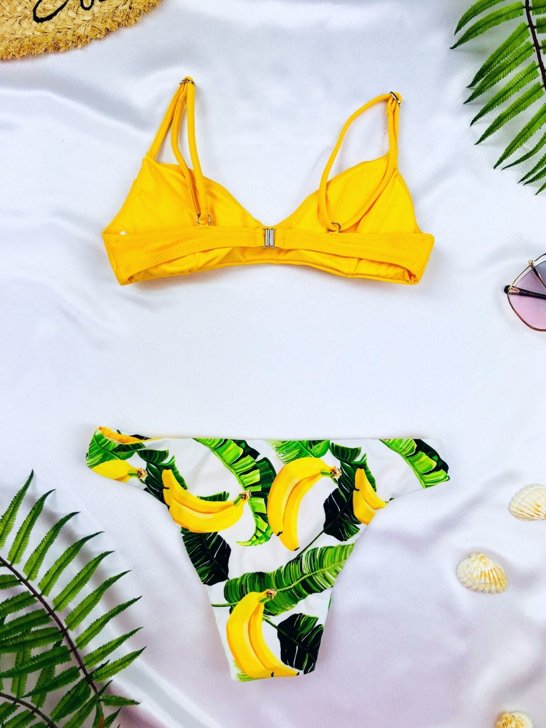 Leto je tu a s ním aj nová kolekcia plaviek. Tieto dvojdielne plavky s banánovým motívom si zamiluje každá z Vás. Vystúžené pevné košíky zdokonalia Váš dekolt a nastaviteľné ramienka na vrchnom diely plaviek zaručene sadnú každej z Vás. Spodný diel nádherne tvaruje zadok. Vyrazte na pláž v týchto plavkách a buďte IN. Veľkosti sedia presne. Doručenie ihneď.