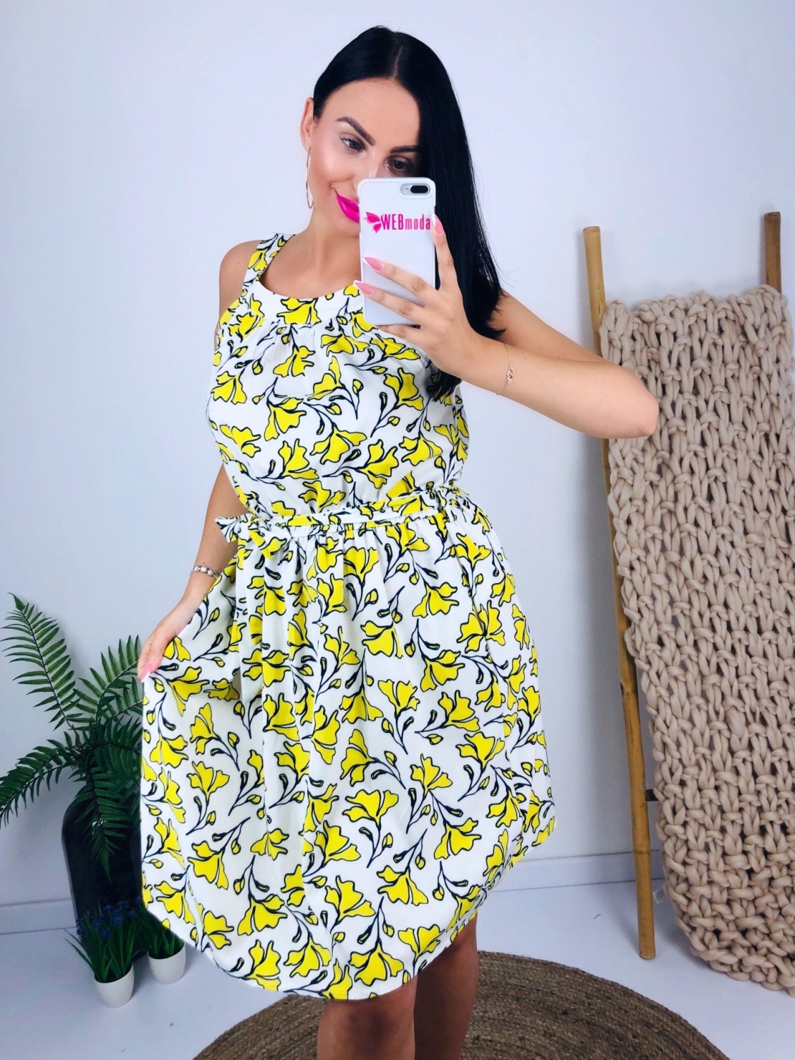 Elegantné krátke letné šaty v žltej farbe s kvetovaným vzorom. V páse majú gumičku a viažu sa na mašľu. Zapínanie na 2 gombíky. Príjemný padavý a kvalitný materiál je zárukou spokojnosti. Dokonale sa prispôsobia viac veľkostiam. Môžete si ich obliecť takmer všade, k vode, do mesta, práce, ale aj na večerné stretnutie. Modelka meria 175cm a má oblečenú veľkosť L.